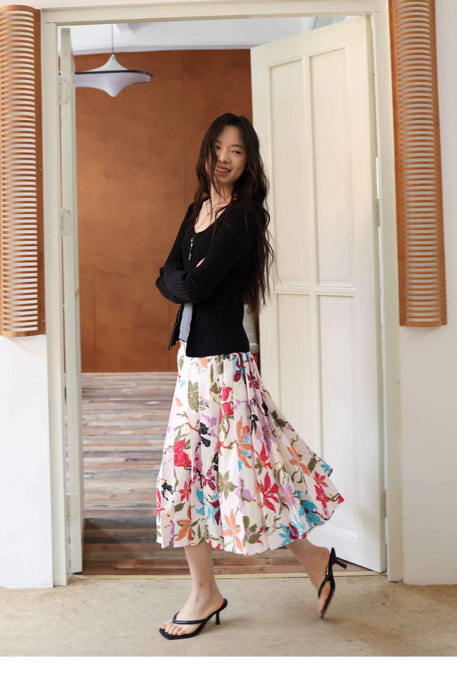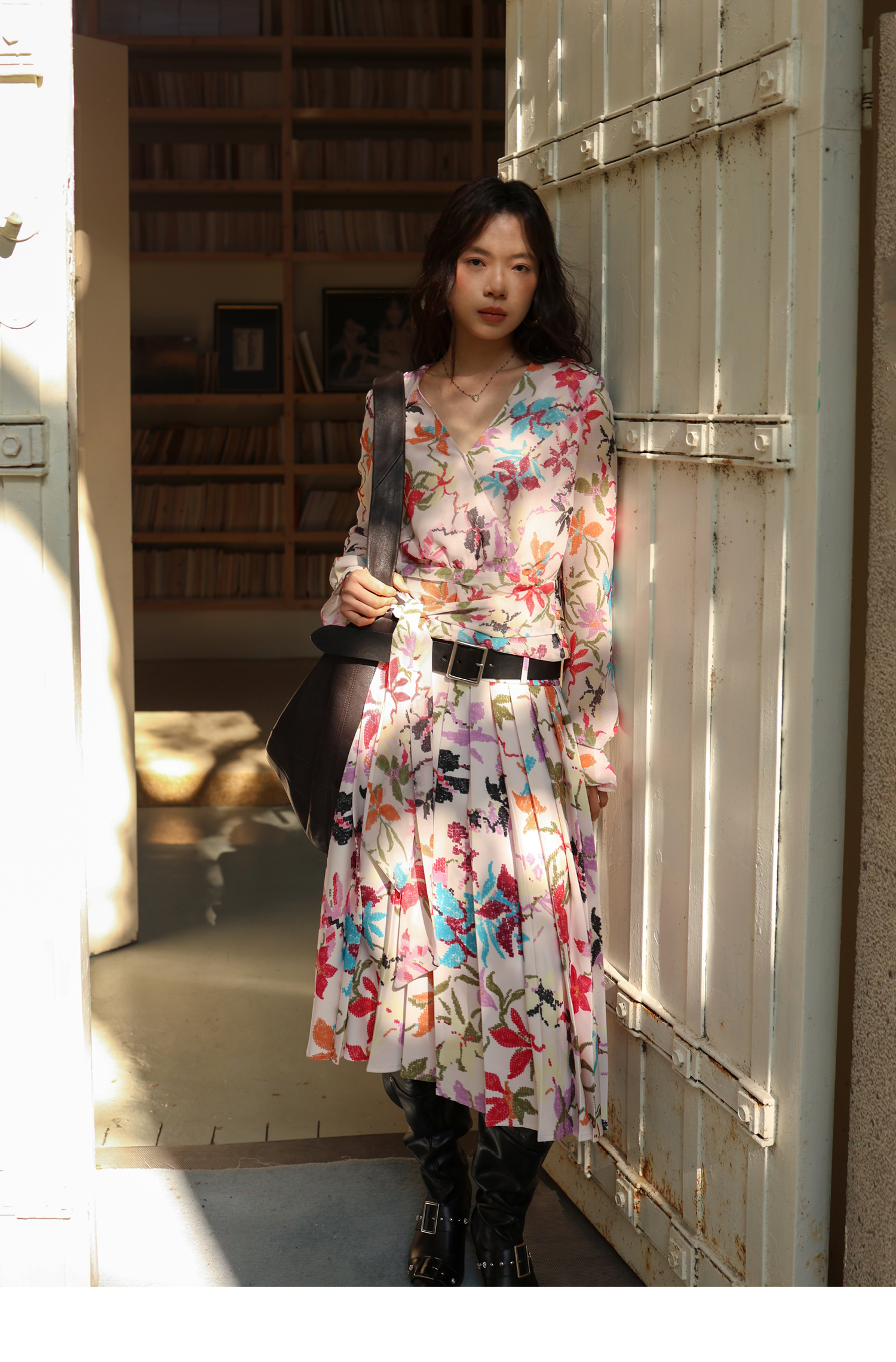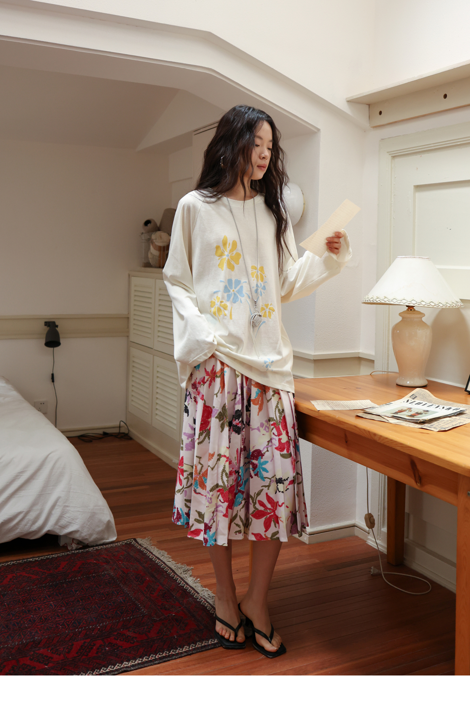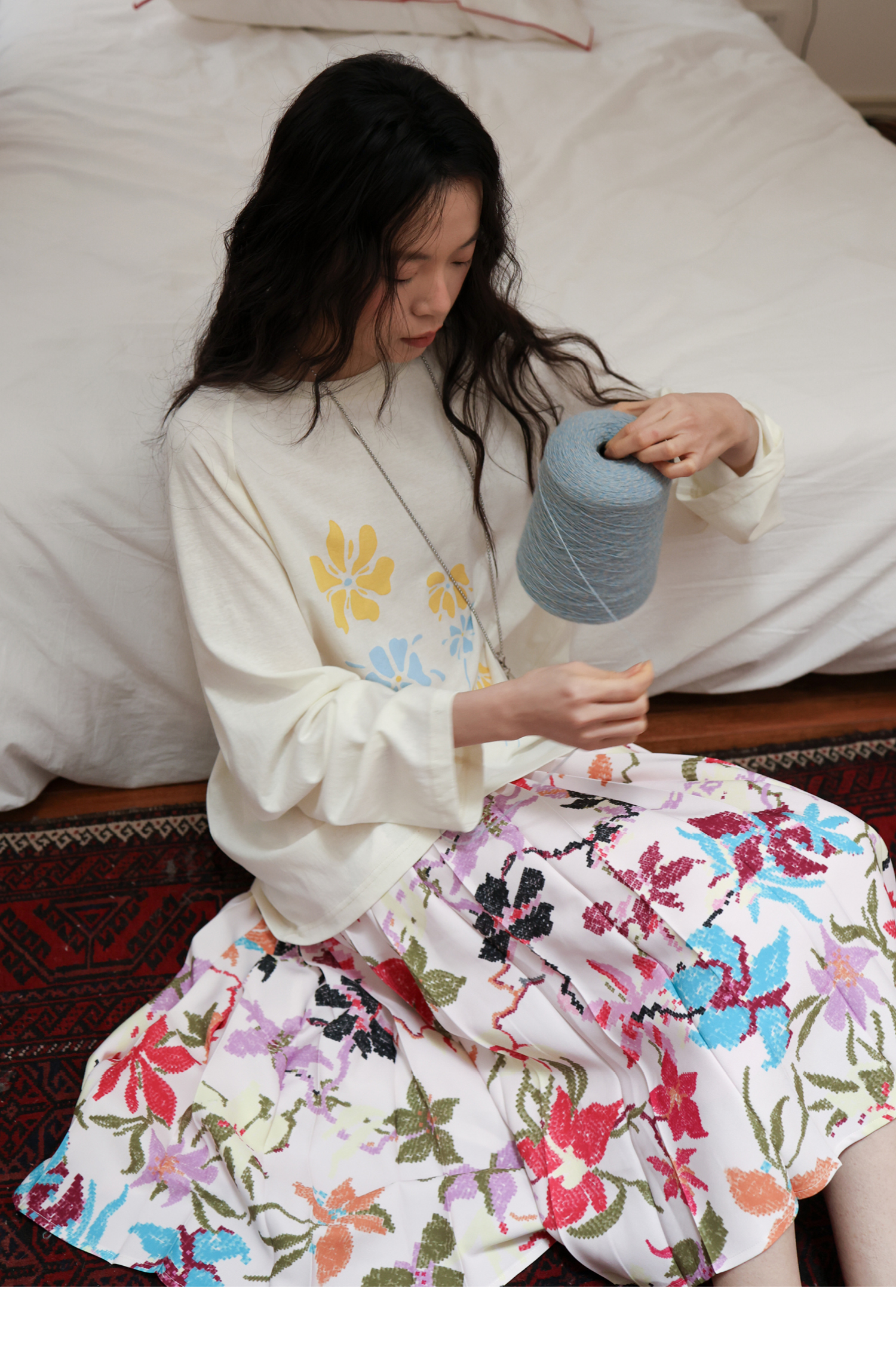 素舶 花影缤纷百搭显瘦百褶印花A字半身裙SUPERSCAPE
