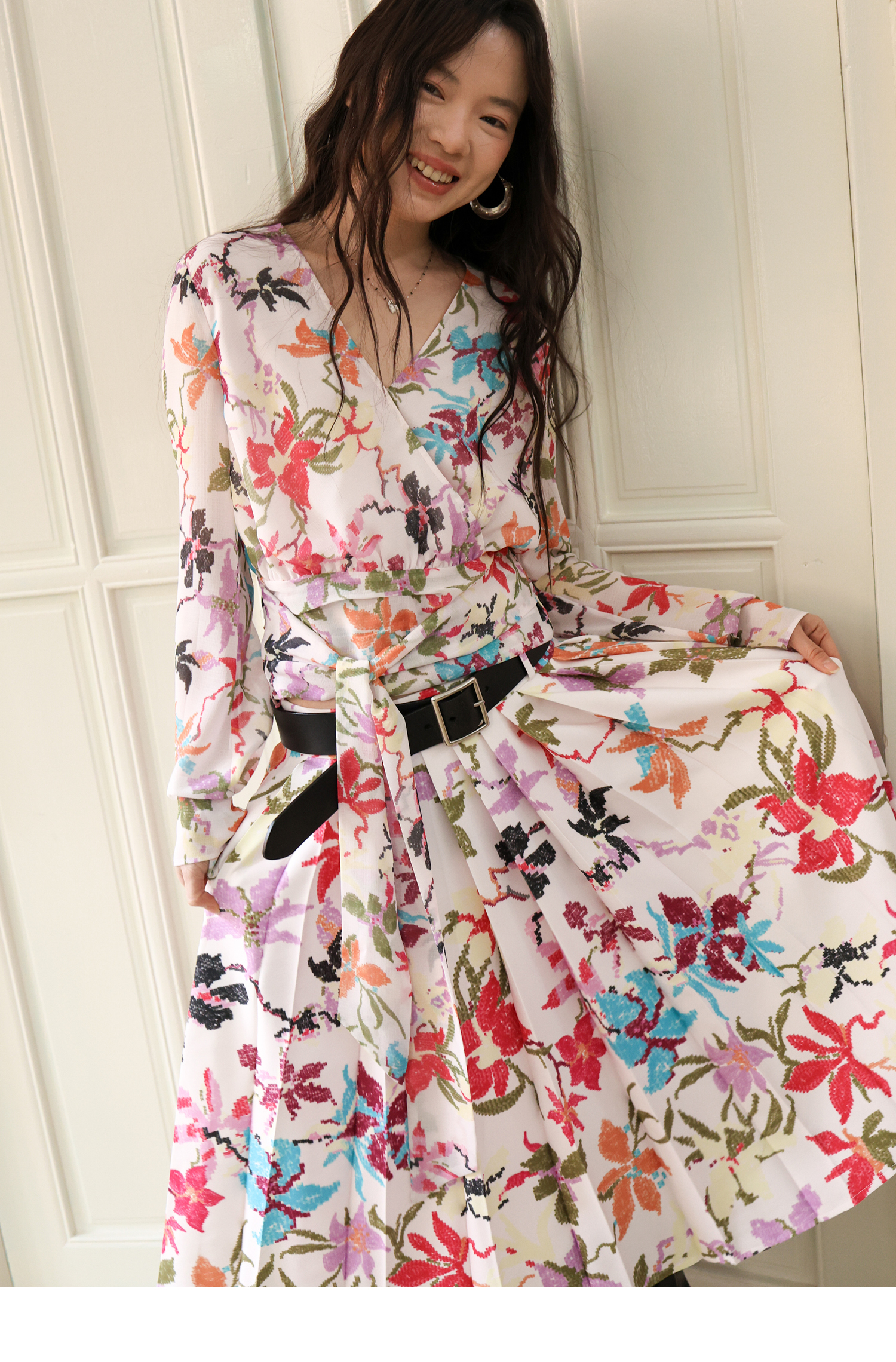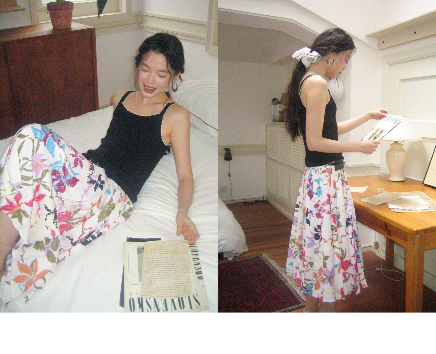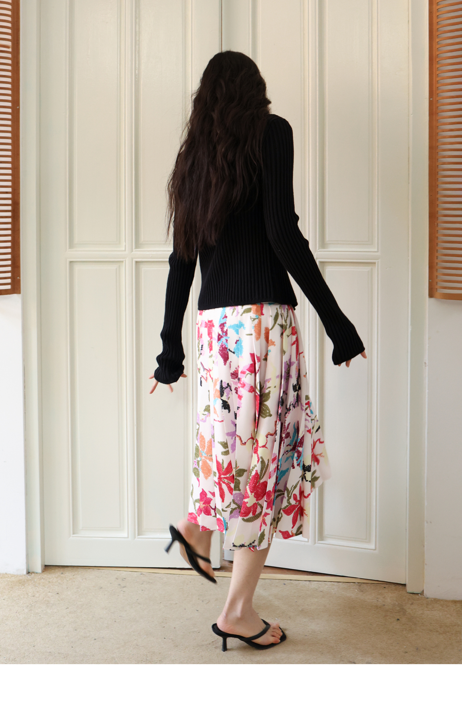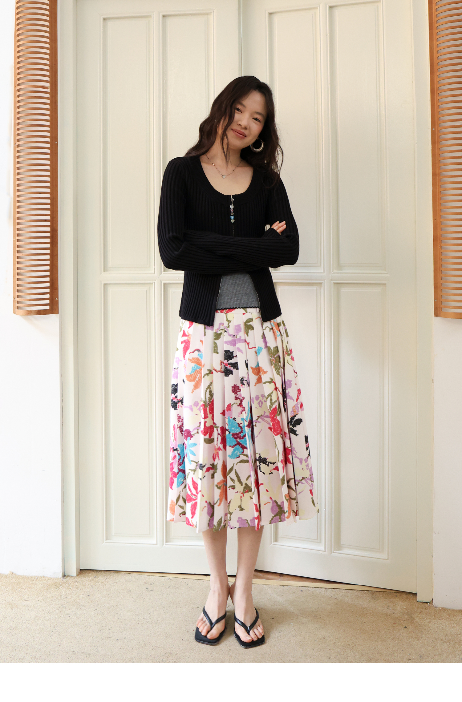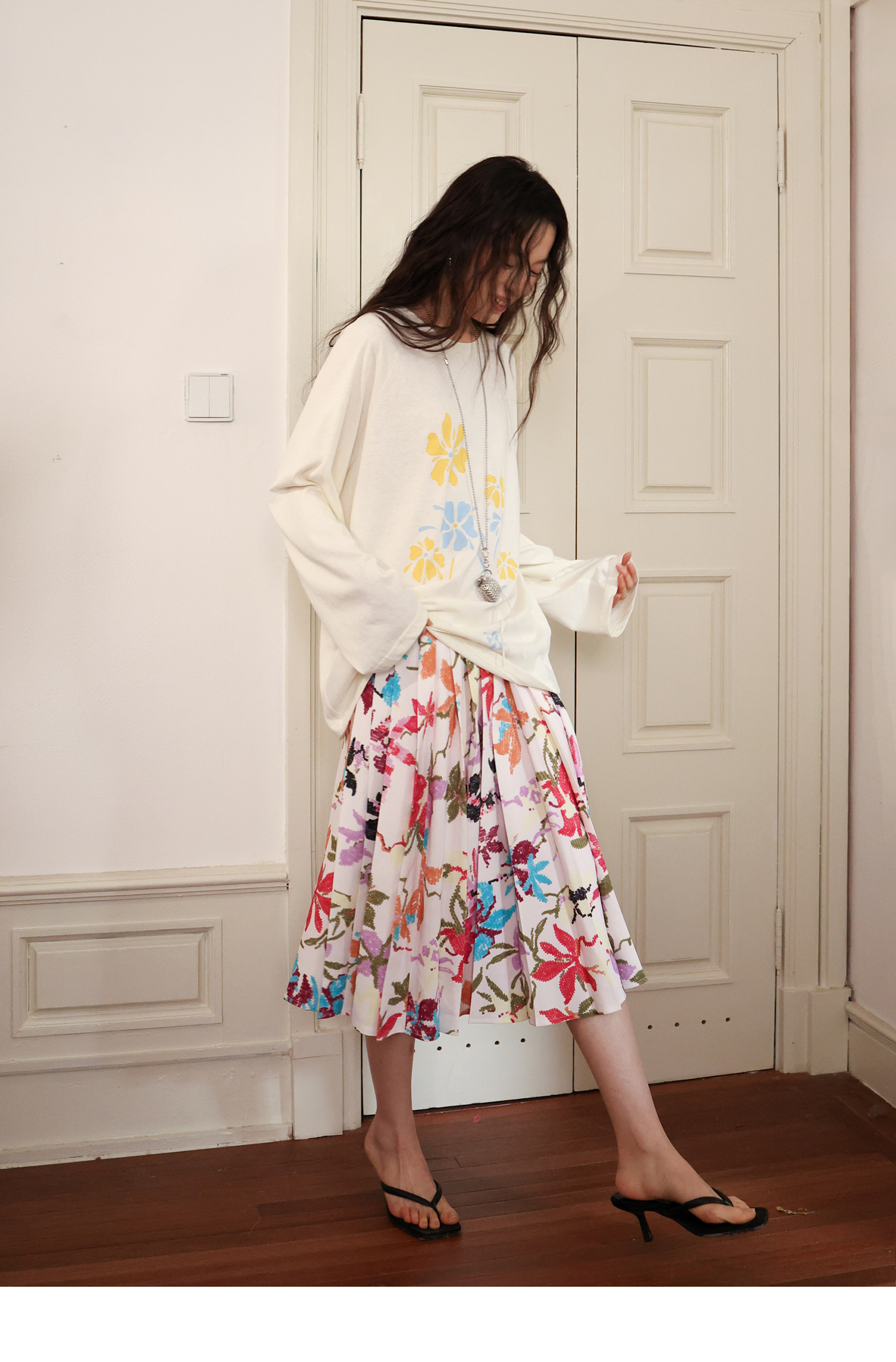 素舶 花影缤纷百搭显瘦百褶印花A字半身裙SUPERSCAPE