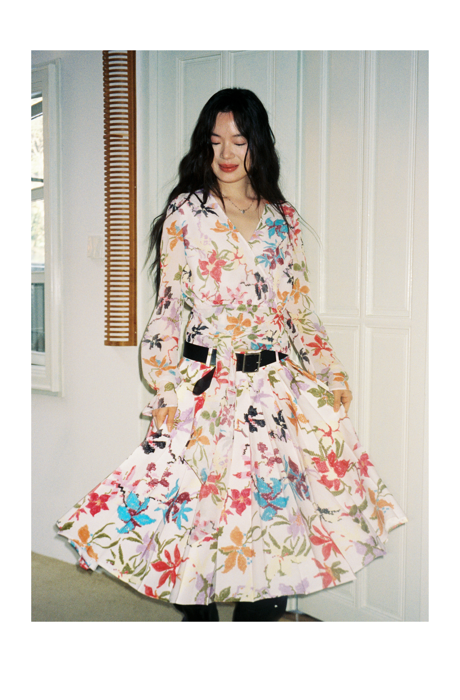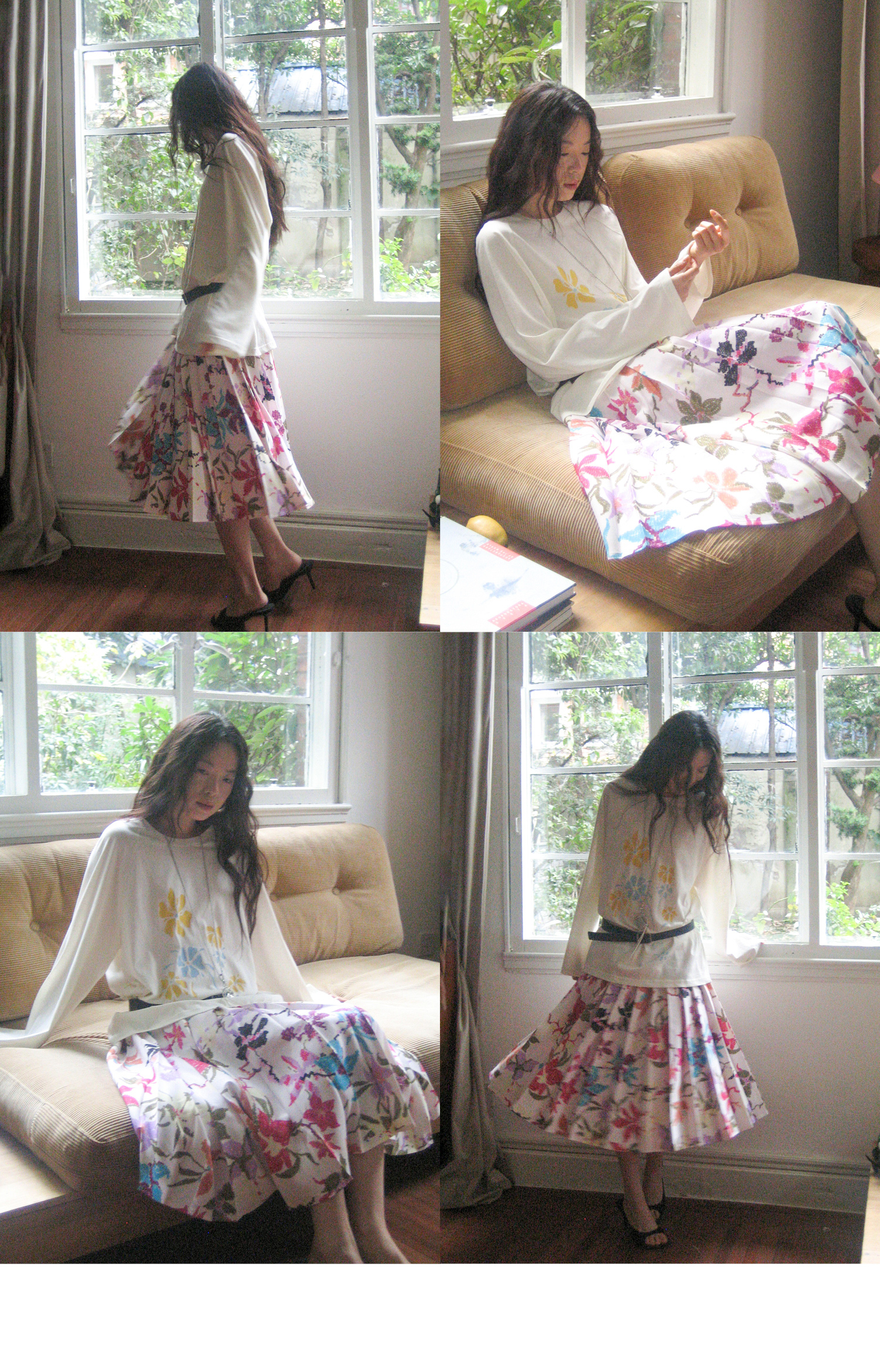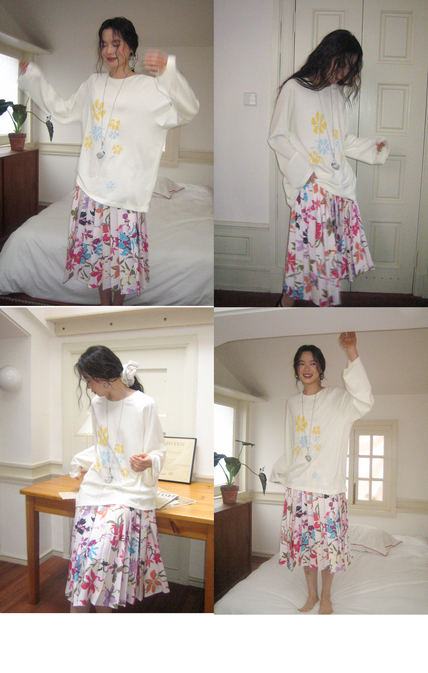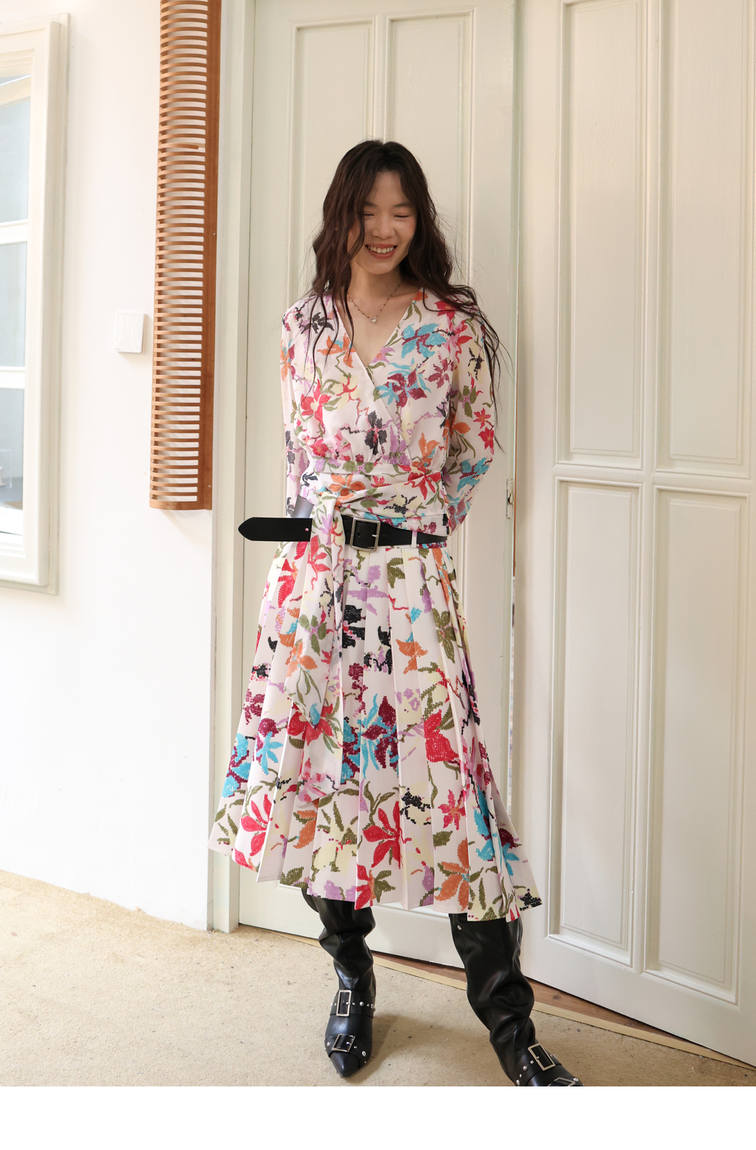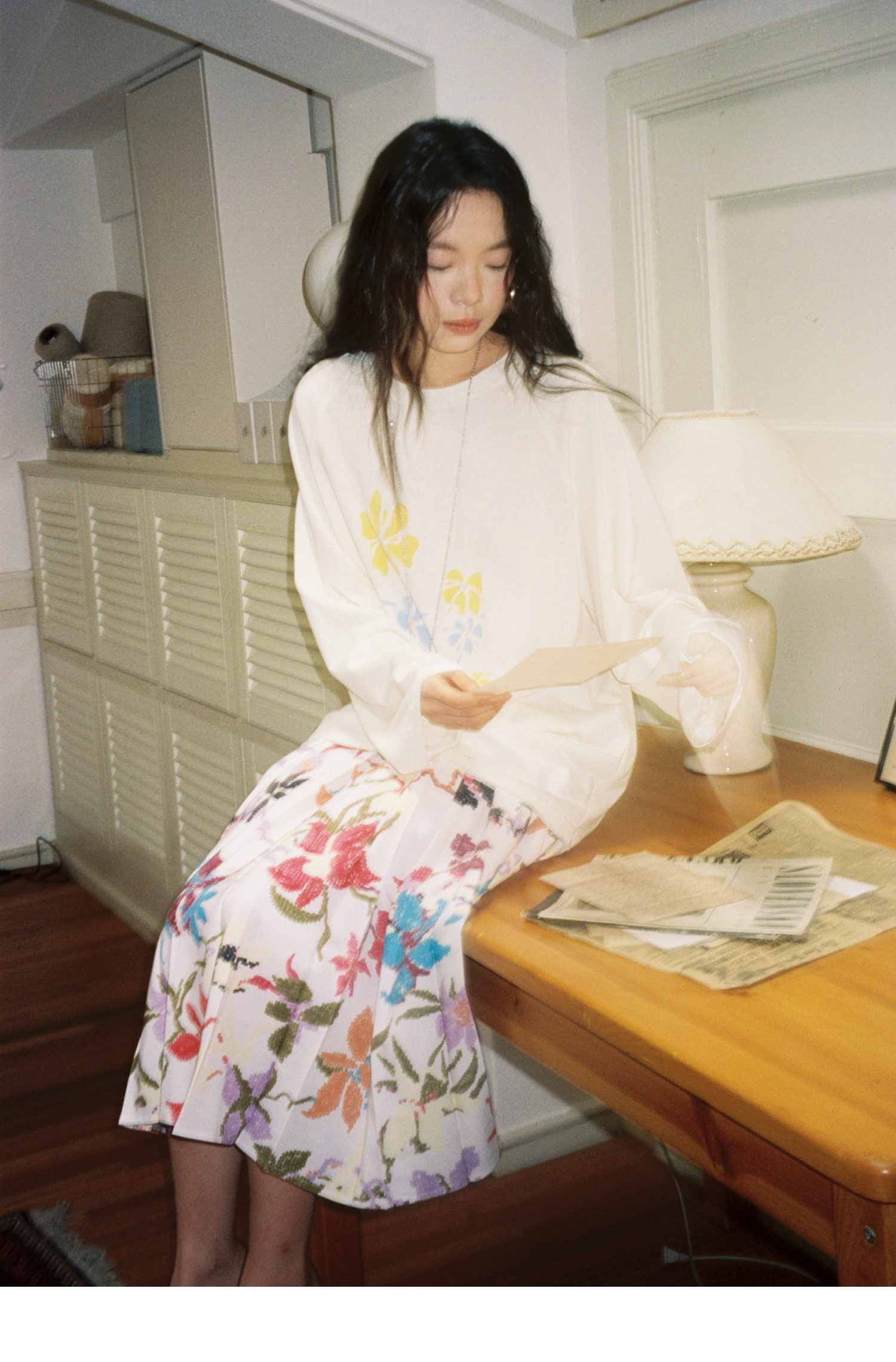 素舶 花影缤纷百搭显瘦百褶印花A字半身裙SUPERSCAPE
