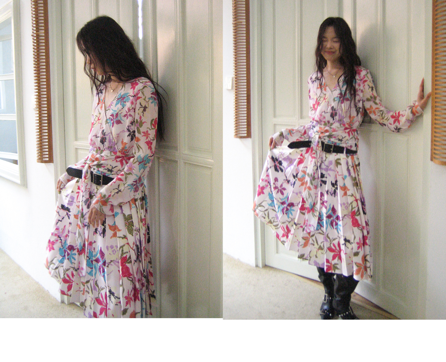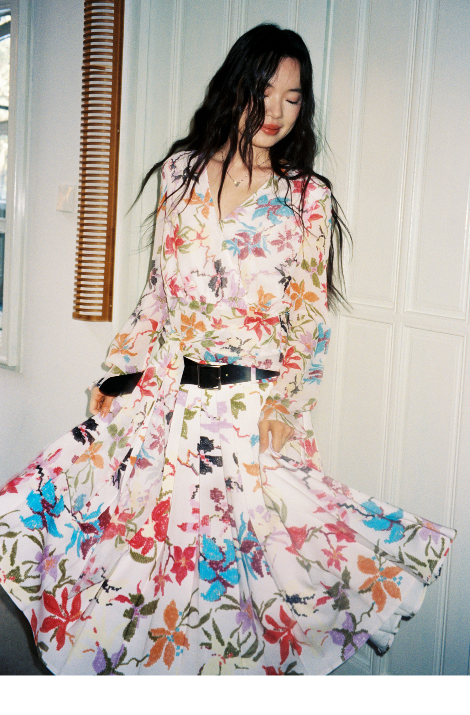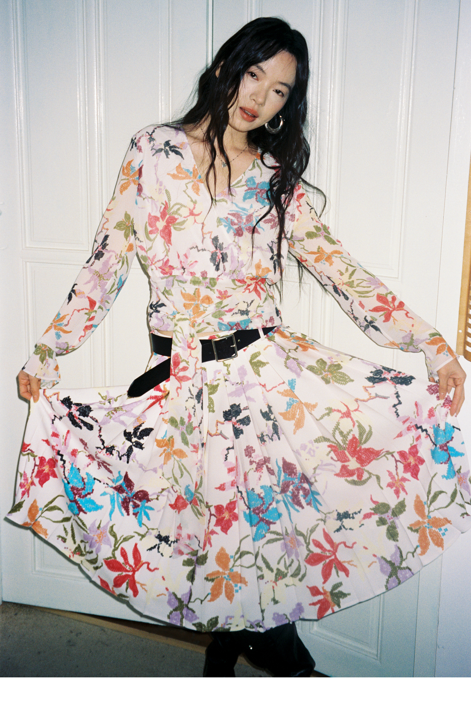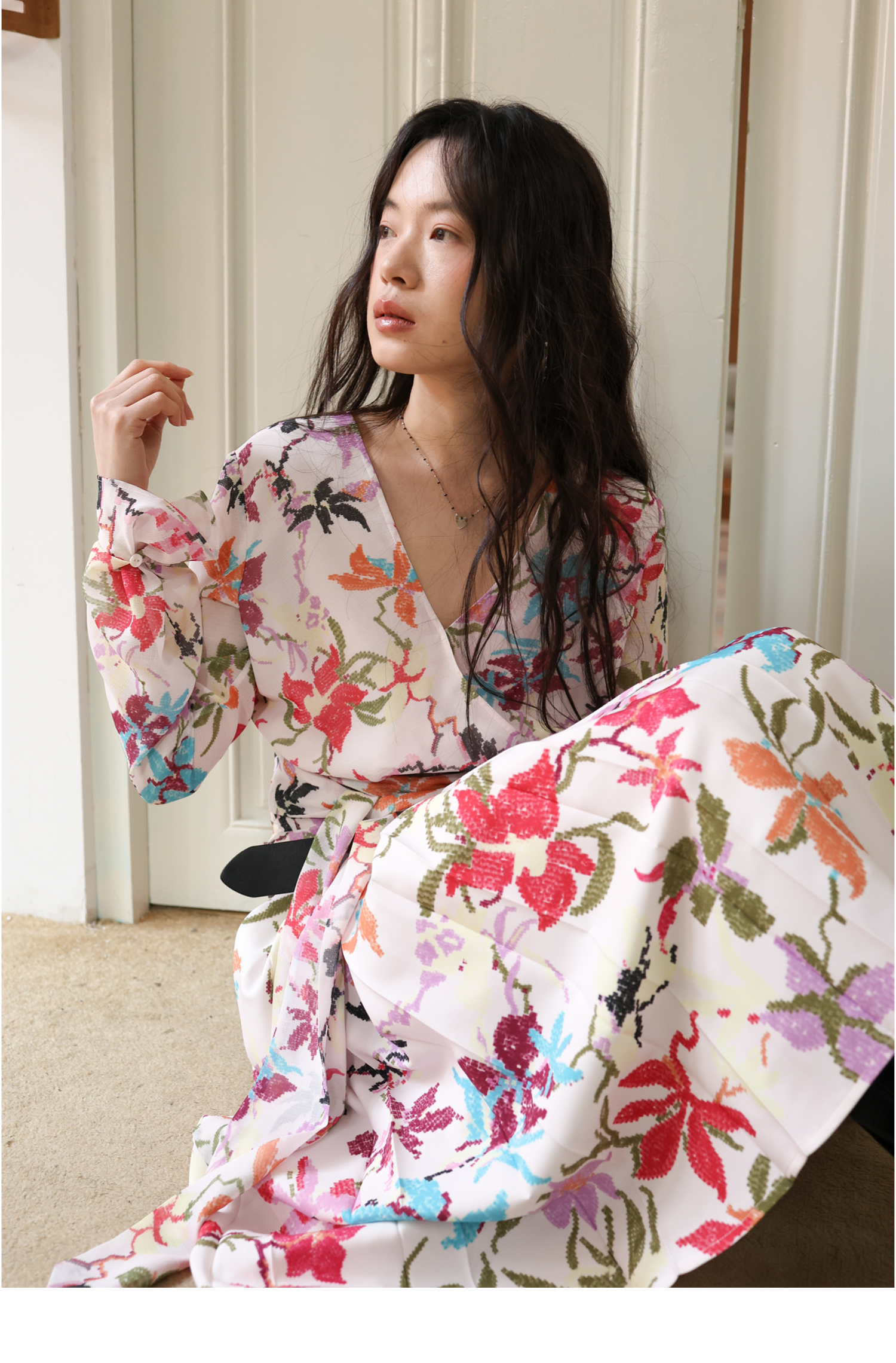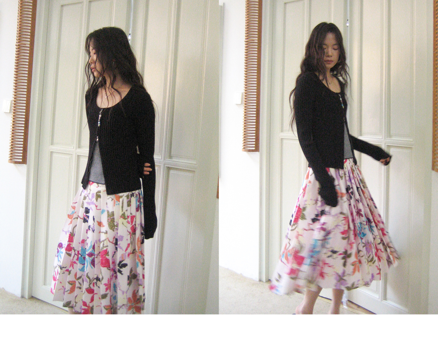 素舶 花影缤纷百搭显瘦百褶印花A字半身裙SUPERSCAPE