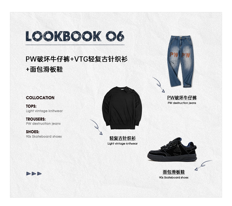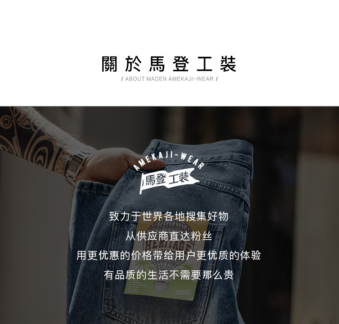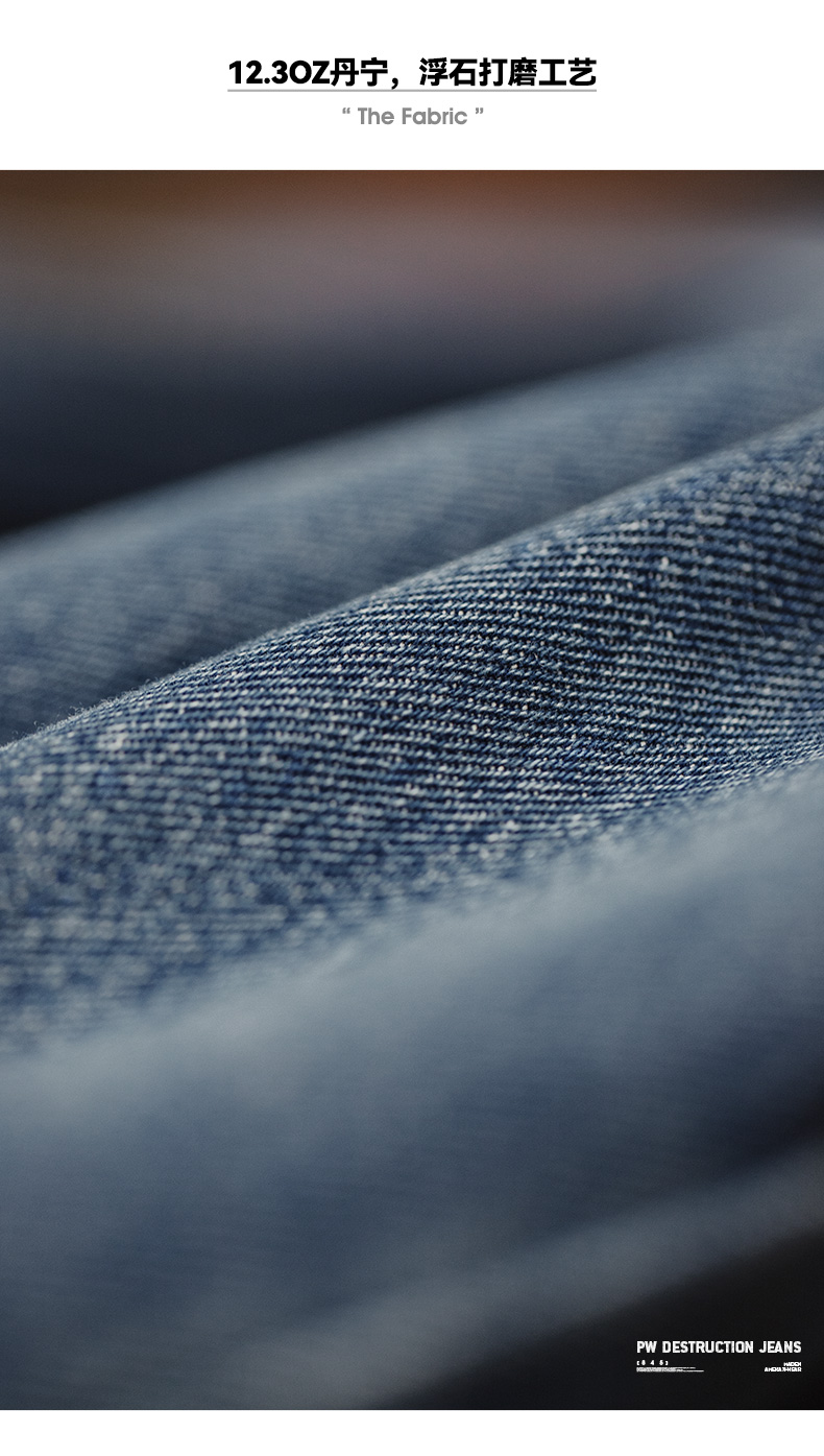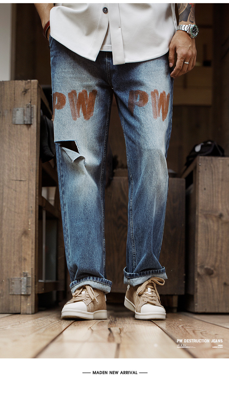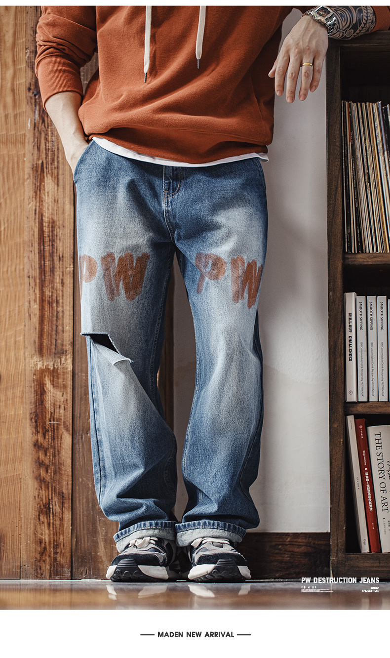 工装优选 美式复古磨白破坏牛仔裤vibe破洞水洗丹宁宽松直筒裤男秋