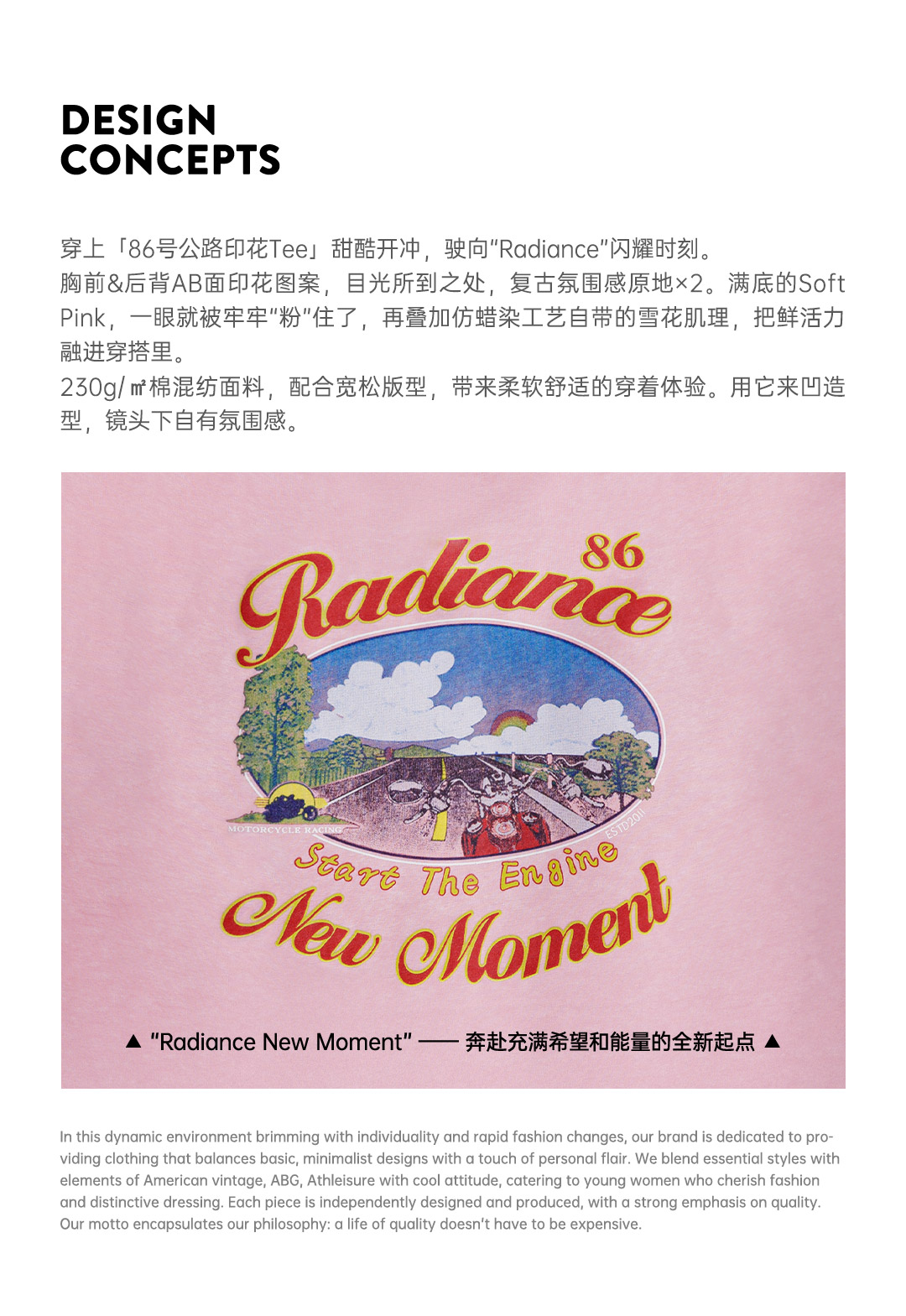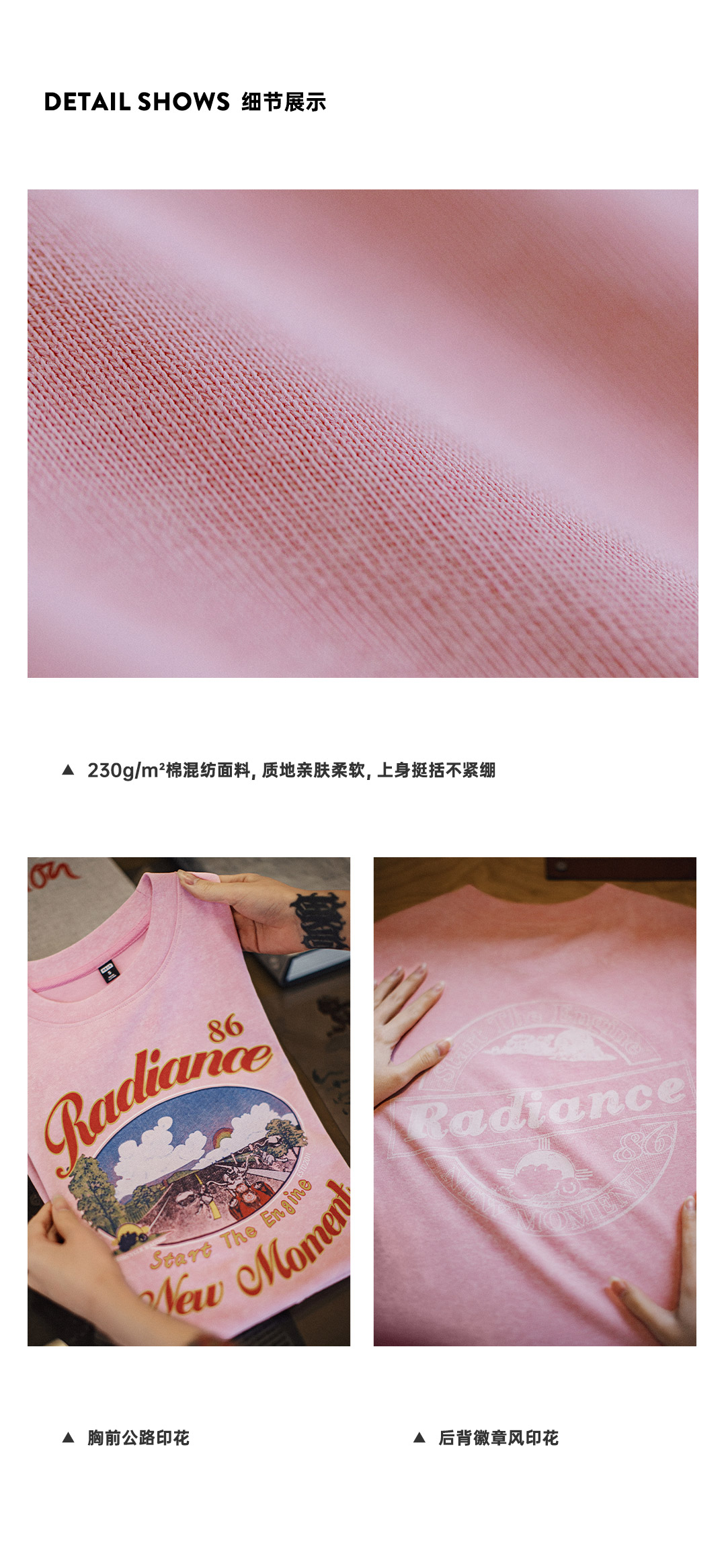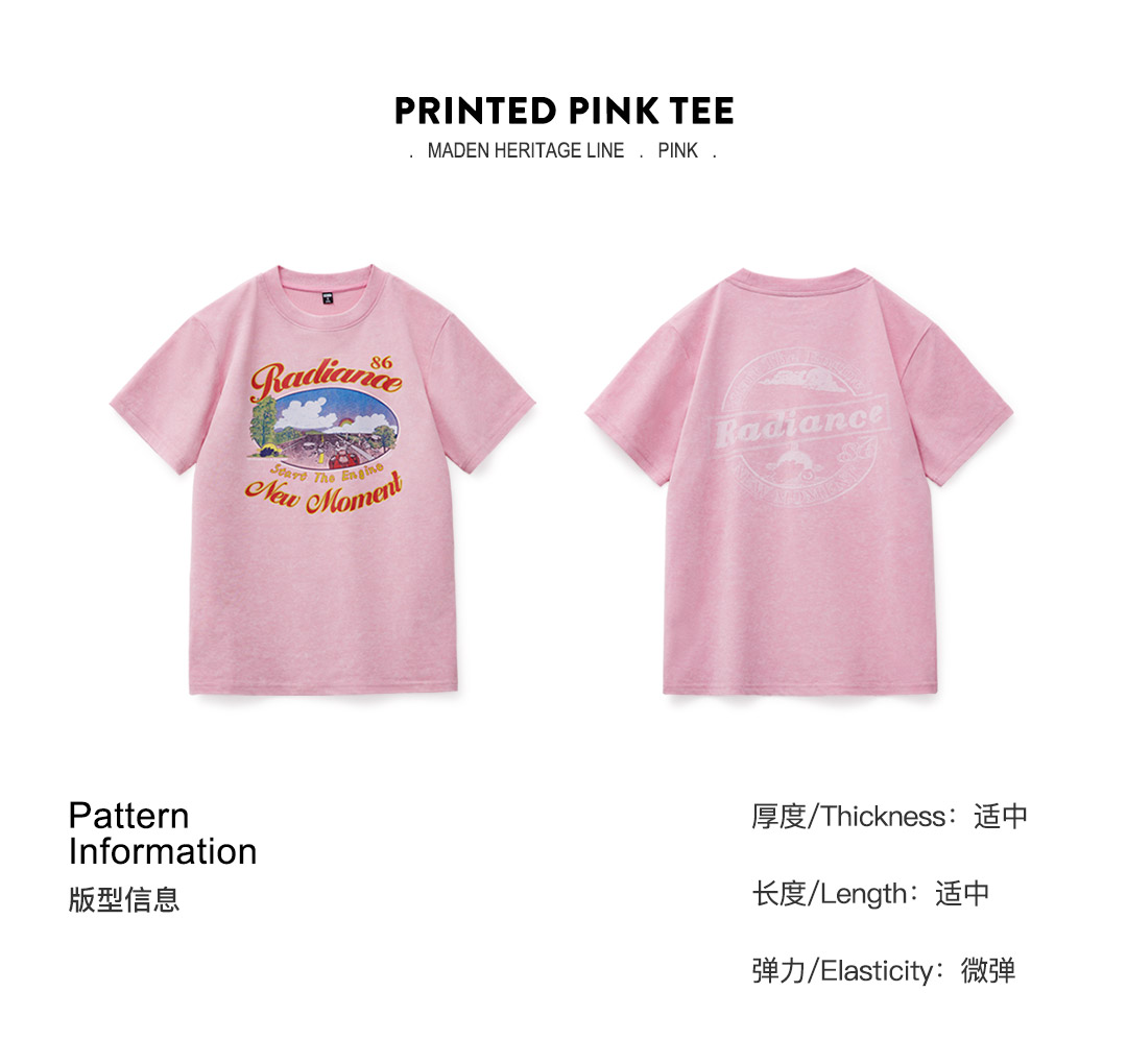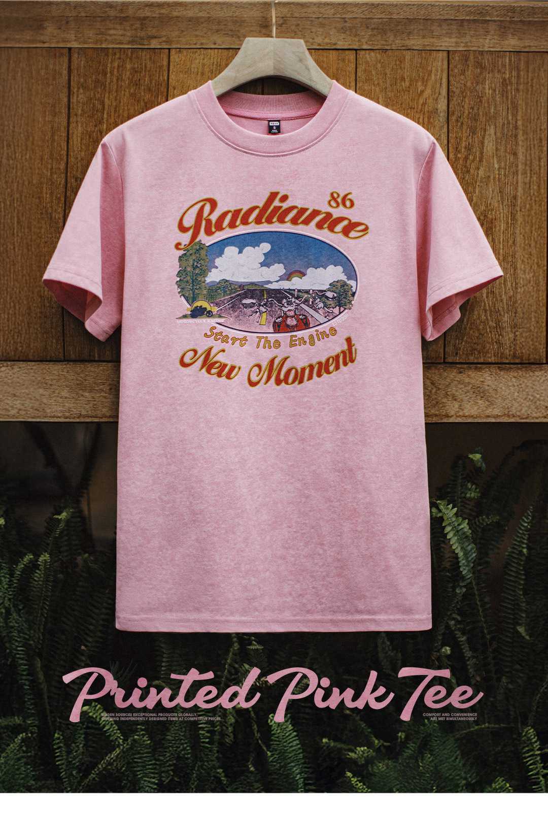 马登夏日仿蜡染粉色印花短袖美式复古机车慵懒显瘦遮肉落肩T恤女