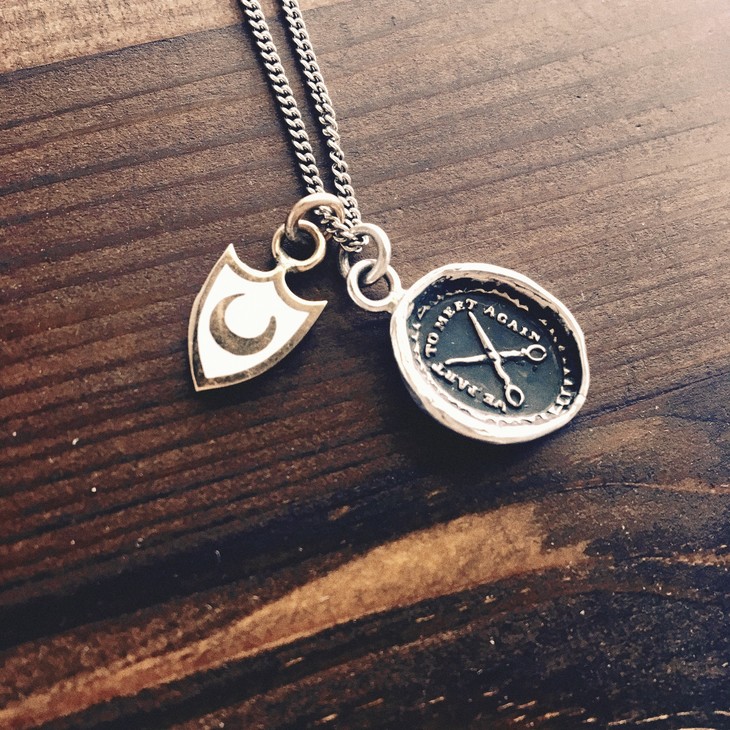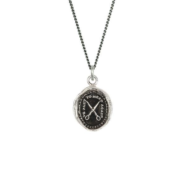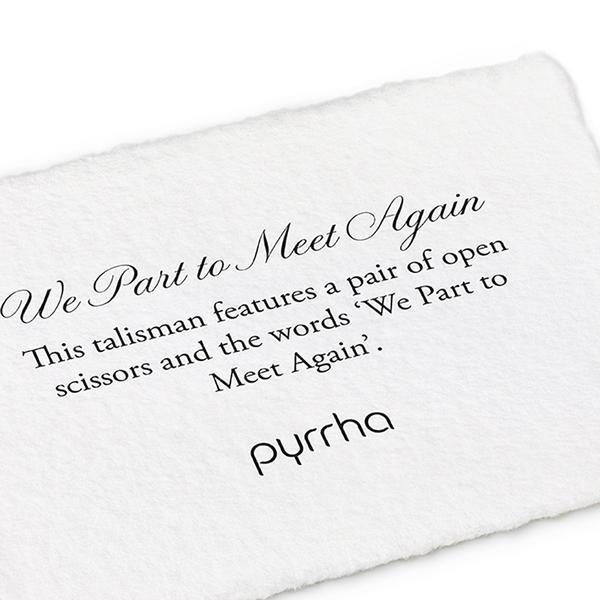 护身符上有一把打开的剪刀,上面写着“我们分开是为了再次相遇”。