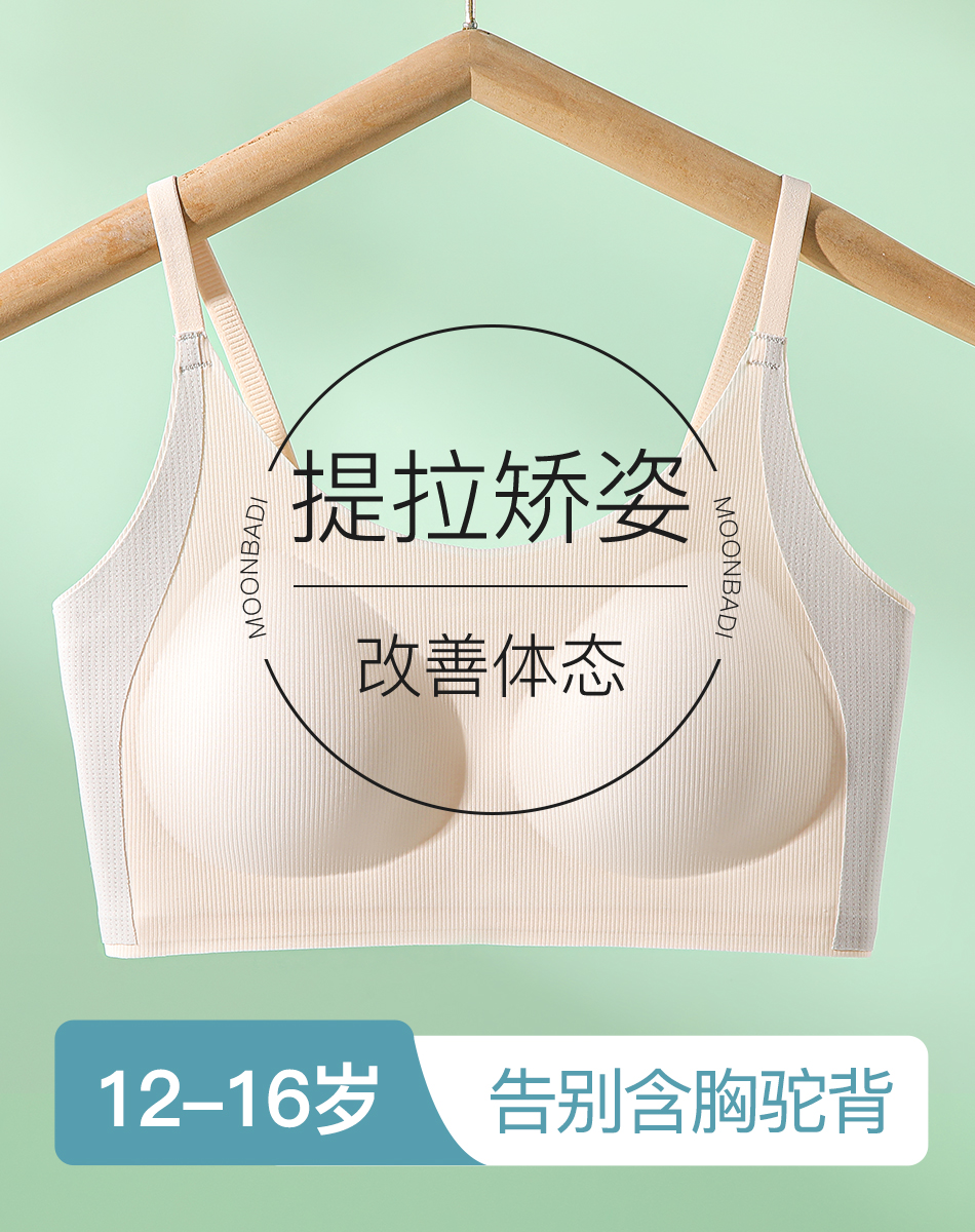 【校服不透】二阶段初高中生少女文胸隐形粉底肤提拉矫姿运动防震692沐歌少女