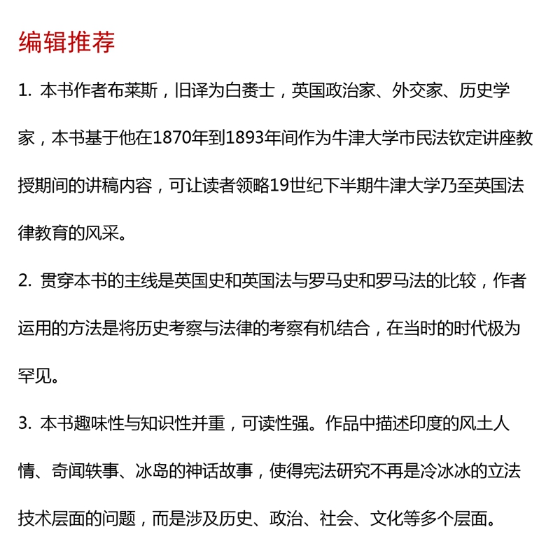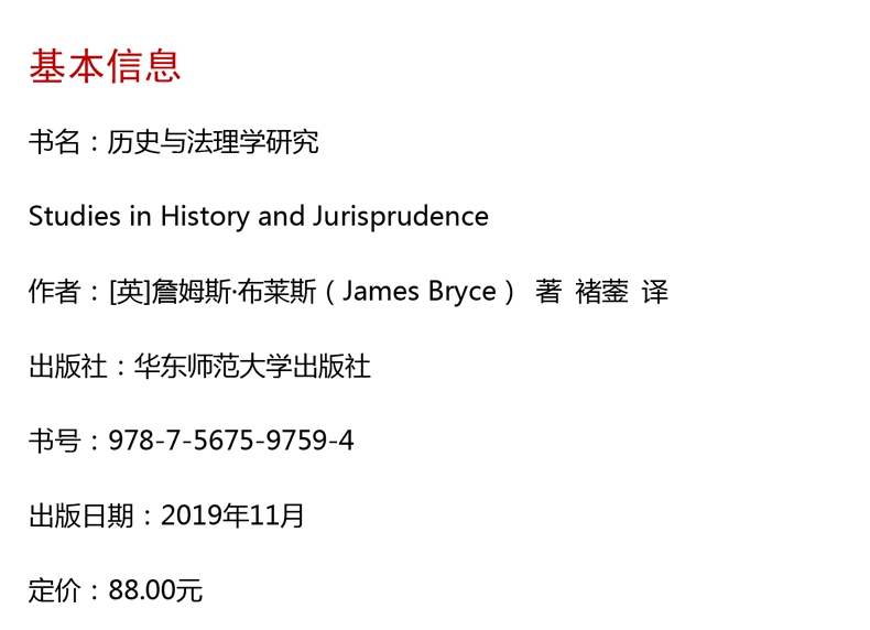 历史与法理学研究 欧诺弥亚译丛 不列颠古典法学丛编之一 罗马史 英国法学家 历史学家詹姆斯 布莱斯