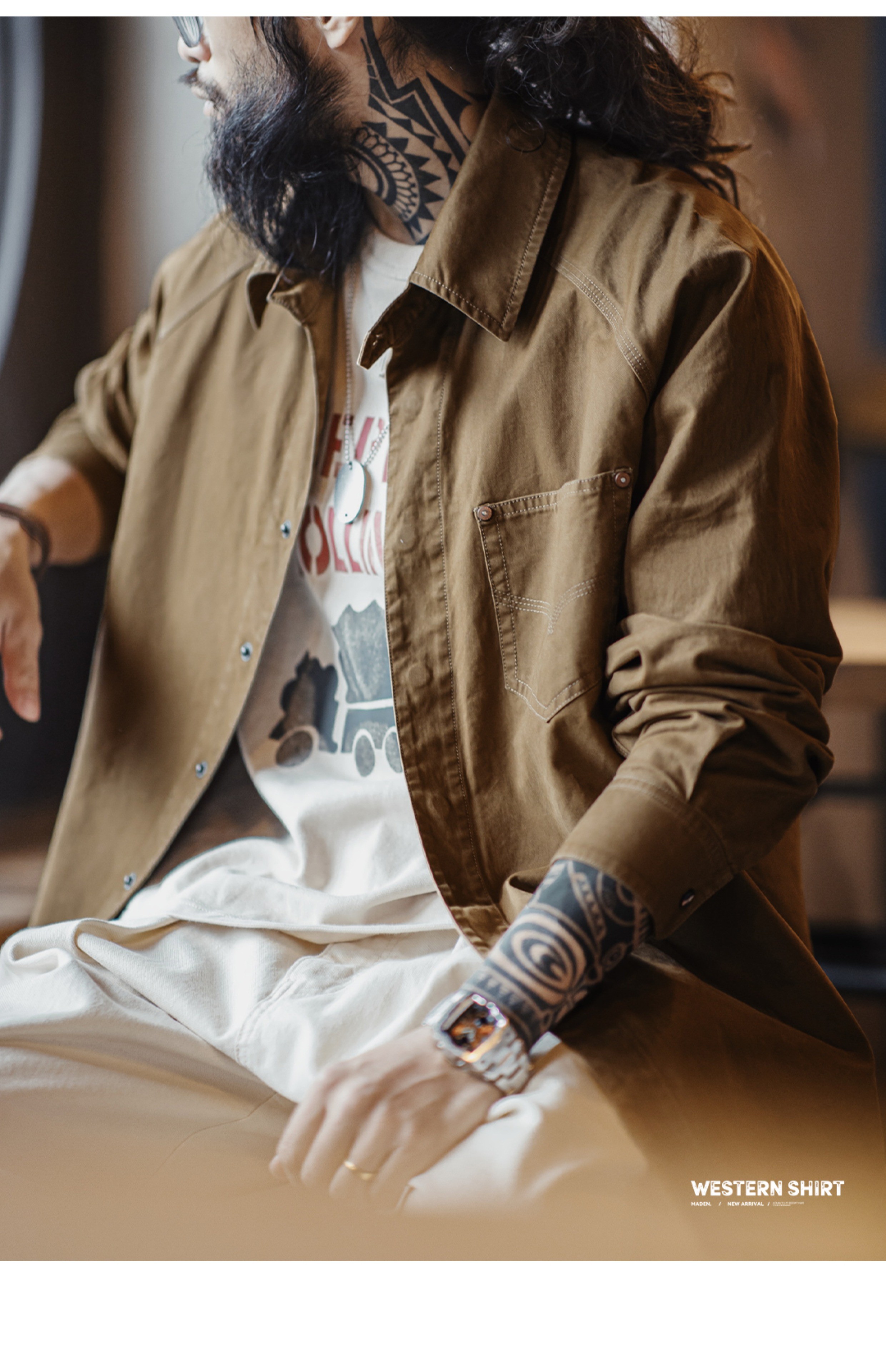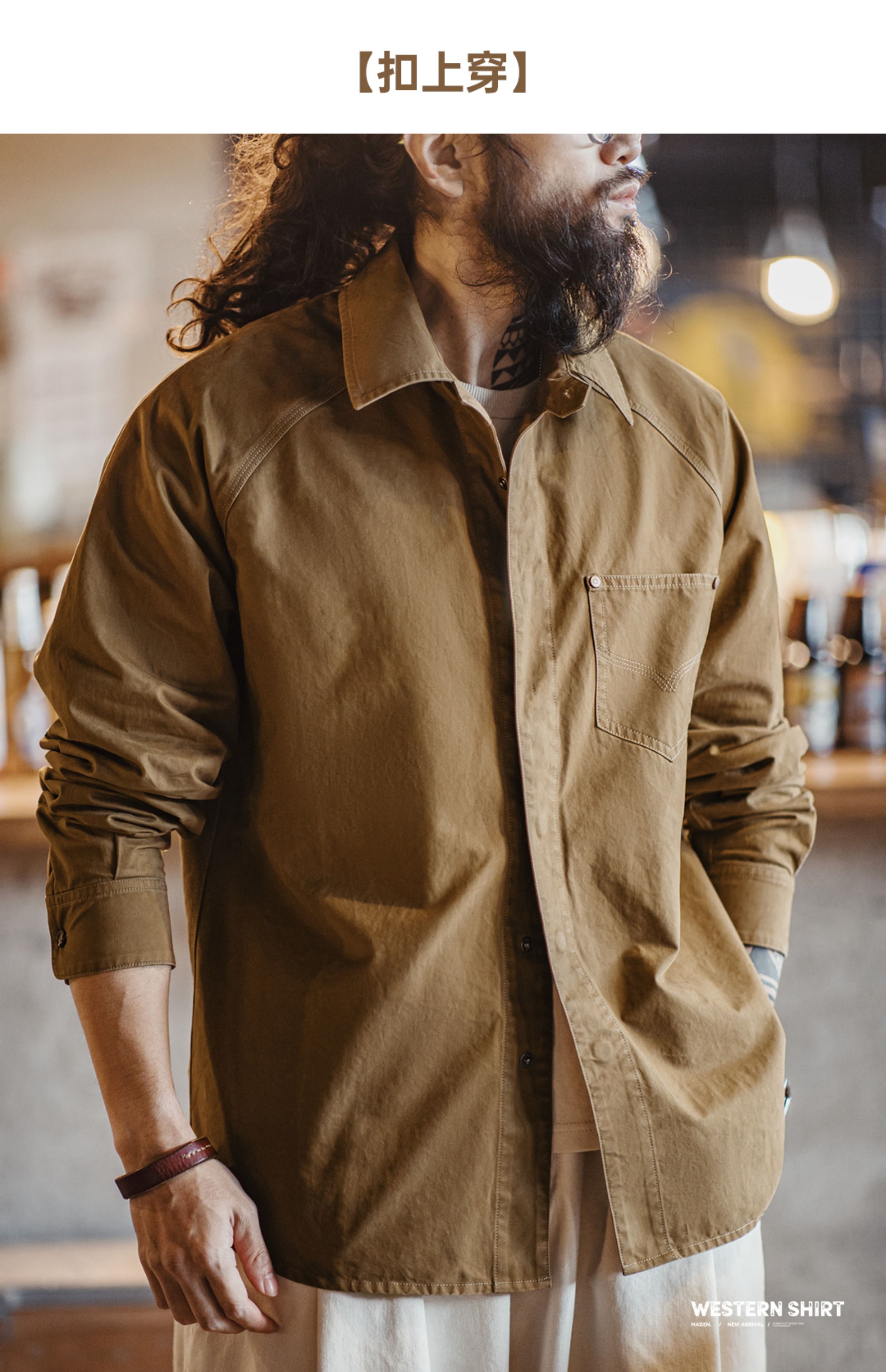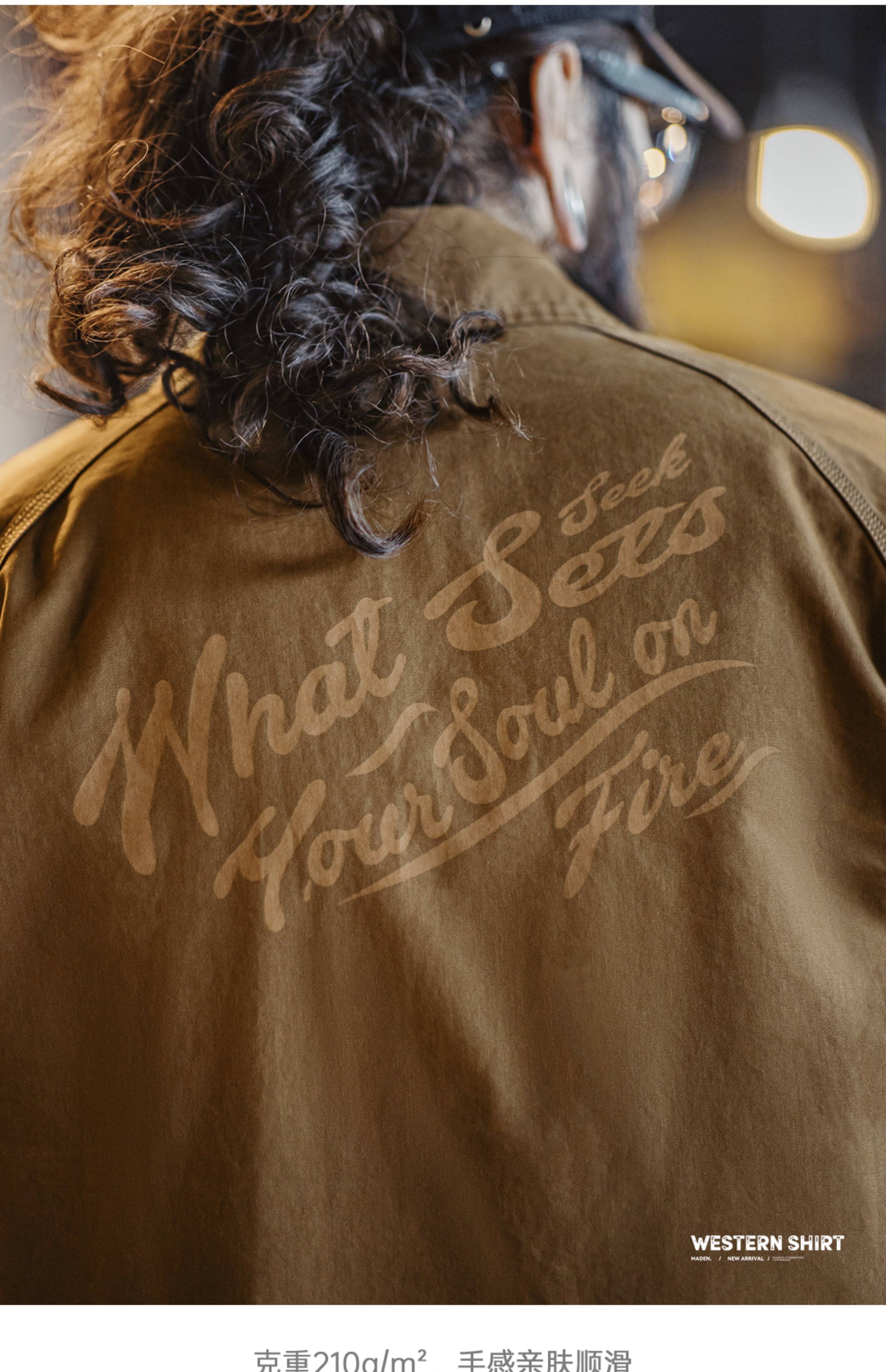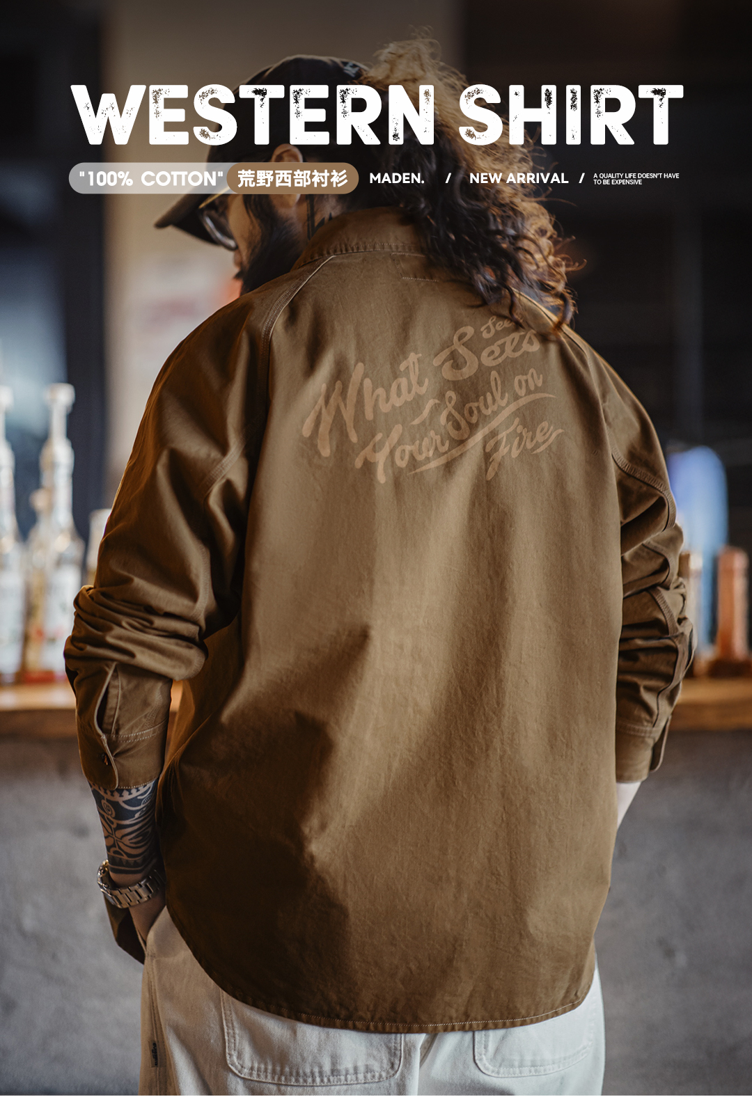 马登工装美式复古印花衬衫美拉德西部牛仔衬衣纯棉长袖外套男秋