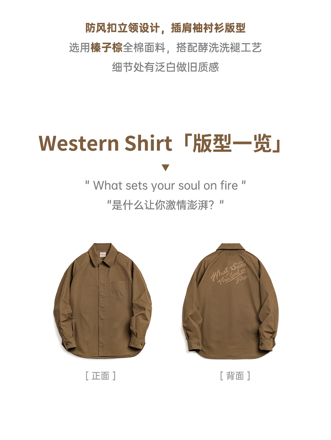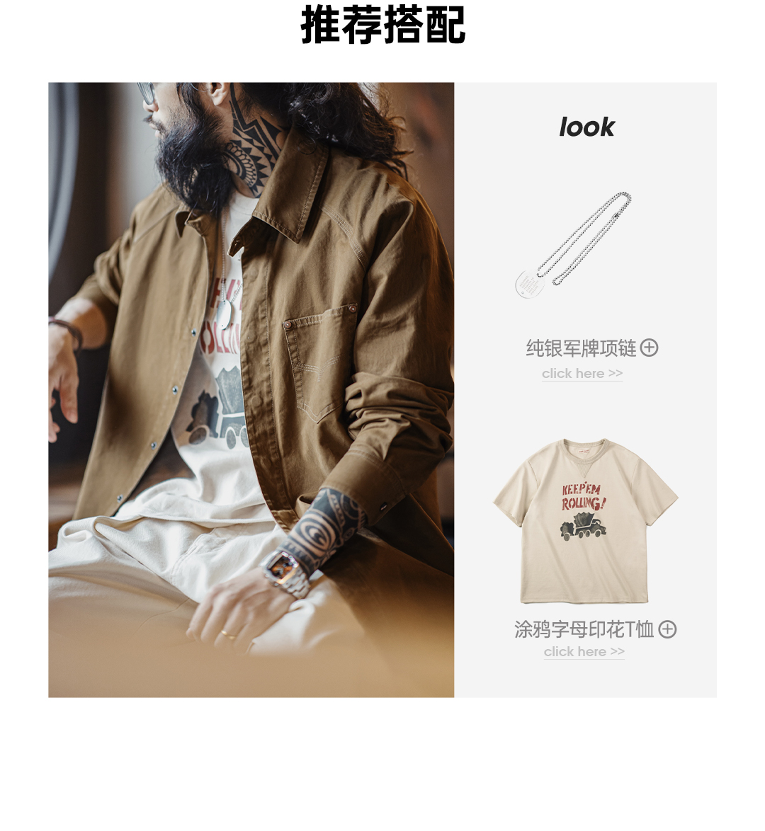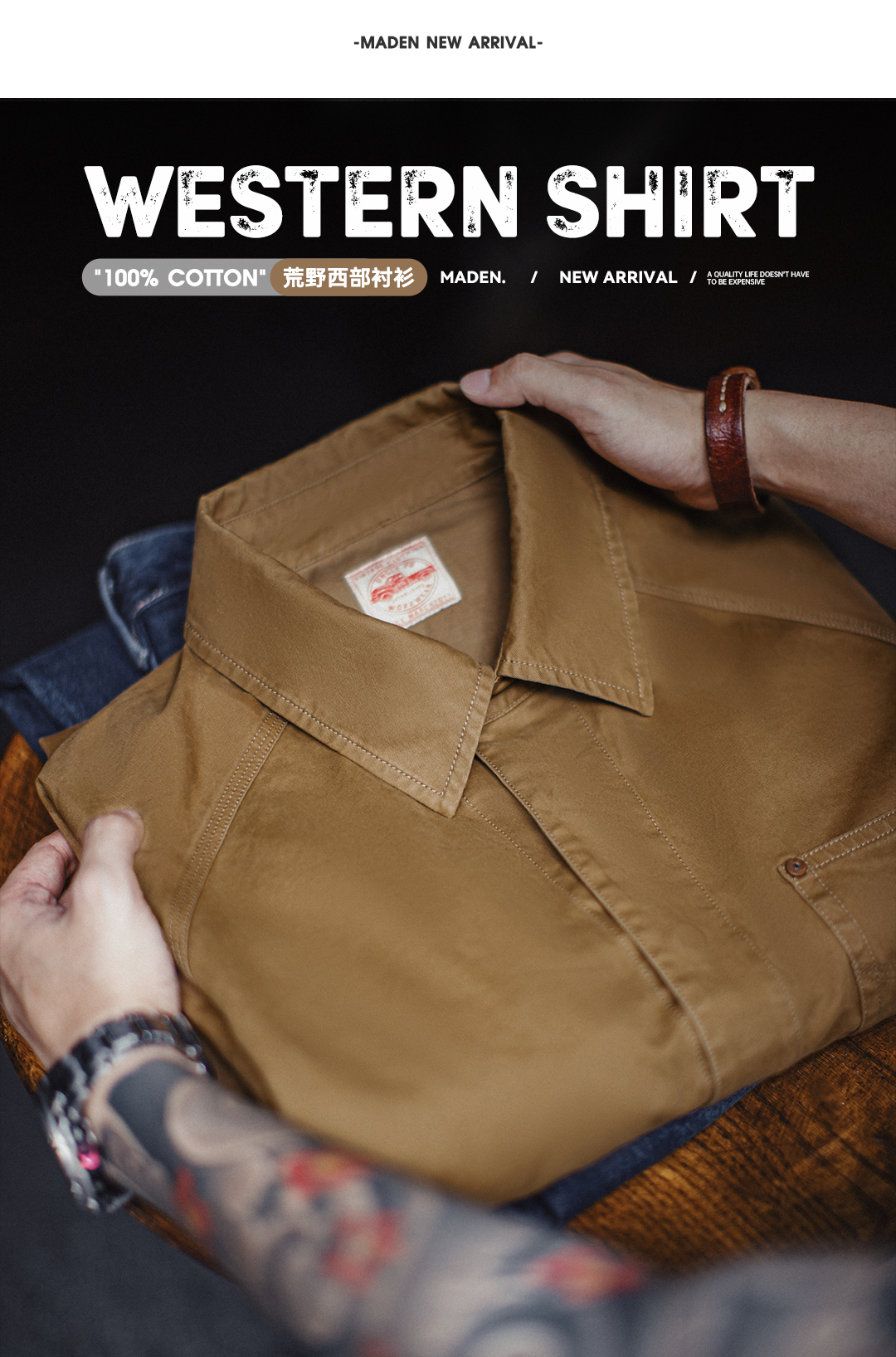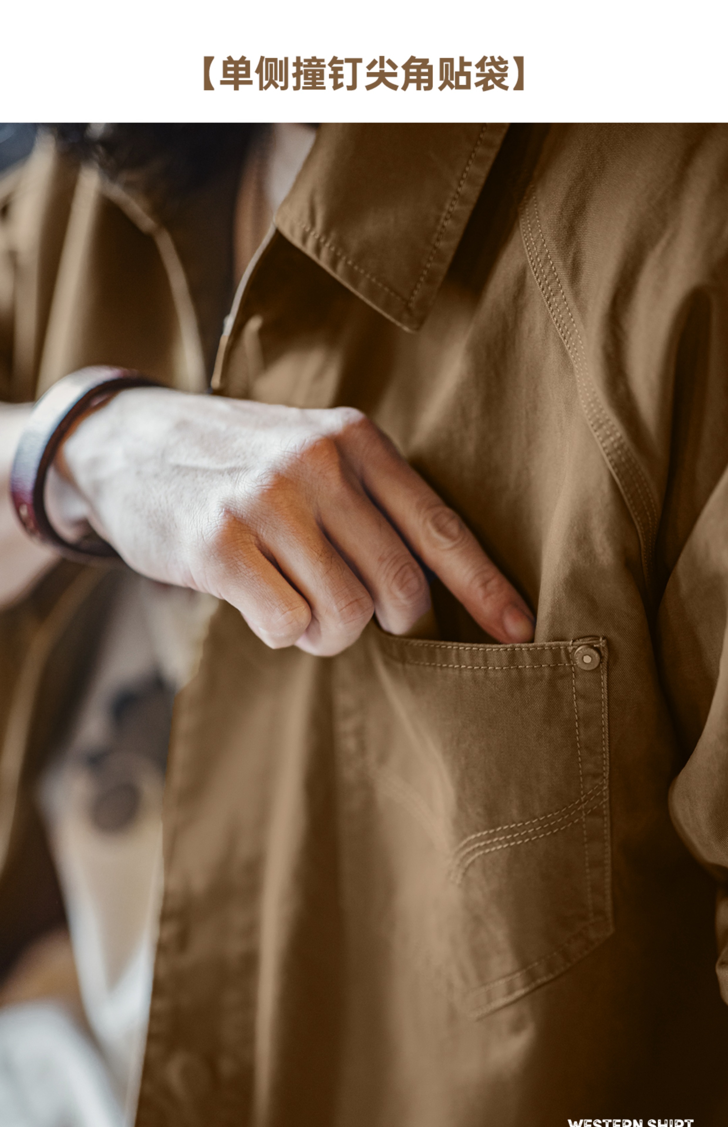 马登工装美式复古印花衬衫美拉德西部牛仔衬衣纯棉长袖外套男秋