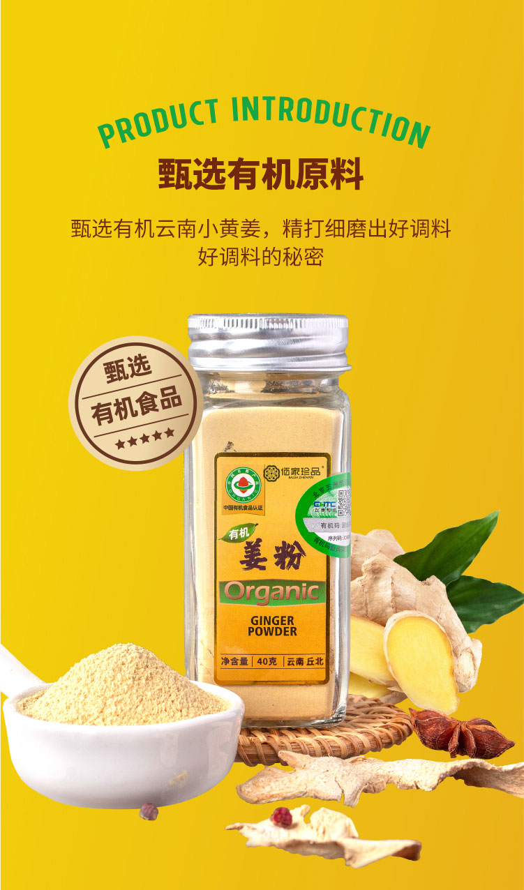 云南调料有机姜粉40g小瓶小黄姜粉纯姜粉食用姜粉冲饮泡水调料包邮