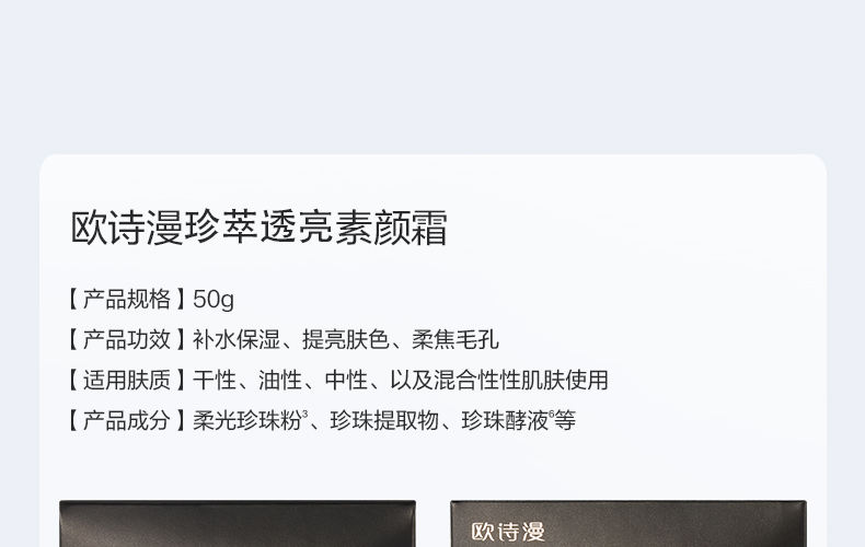 【拍1到手2瓶】欧诗漫珍萃透亮素颜霜50g 赠同款珍萃透亮素颜霜50g