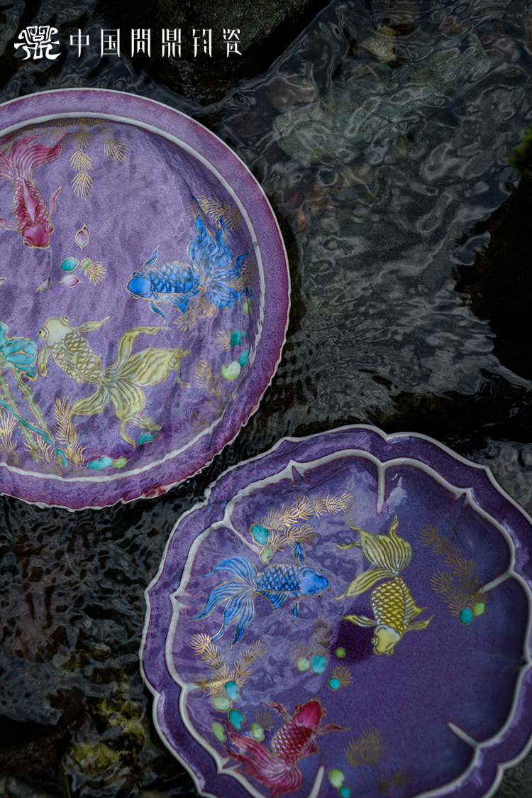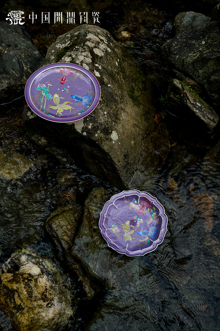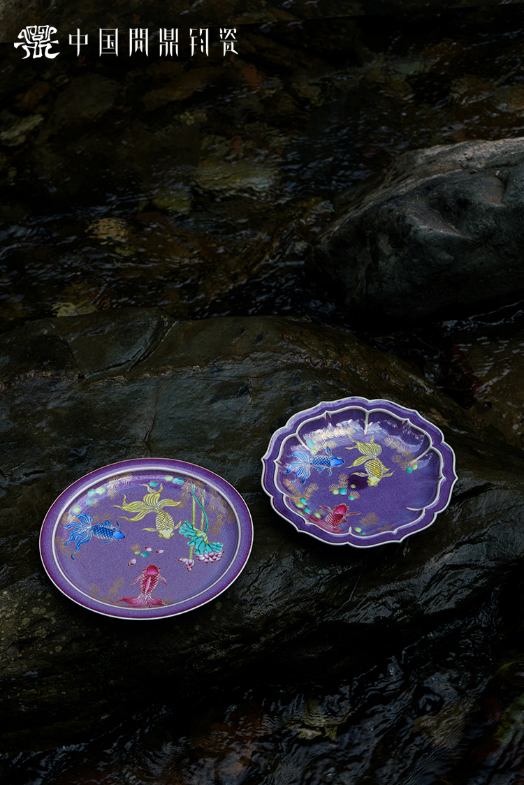 问鼎钧瓷宝相壶承 (双鱼跃池)妙时壶承 (荷塘鱼游)