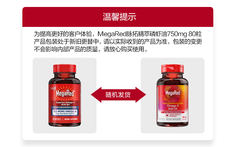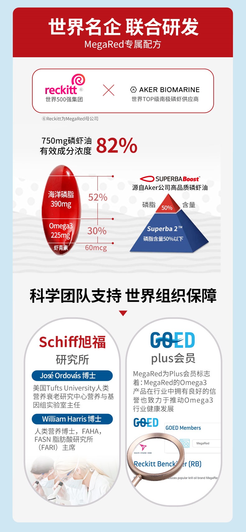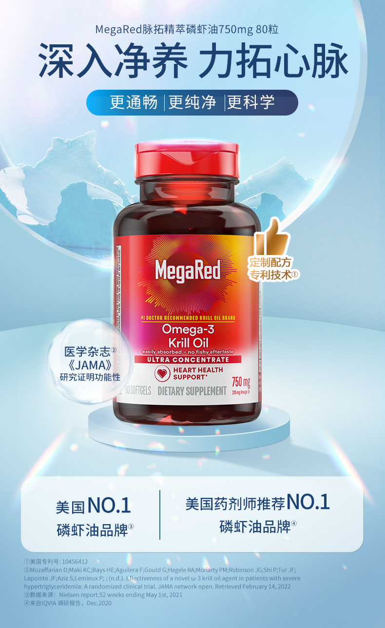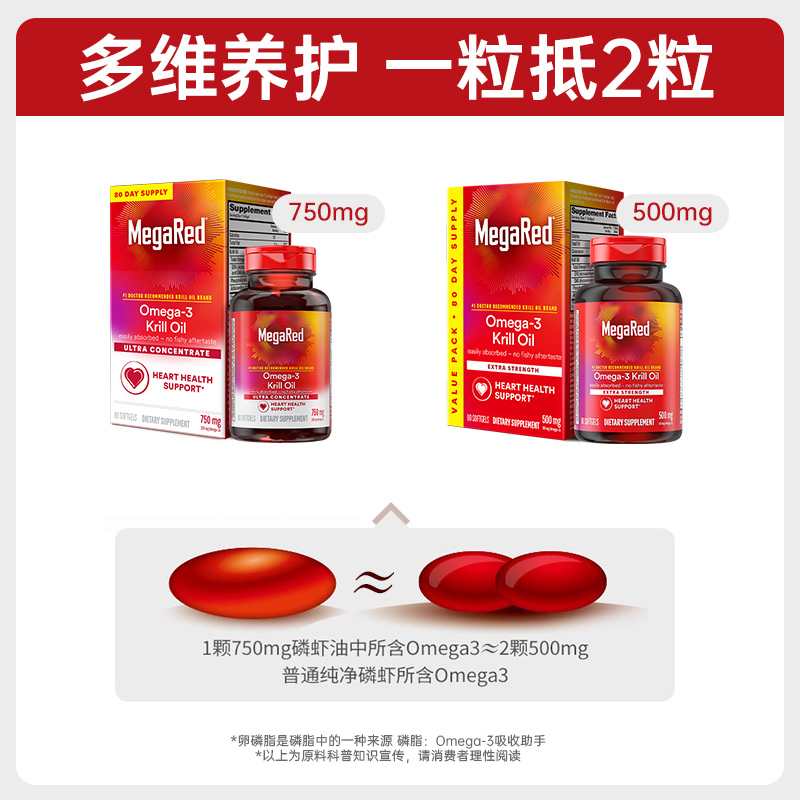 MegaRed脉拓 美国纯南极精萃磷虾油 750mg 500mg虾青素非深海鱼油胶囊80粒