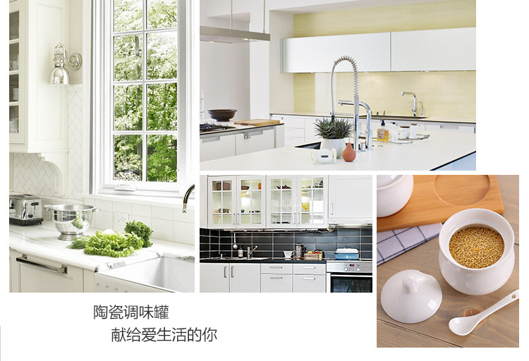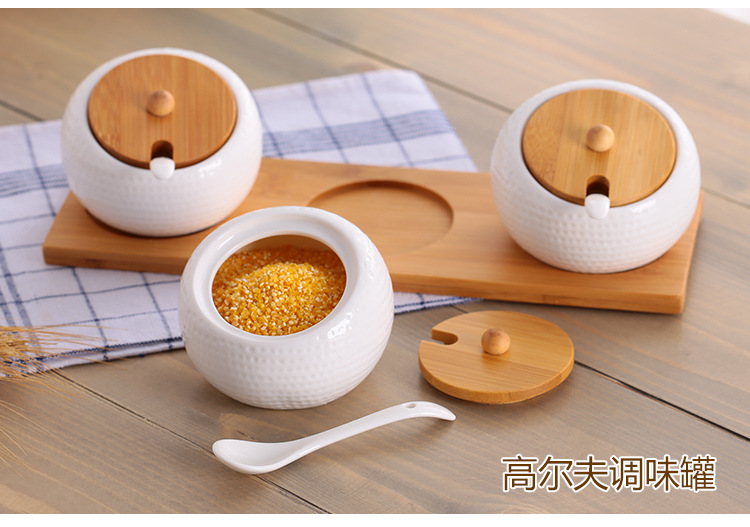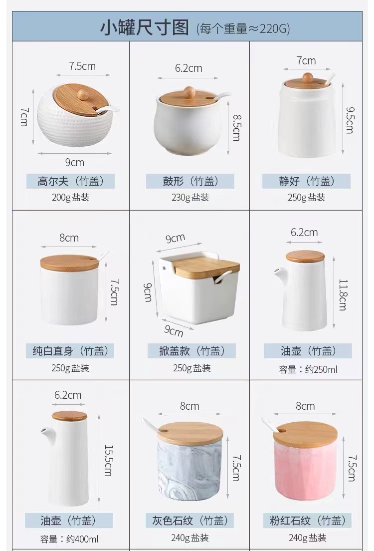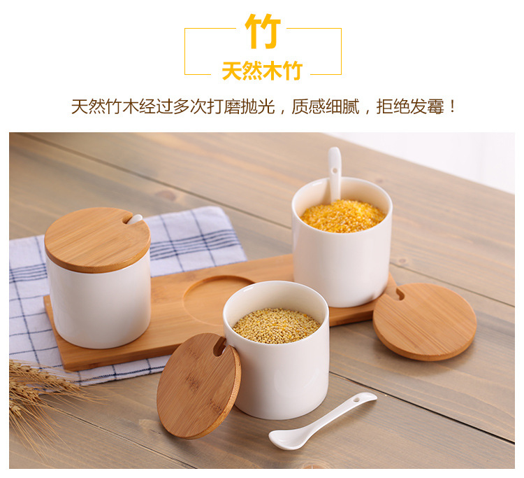 单个陶瓷调料罐厨房调味瓶罐盐罐带竹盖勺调味盒调味调料罐调味架