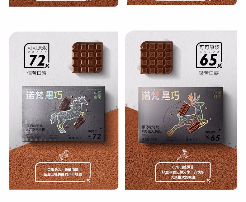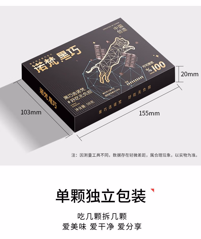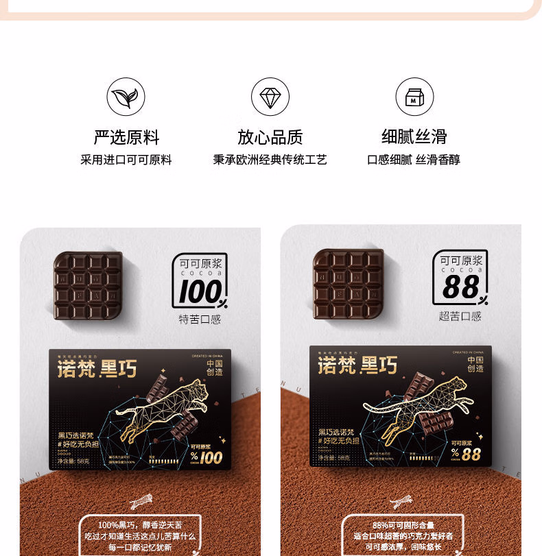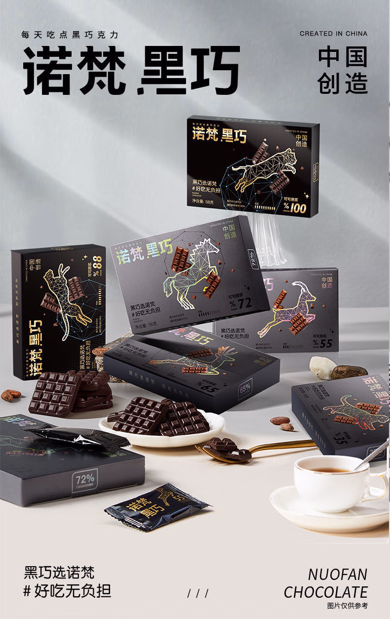 诺梵100%可可逆天苦黑巧克力58g/盒(AA)