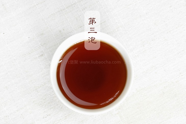 茶至五道,汤色深红明亮,犹如琥珀一般,陈香更为明显,滋味浓厚甜醇,层次感丰富。茶至十道,陈香依然,喉韵绵长。再细看叶底,棕褐匀亮,叶质柔软,充满活力。