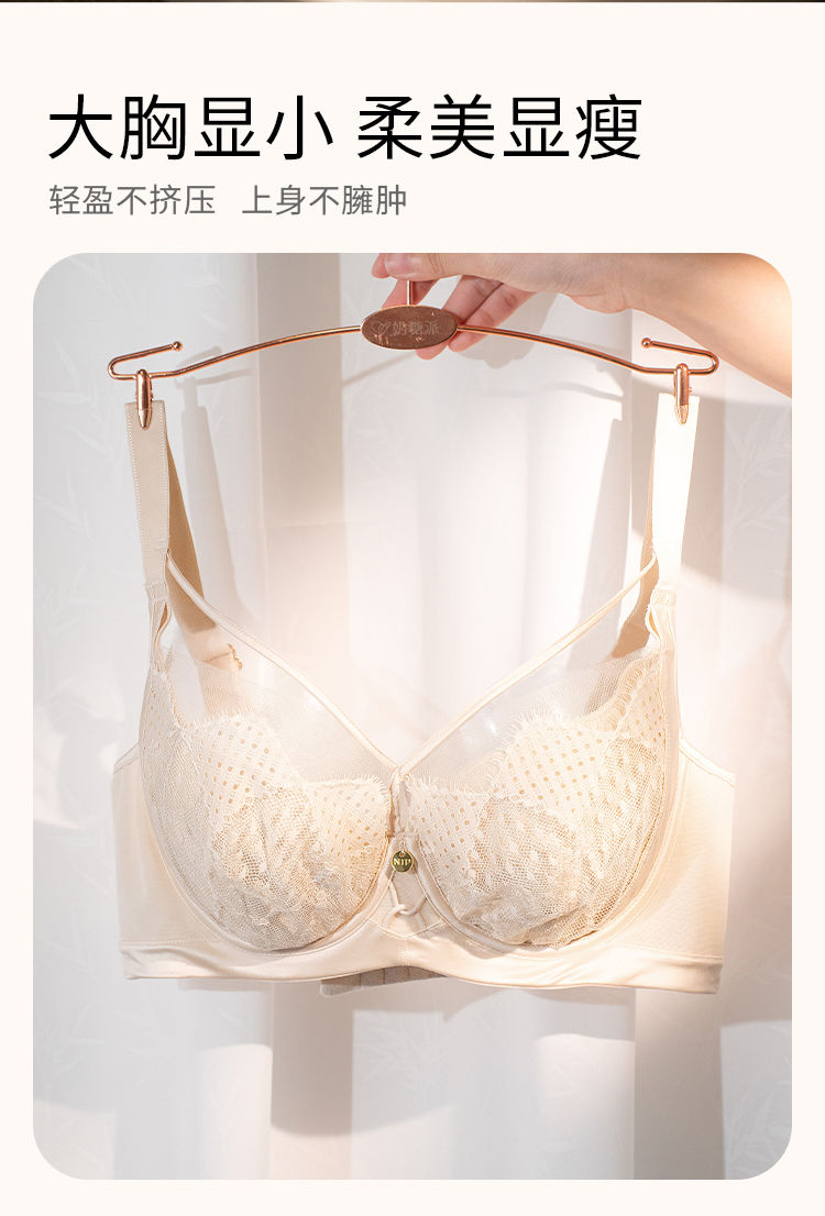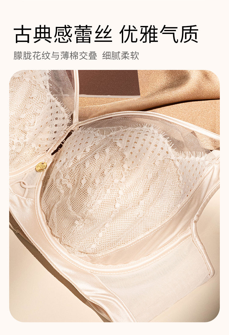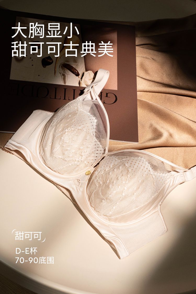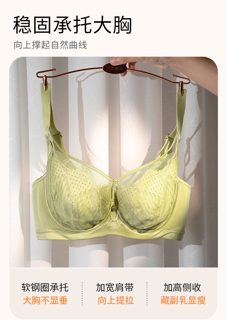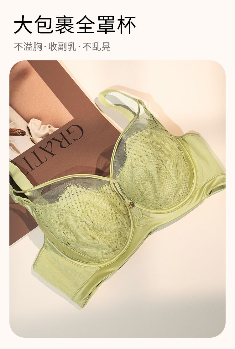奶糖派甜可可全罩杯文胸大包裹古典蕾丝大胸显小亲肤承托舒适内衣