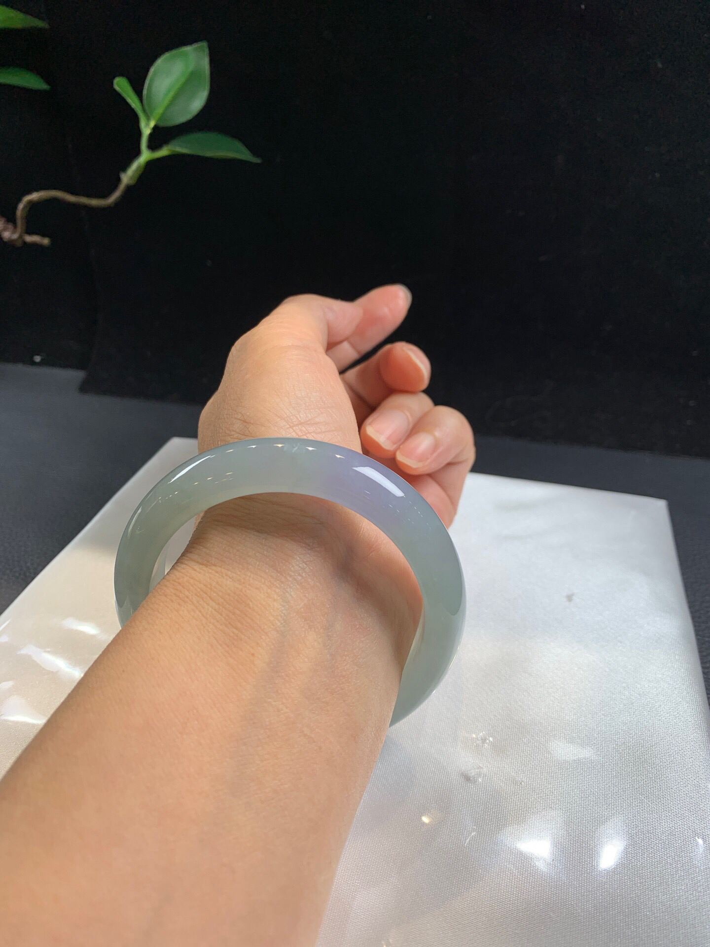 612502,56.冰紫正圈手镯,12.9-8.5mm,冰底整圈带晴底色,飘一截紫,整条冰冰润润,干净完美 ,超值价💰87400 #优石客珠宝#香玉荟萃