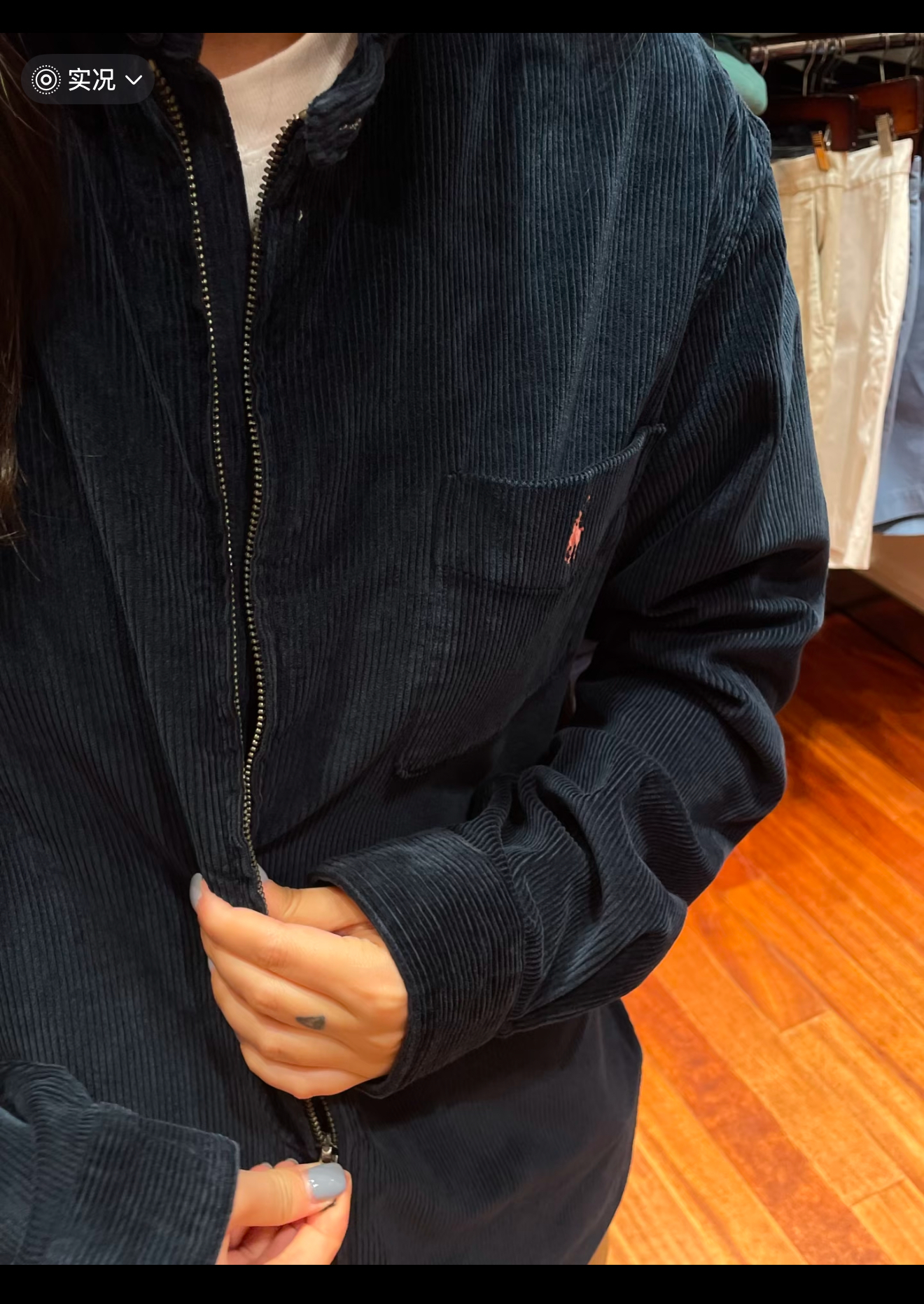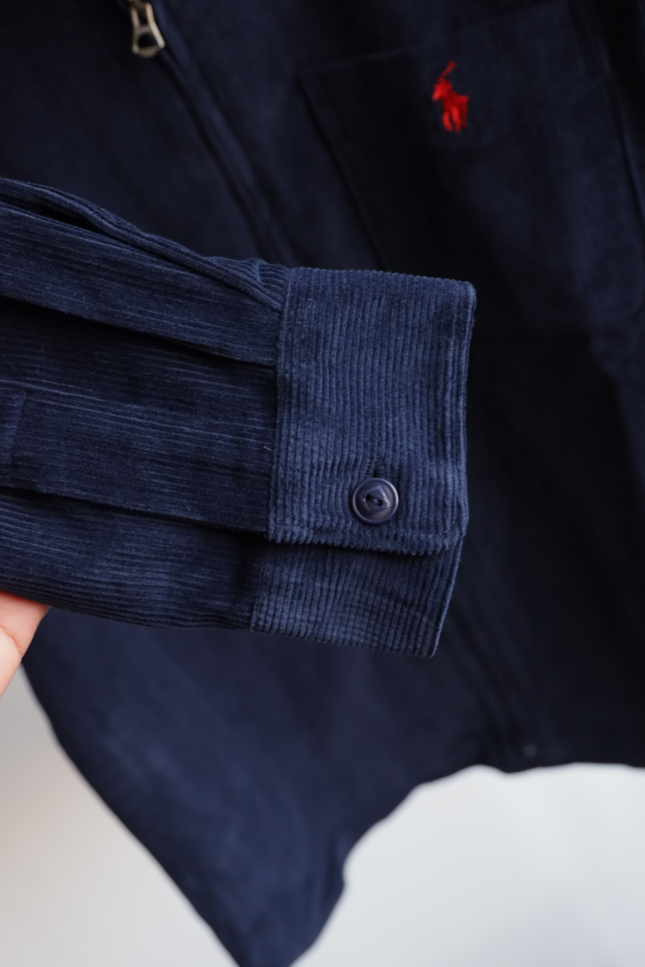 绒条相比RL的灯芯绒衬衫来说要粗得多,清晰有厚度,摸起来软软糯糯的,绒感平实细腻不毛糙