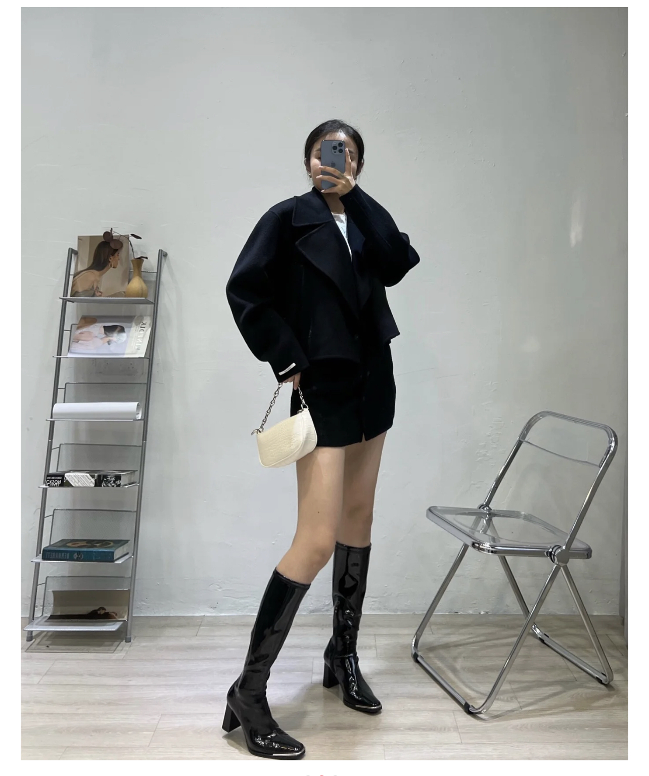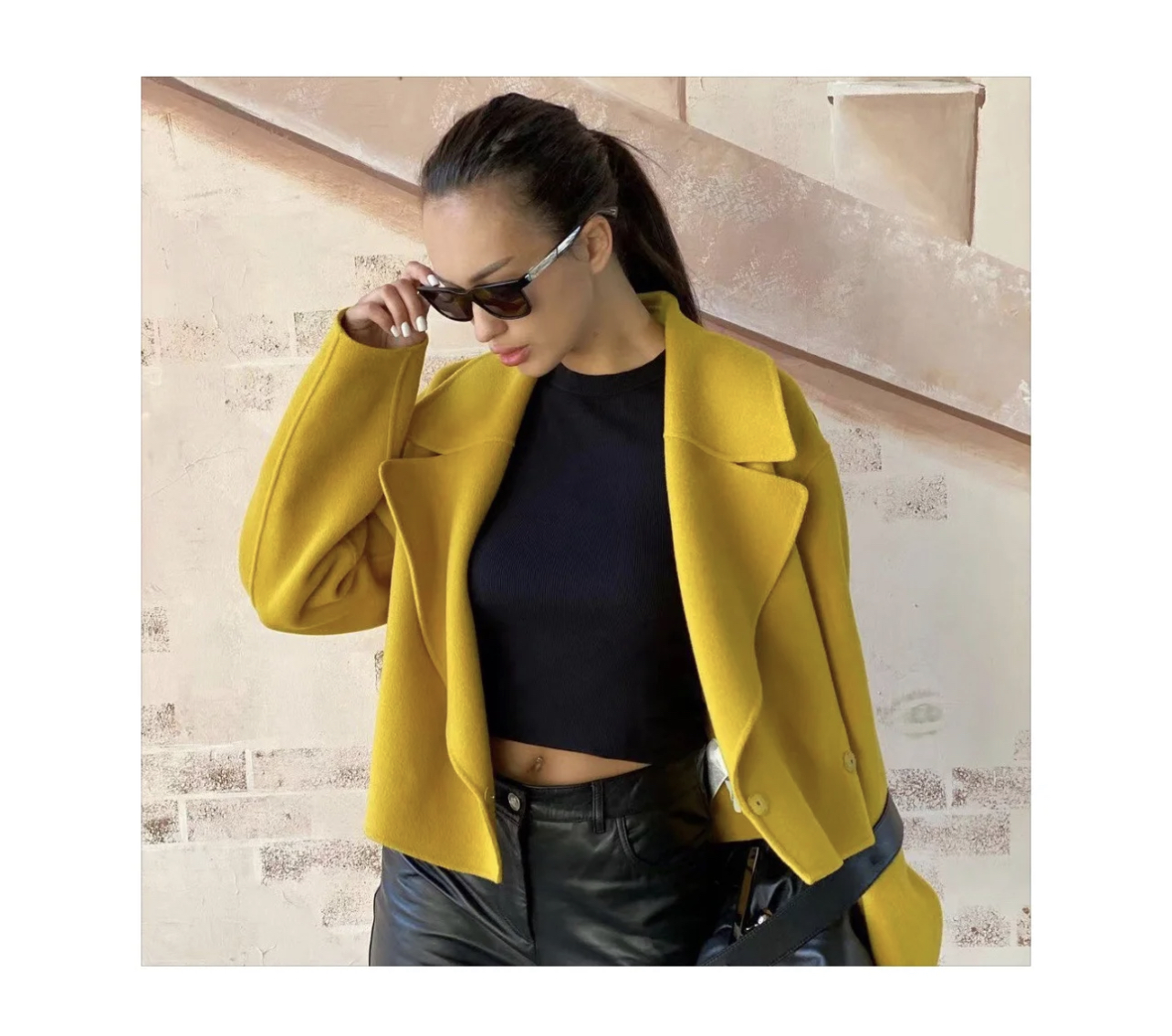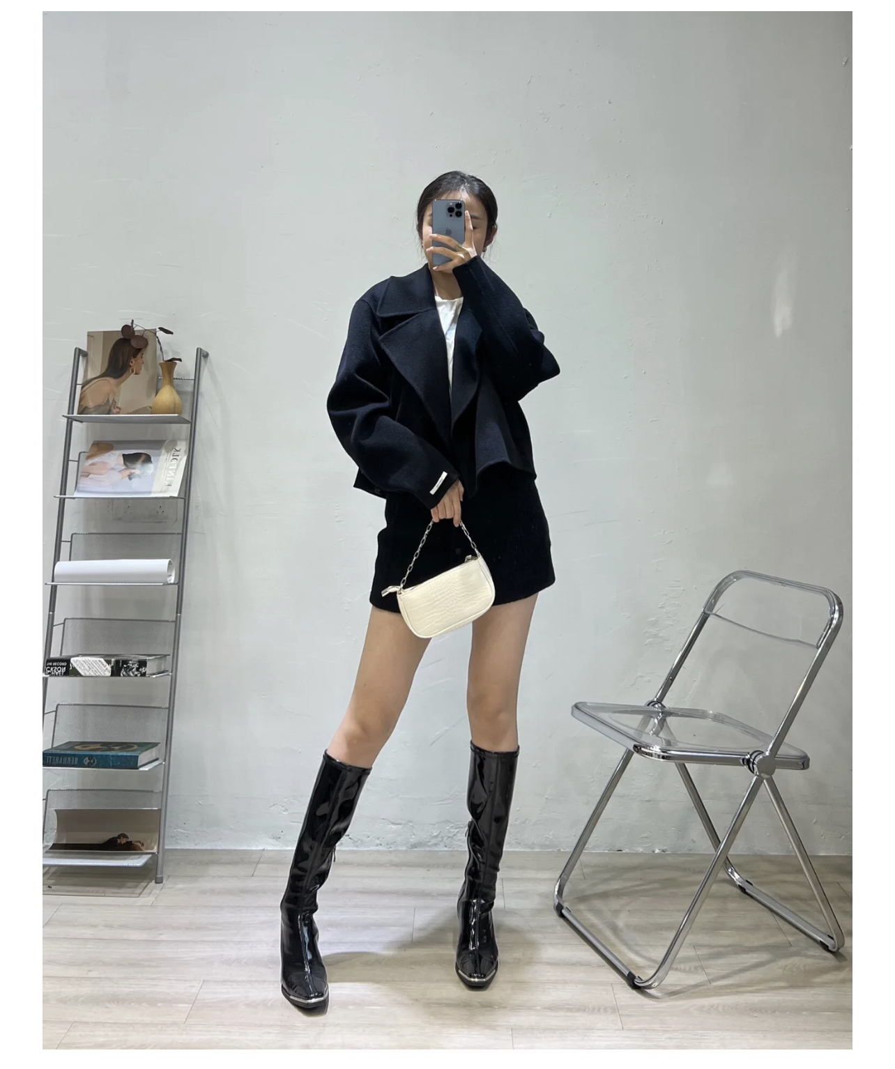 M.M 100绵羊毛 羊毛呢短外套 廓形短款大衣