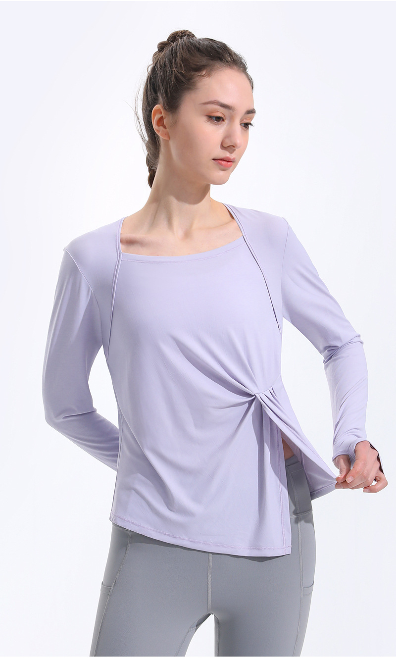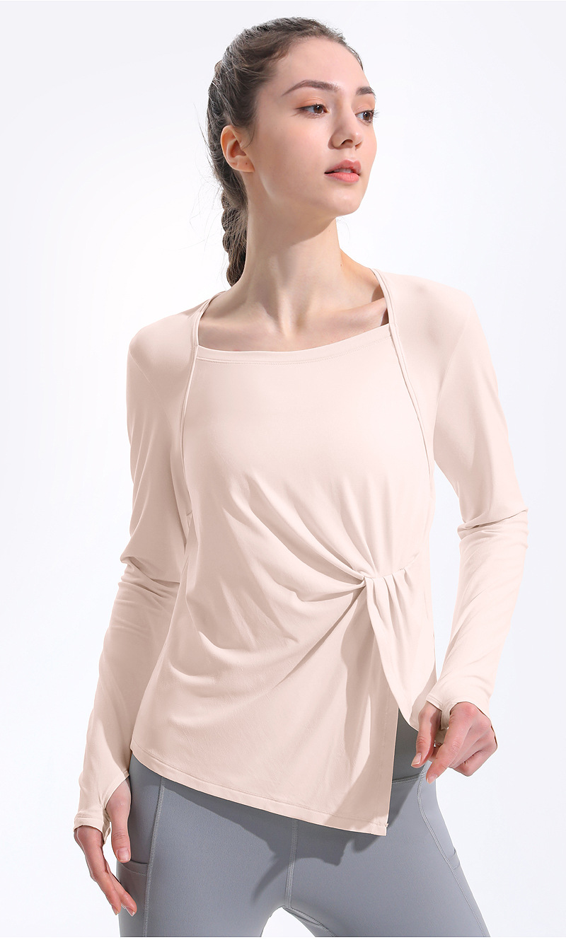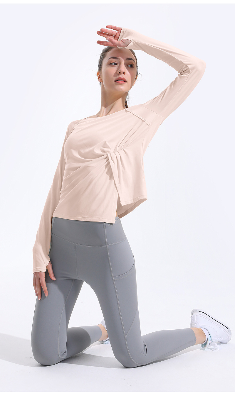 健身瑜伽长袖女速干透气宽松跑步运动罩衫束腰显瘦长袖T恤瑜伽服LW 000 TX45