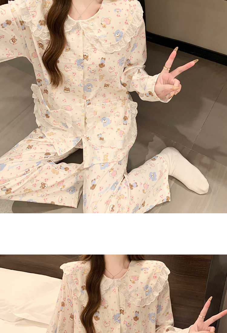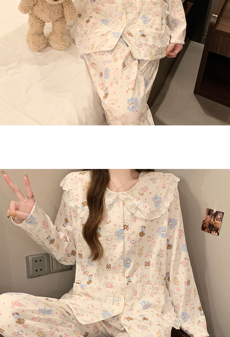 <有书独家>【超好看!窝在家里舒服很重要】趣味俏皮,新款家居服套装卡通花边娃娃领云朵棉长袖睡衣女春秋款冬季甜美风睡衣套装