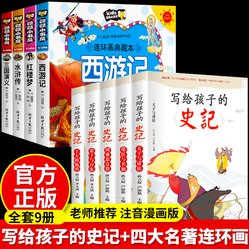 全套9册《 史记》小学生版 + 儿童中国 《四大名著》连环画漫画版 适合青少年小学生 初中人民教育出版社
