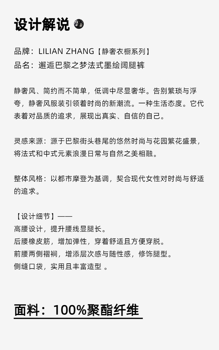 E“定制”——静奢风 ——邂逅巴黎——风尚之选——法式墨绘阔腿裤 2504006