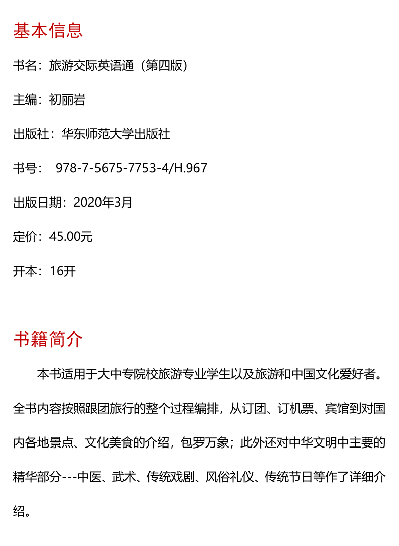 旅游交际英语通 第四版 面向旅游管理专业英语教材 大中专院校旅游专业