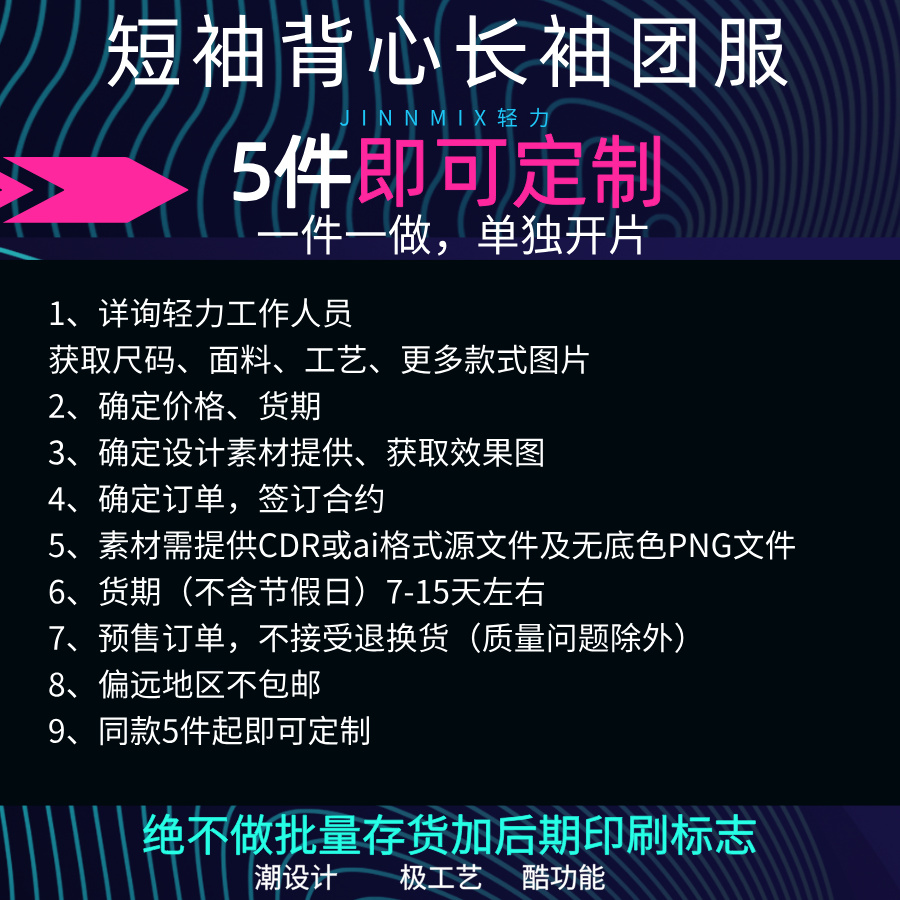 5、 团服一直在增减款式,图文包不能完全及时概括,有咨询时请发放海报图为准进行定制 。