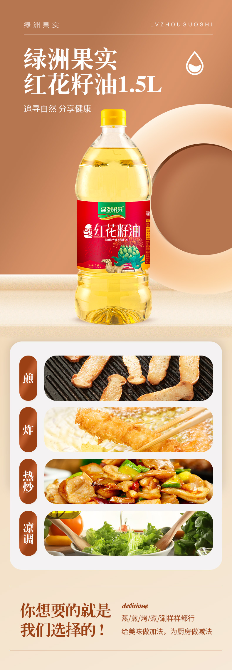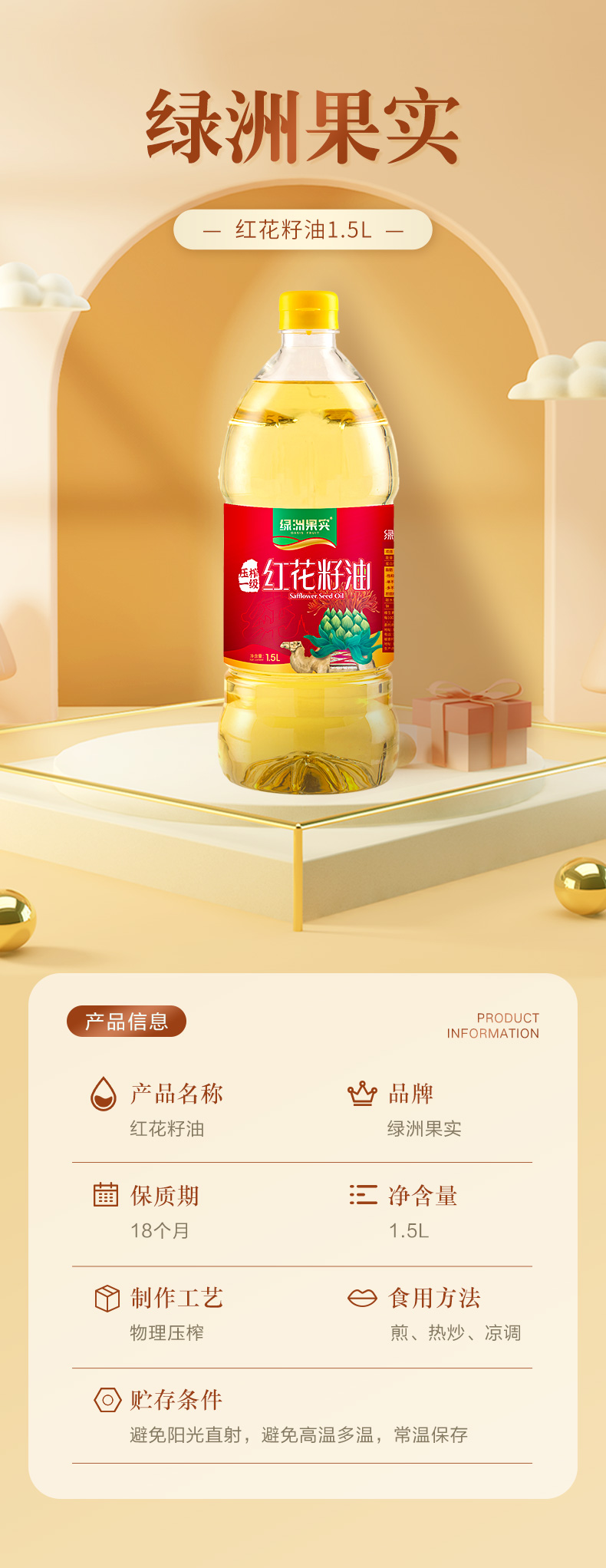 绿洲果实红花籽油1.5L