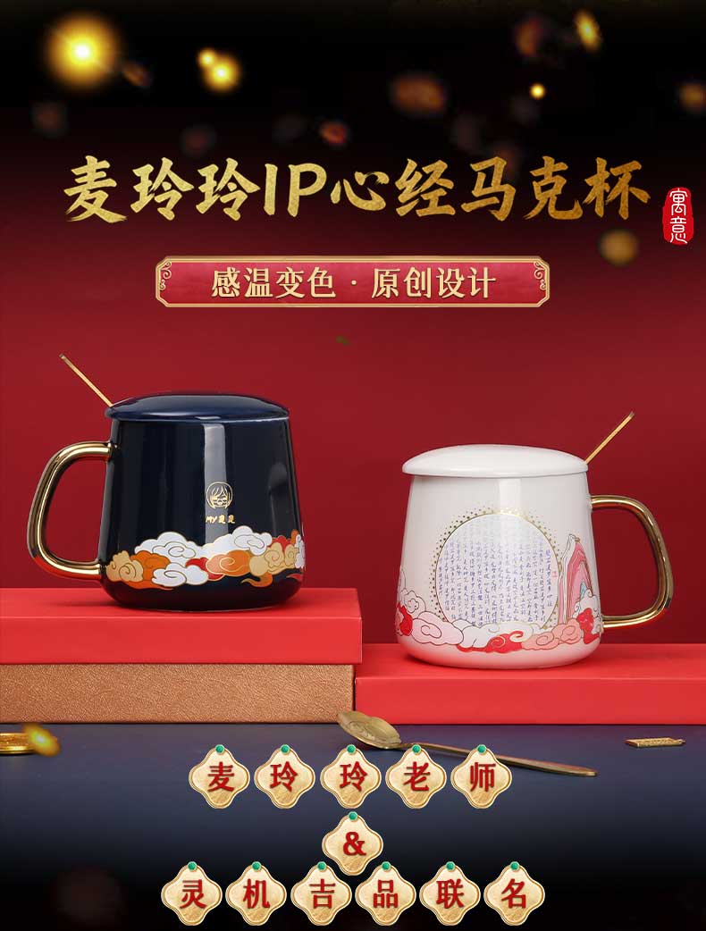 灵机麦玲玲心经杯马克杯套装 咖啡杯陶瓷 创意变色杯子上班办公杯