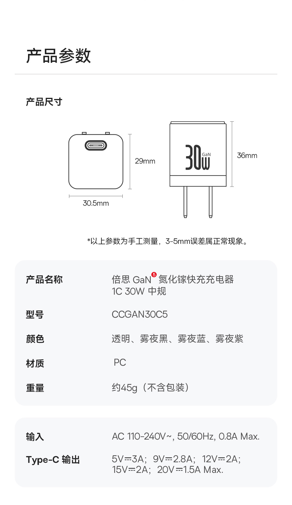 倍思 GaN5 氮化镓快充充电器 1C 30W(折叠款)