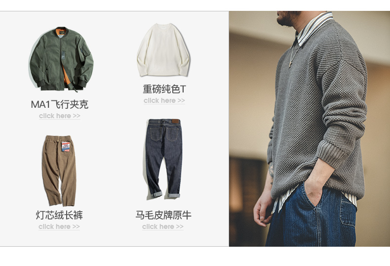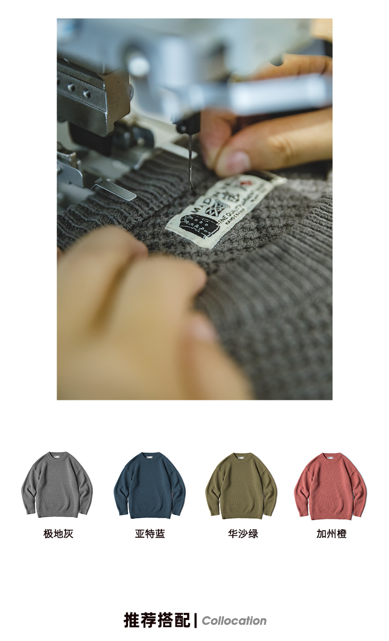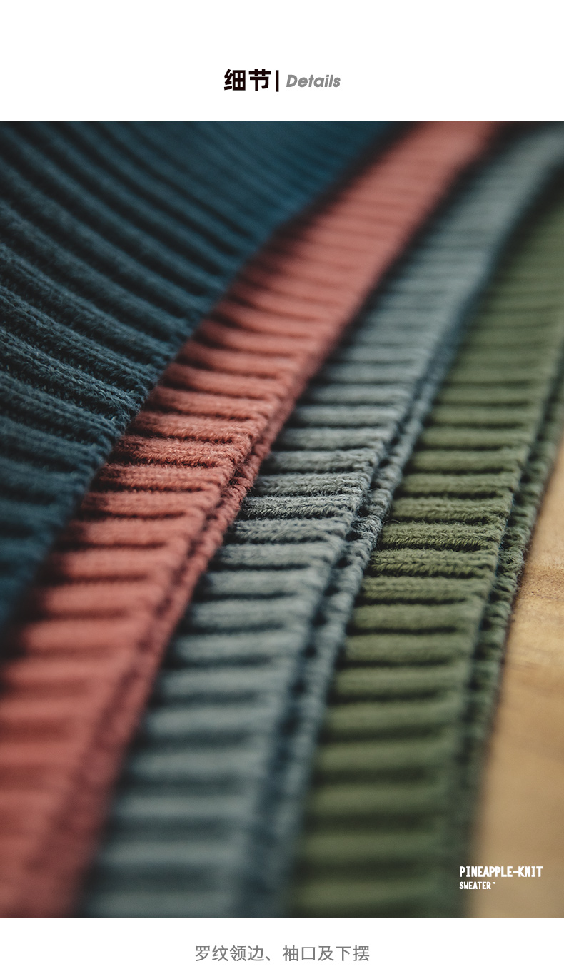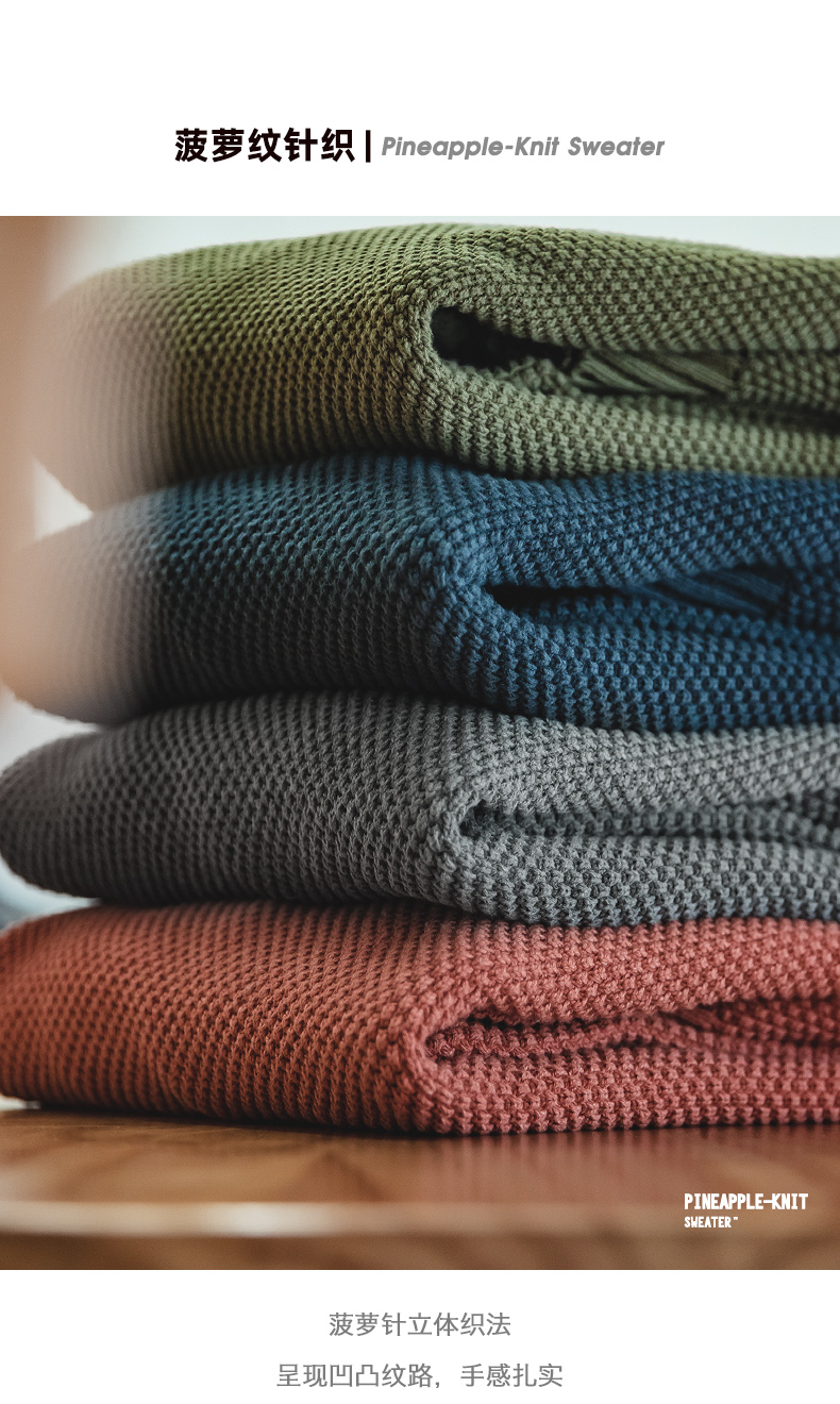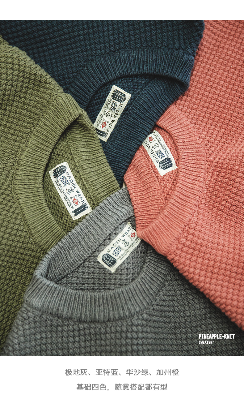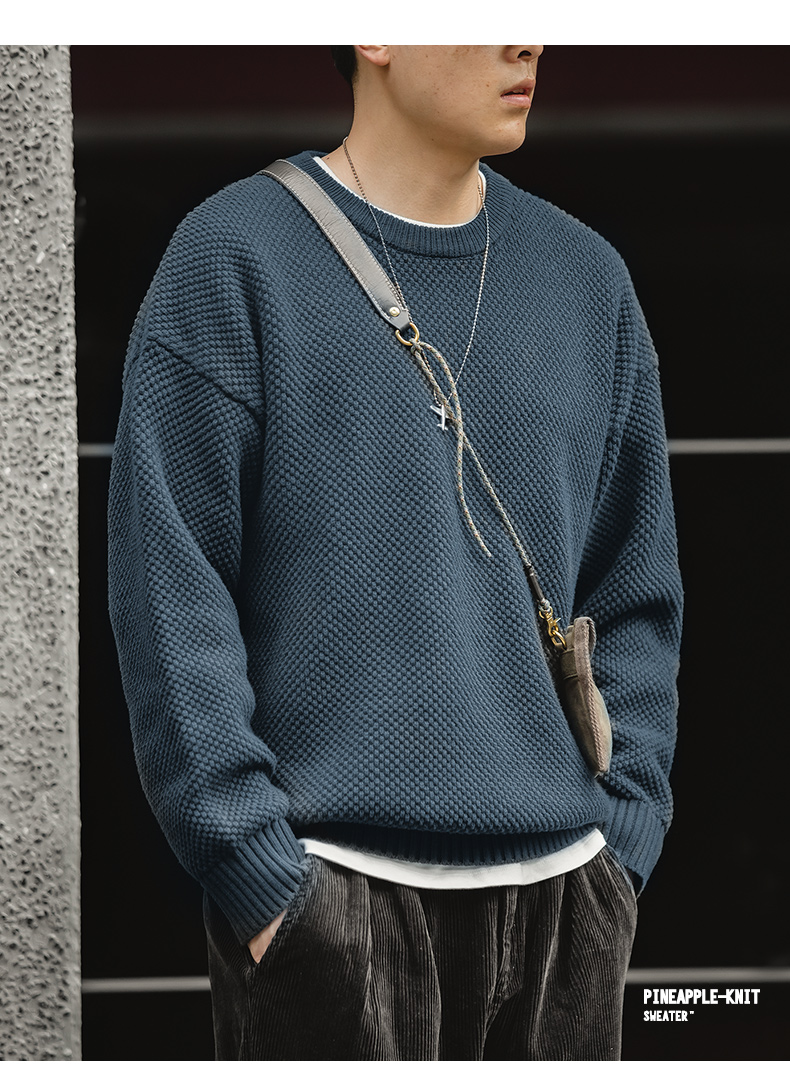 工装优选 美式复古重磅菠萝纹毛衣加厚圆领内搭慵懒针织衫男衣春季