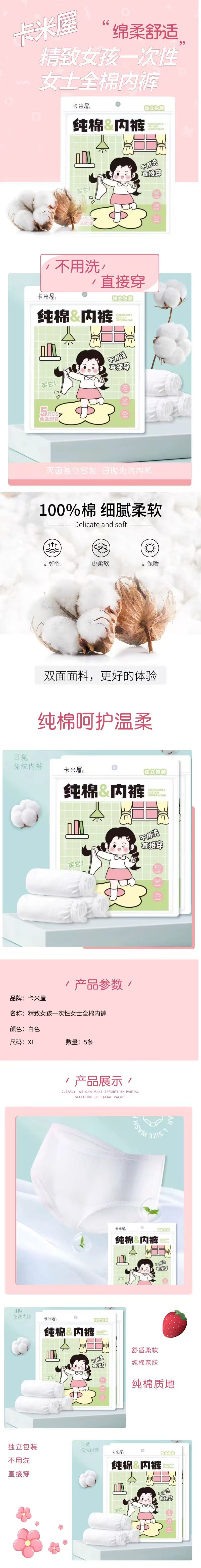 卡米屋精致女孩一次性女士全棉内裤XL码(5条装/独立包装)【21003456】
