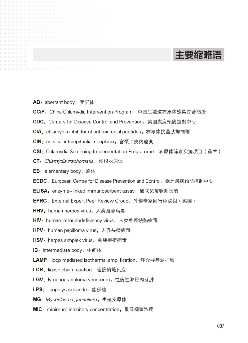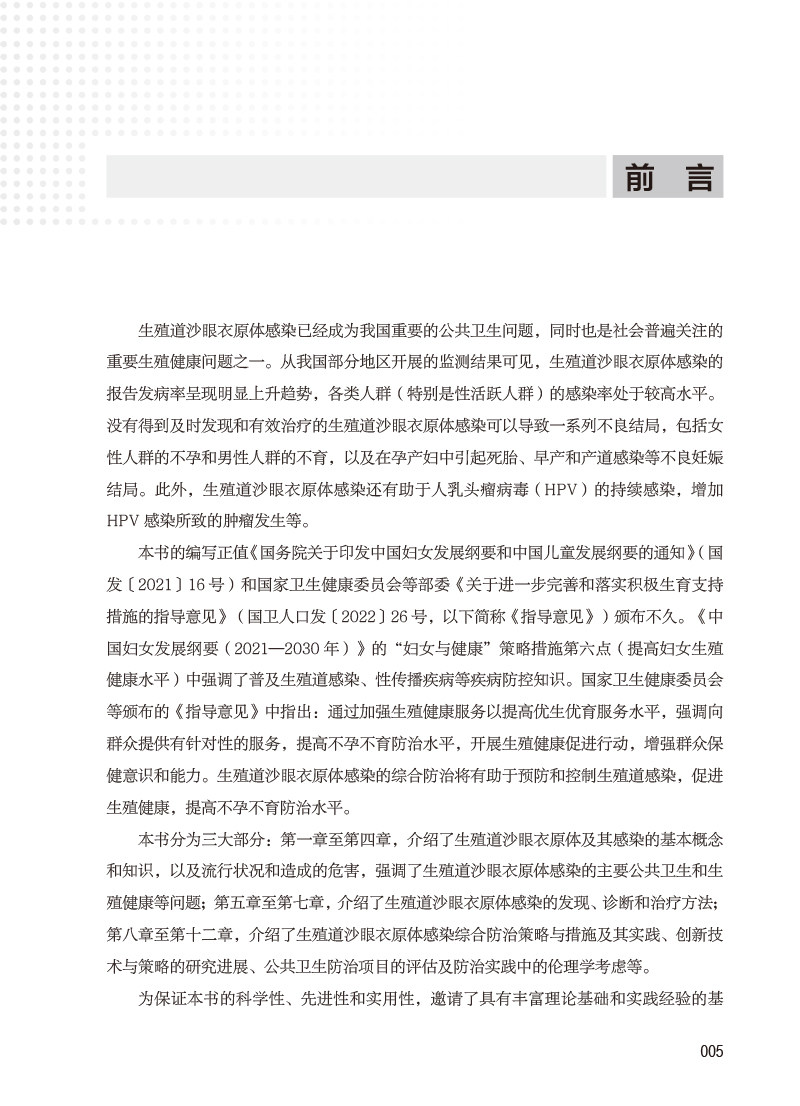 本书分为六大部分,共十一章,内容包括:沙眼衣原体基础理论、沙眼衣原体性传播及其导致的生殖泌尿道和泌尿道外的感染(直肠及口咽感染)、生殖道衣原体感染的流行状况及危险因素、沙眼衣原体感染及其导致的并发症和不良结局的临床表现、沙眼衣原体感染及其并发症(盆腔炎、附睾炎、前列腺炎等)的临床处理(诊断与治疗)、沙眼衣原体感染综合防治及其效果评估等,对从事生殖道衣原体基础及应用性研究、临床诊疗服务和疾病防控人员具有指导性和可操作性。