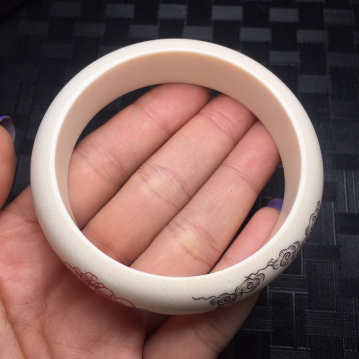 【48133】猛犸象牙蝶恋花手镯,天然西伯利亚冰料,独特彩绘微雕工艺,品相完美,纹路清晰漂亮,上手非常显气质。尺寸56-14.7-7mm克重28.7g结缘价1600