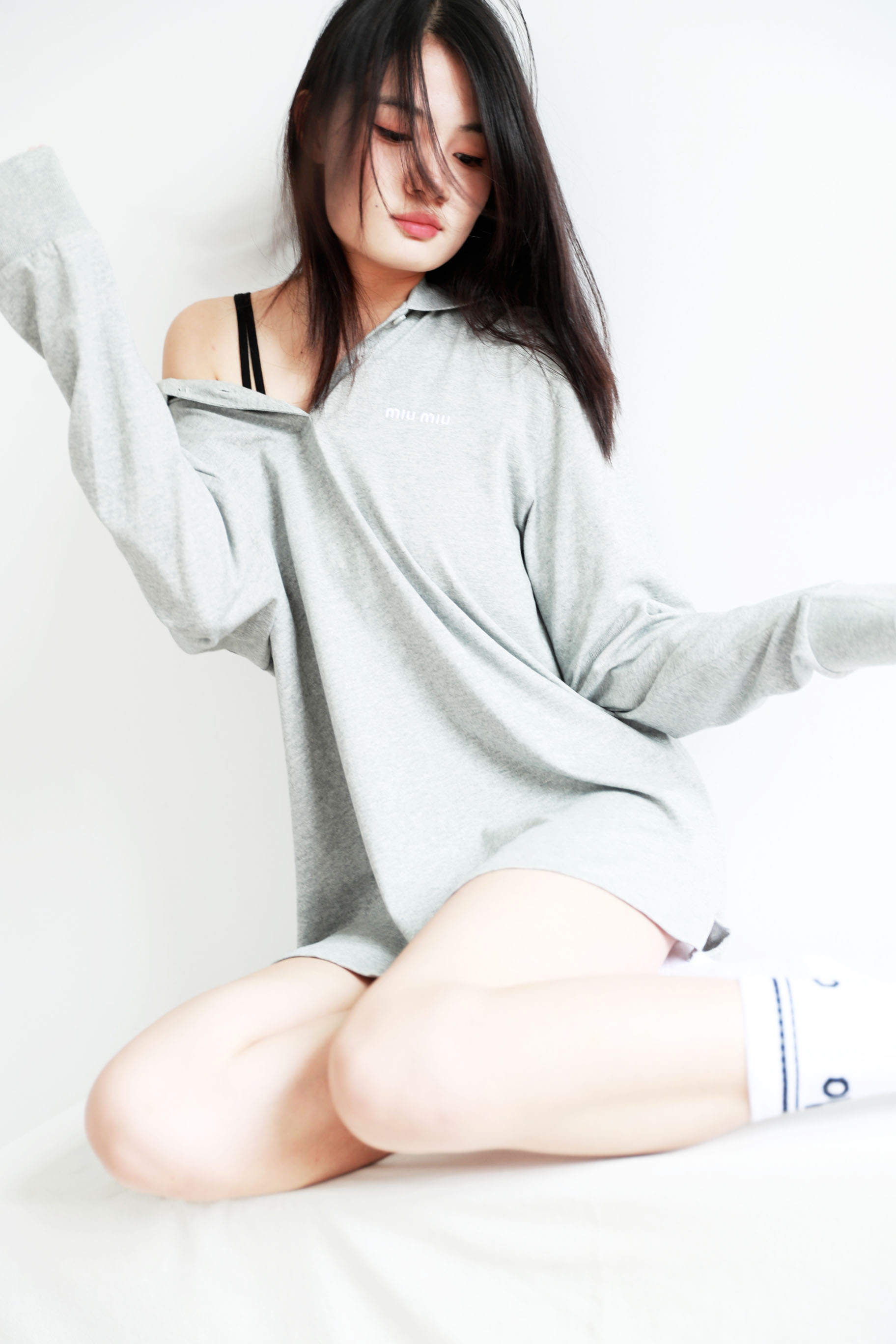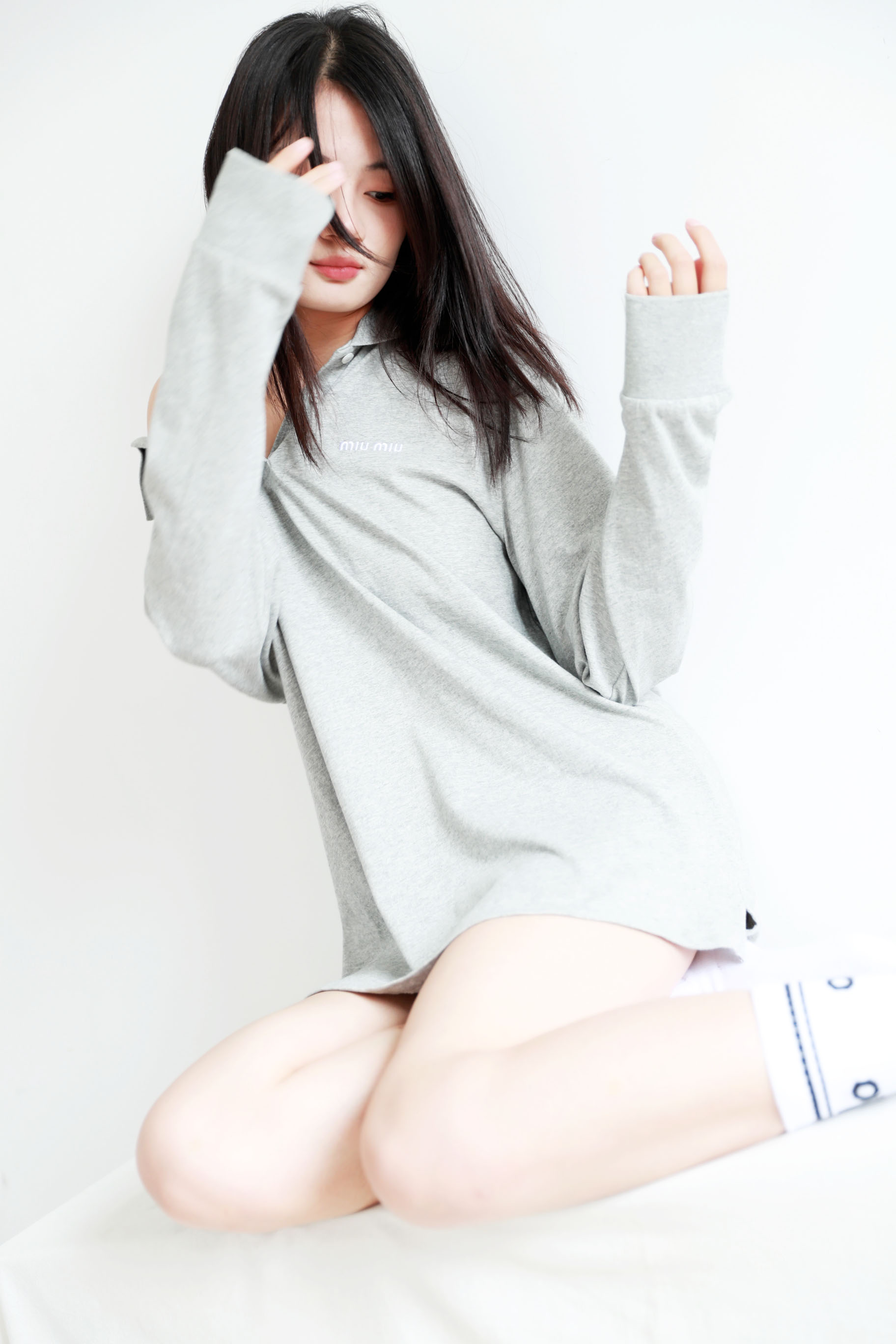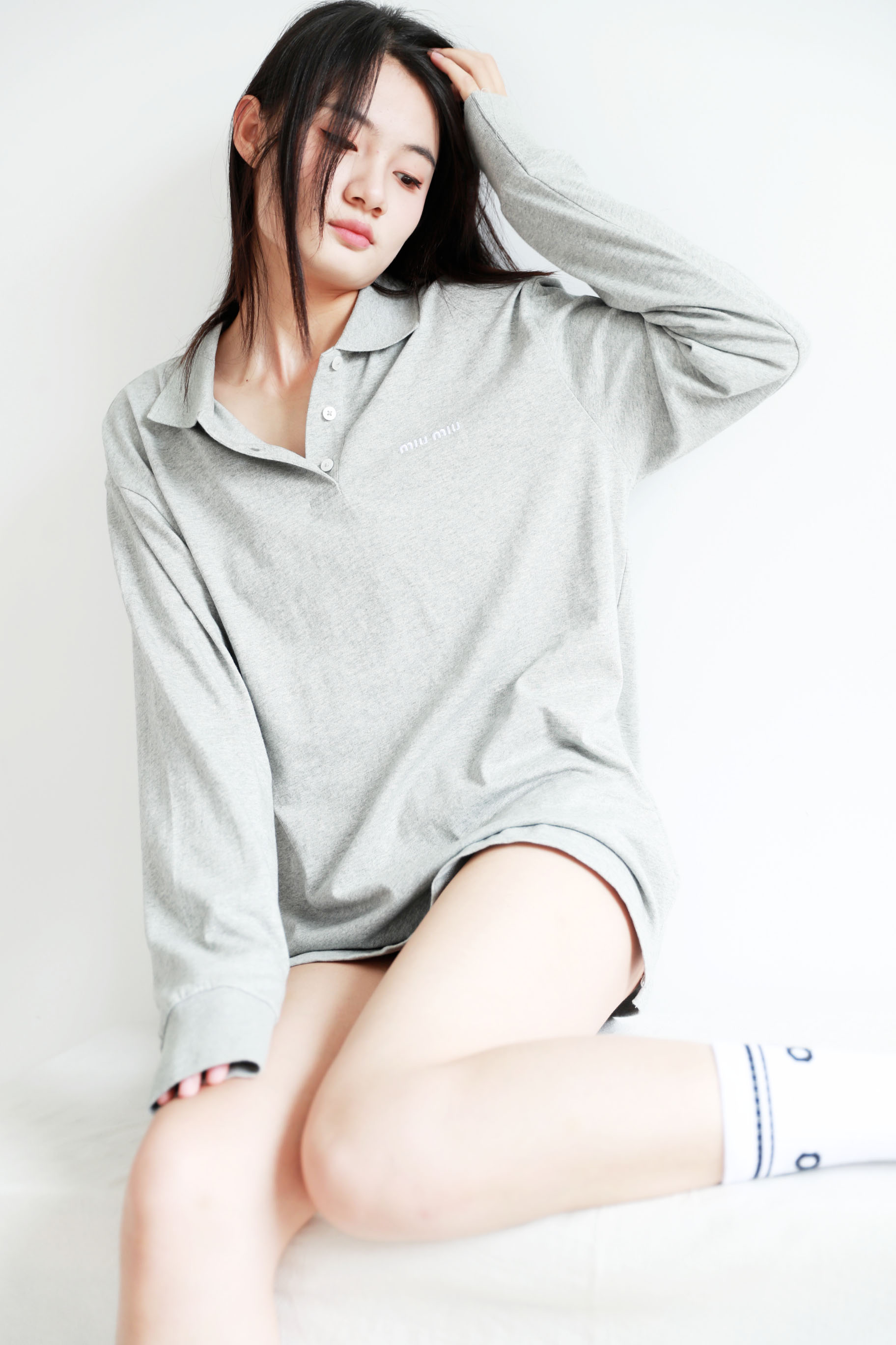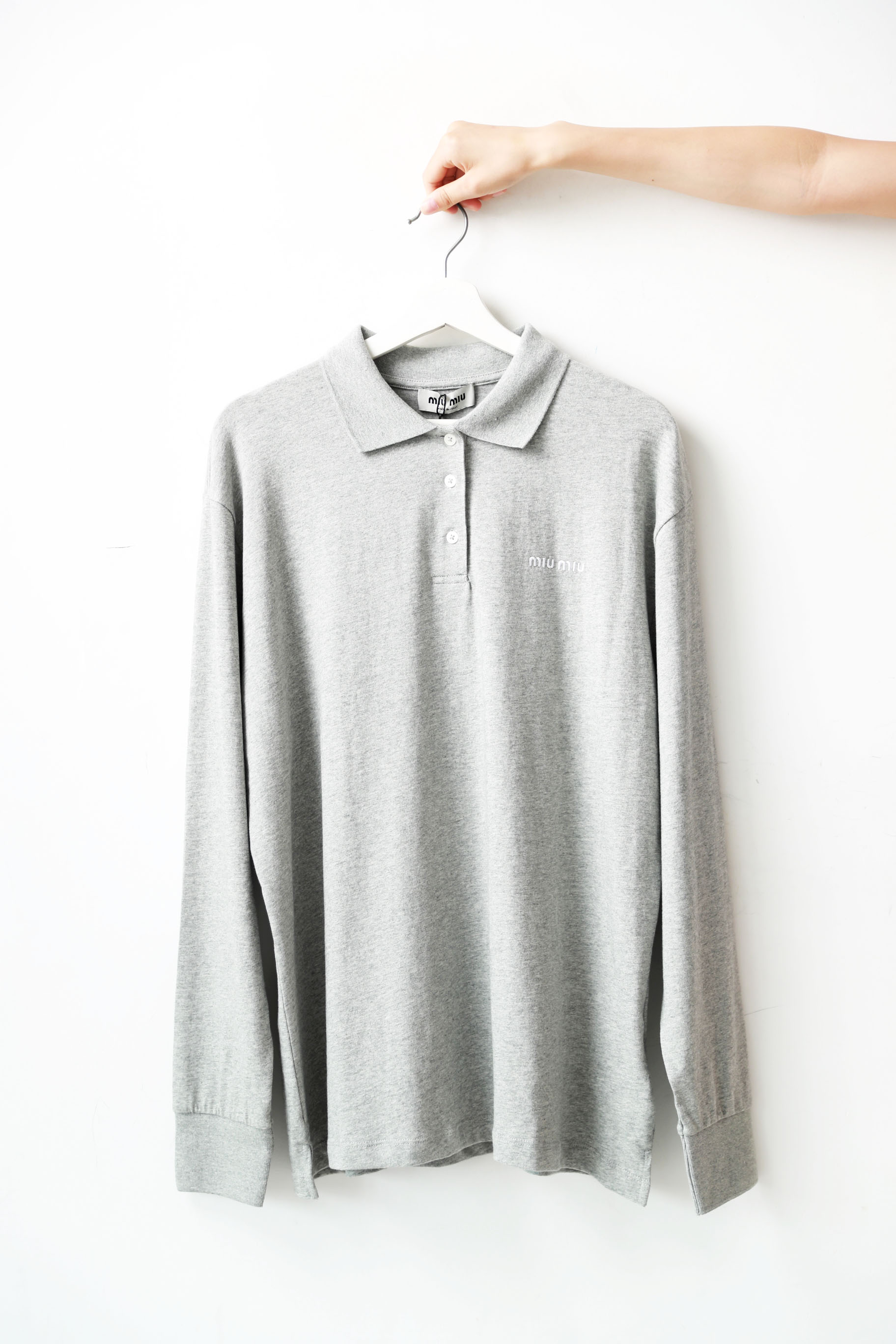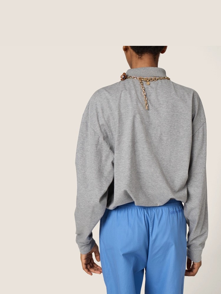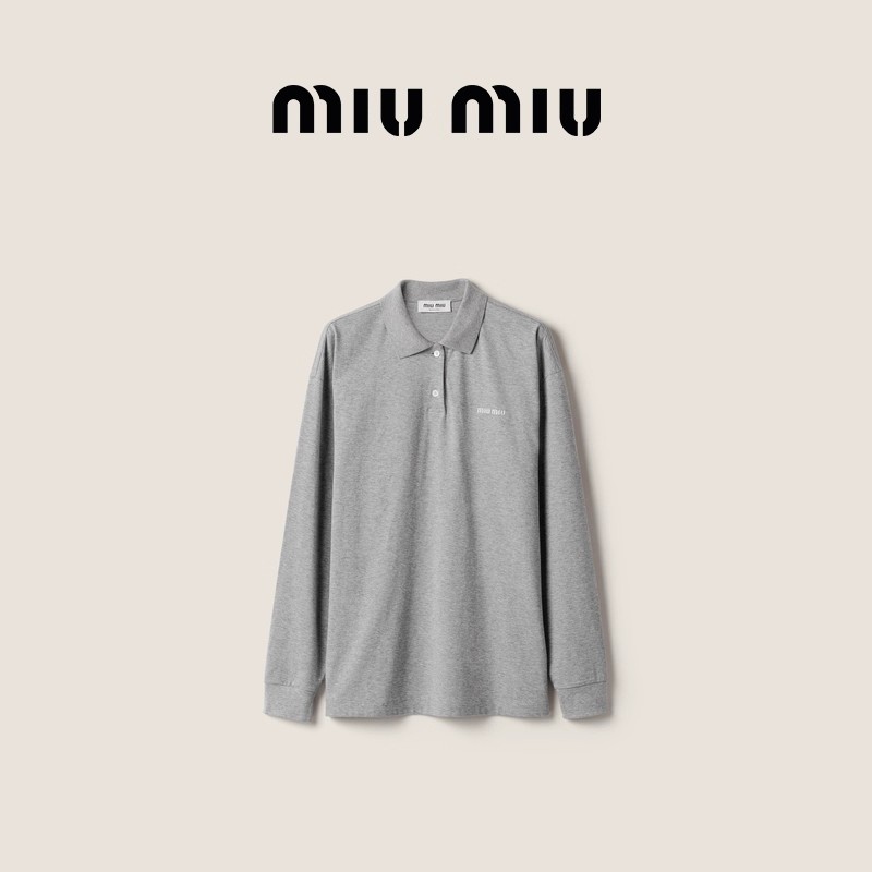 美式学院polo衫,小标刺绣设计。元祖灰翻领长袖宽松上衣C081268