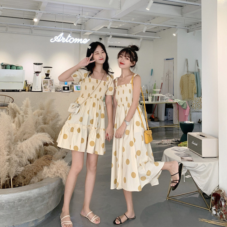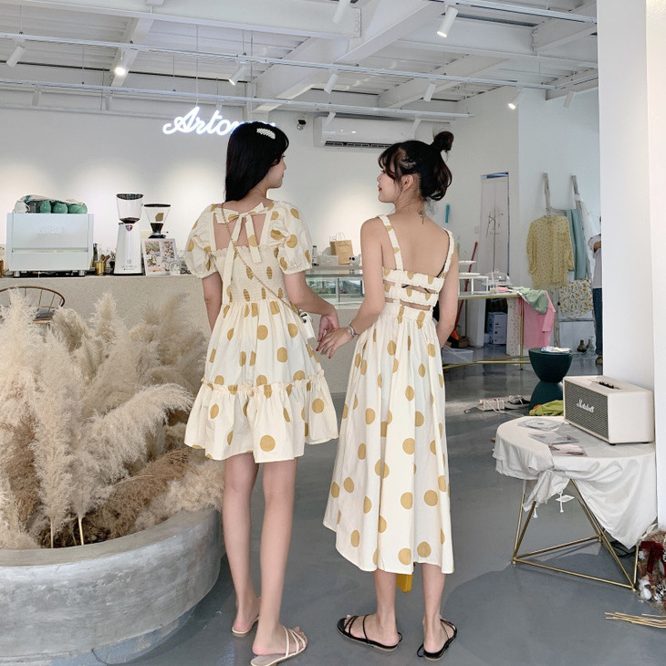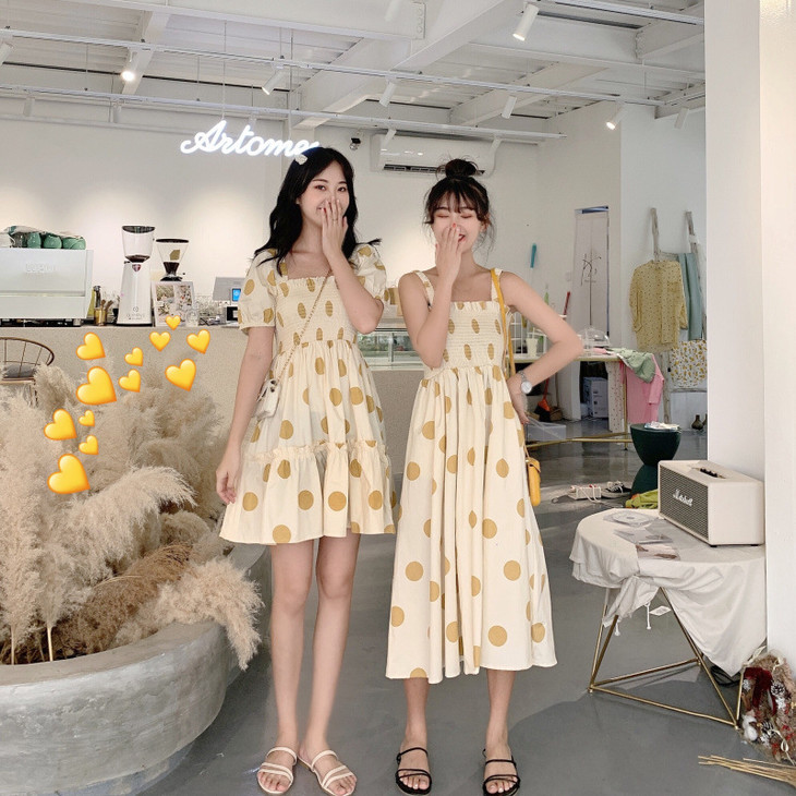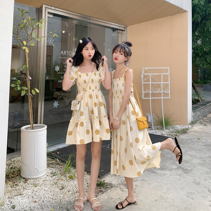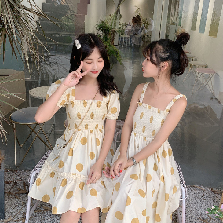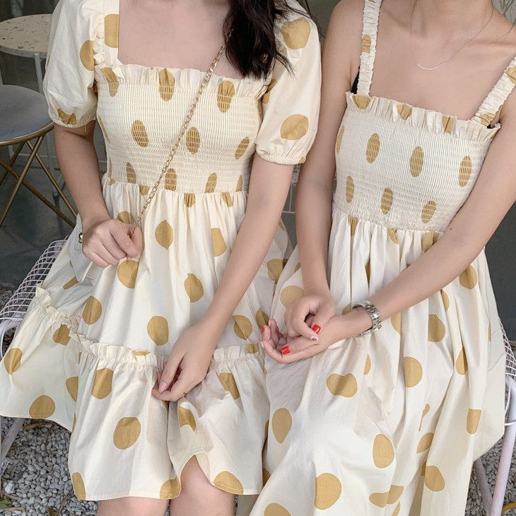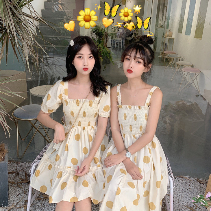 法式初恋超仙女森系波点闺蜜装连衣裙女夏显瘦木耳边长裙