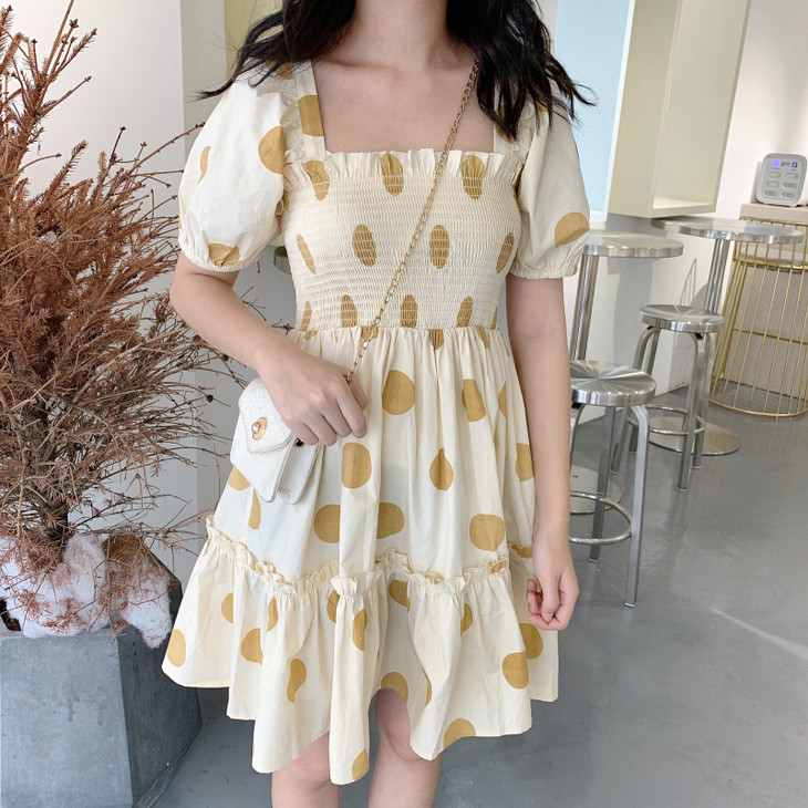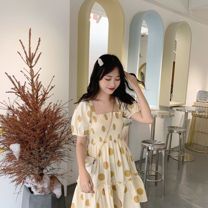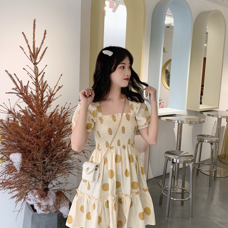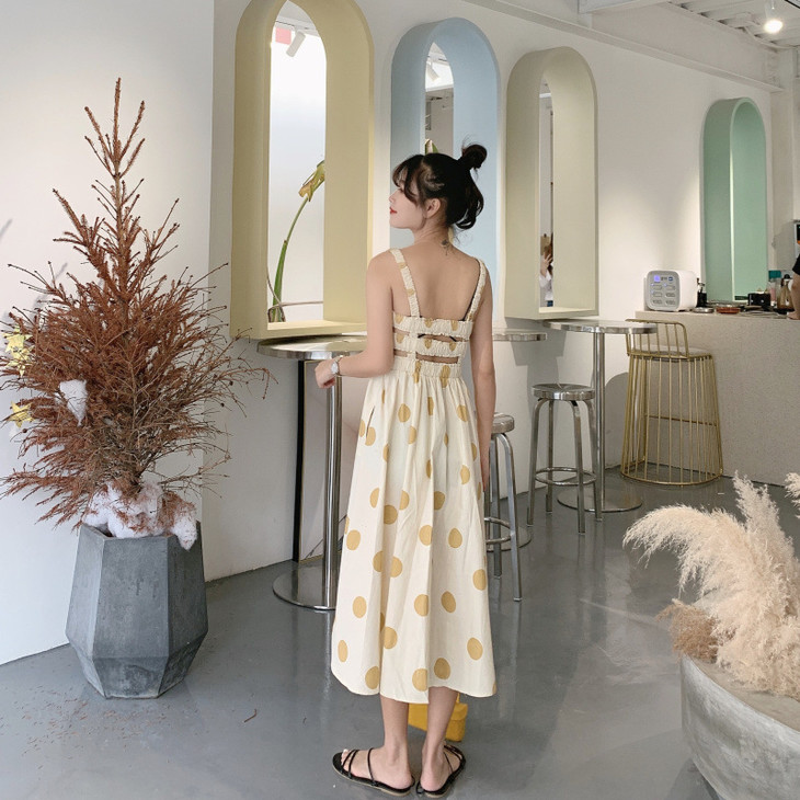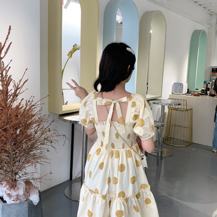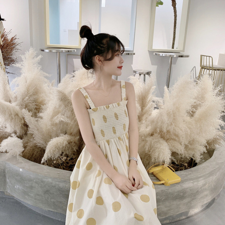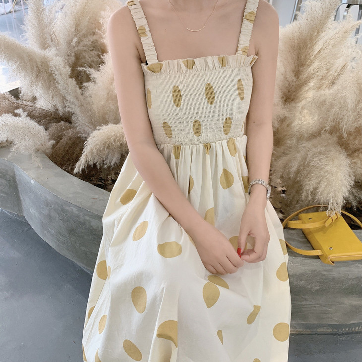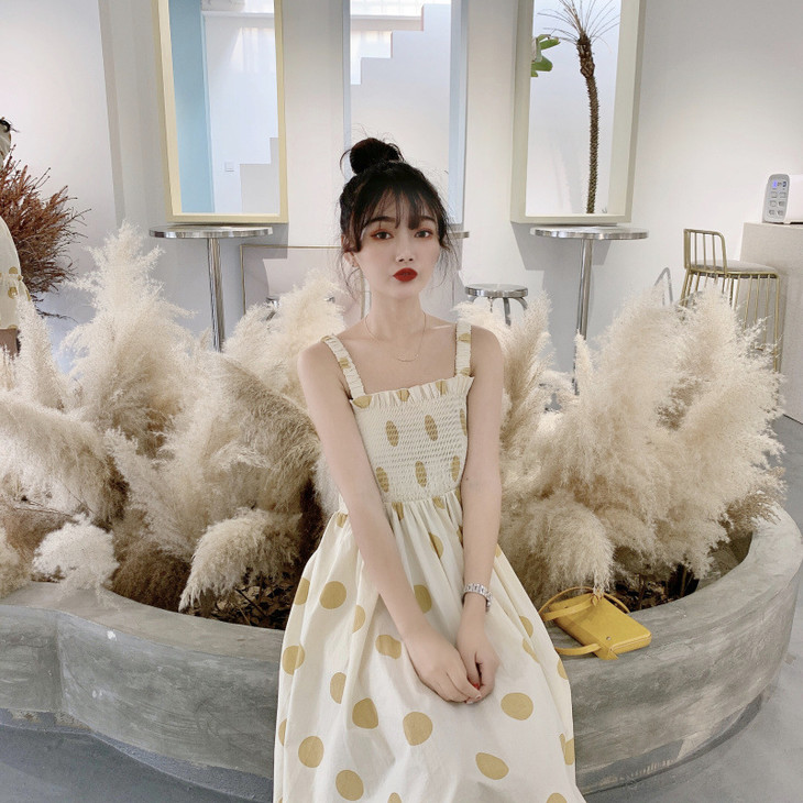 法式初恋超仙女森系波点闺蜜装连衣裙女夏显瘦木耳边长裙