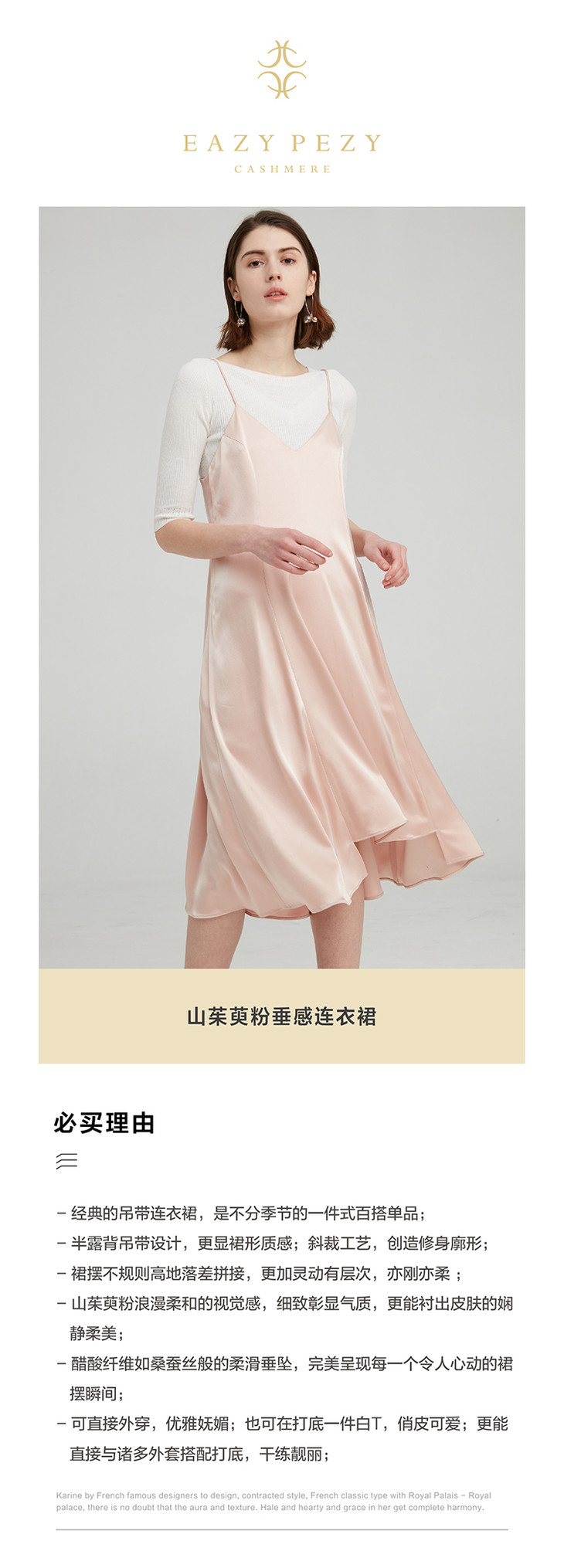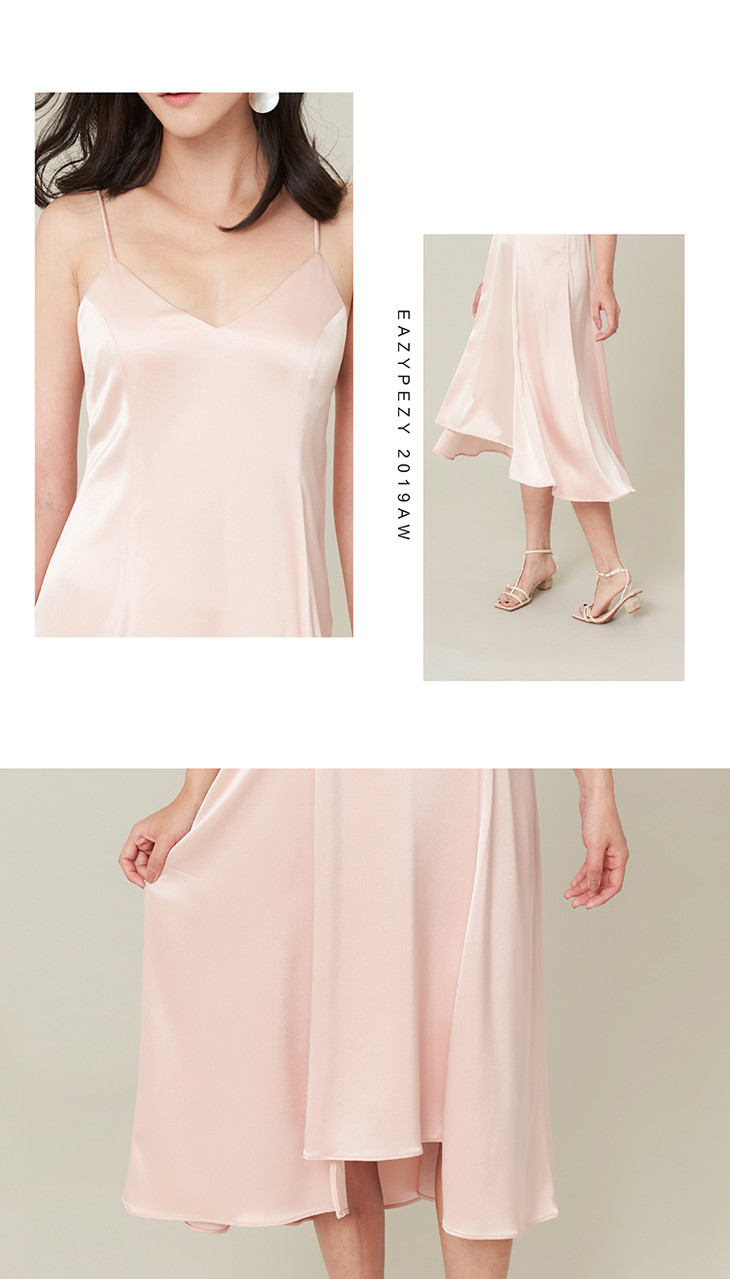 EAZYPEZY三醋酸山茱萸粉垂感吊带连衣裙
