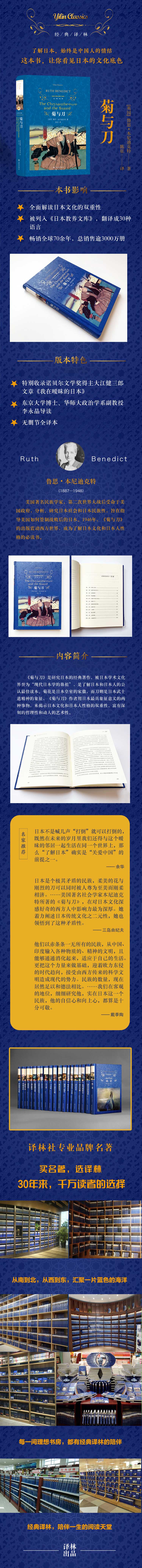 《菊与刀》是研究日本的经典性著作,被日本学术文化界誉为“现代日本学的鼻祖”,曾被翻译成英、法,中、日、西等20余国文字,总发行量超过1000万册,是了解日本和日本人的公认*读本。菊花是日本皇室的家徽,而刀则是日本武士精神的象征,《菊与刀》作者用日本*象征意义的两种事物,来揭示日本文化和日本人性格的双重性,富有深刻的哲理性和动人的艺术性。