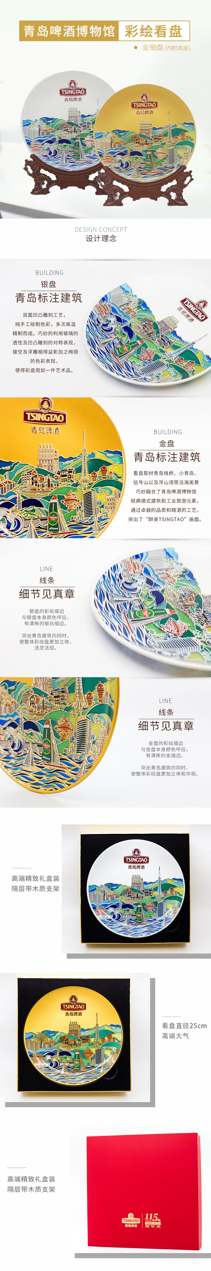 青岛啤酒博物馆 彩绘看盘 家居摆件 金色/银色可选 内附底座 青岛啤酒 官方文创