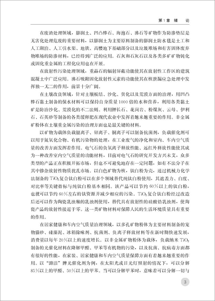 本书可供地质勘察、非金属矿采选与加工、矿物材料、环境工程及健康工程领域的研究人员、学生、企业家参考,也可为环境工程行业人员选择合适的环境治理材料提供支持,还可为室内、车内空气净化领域的技术人员和消费者提供选材参考。由于时间仓促,作者水平有限,市场调查工作繁重而复杂,书中疏漏和不足之处在所难免,恳请读者不吝指正。
