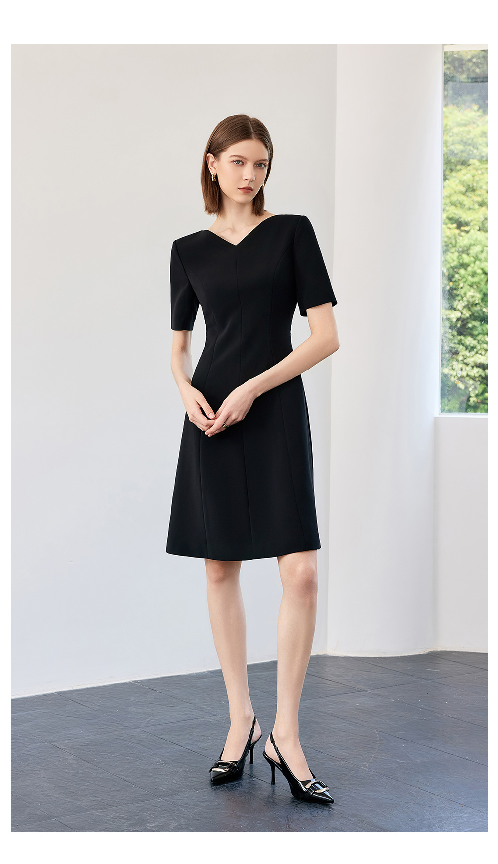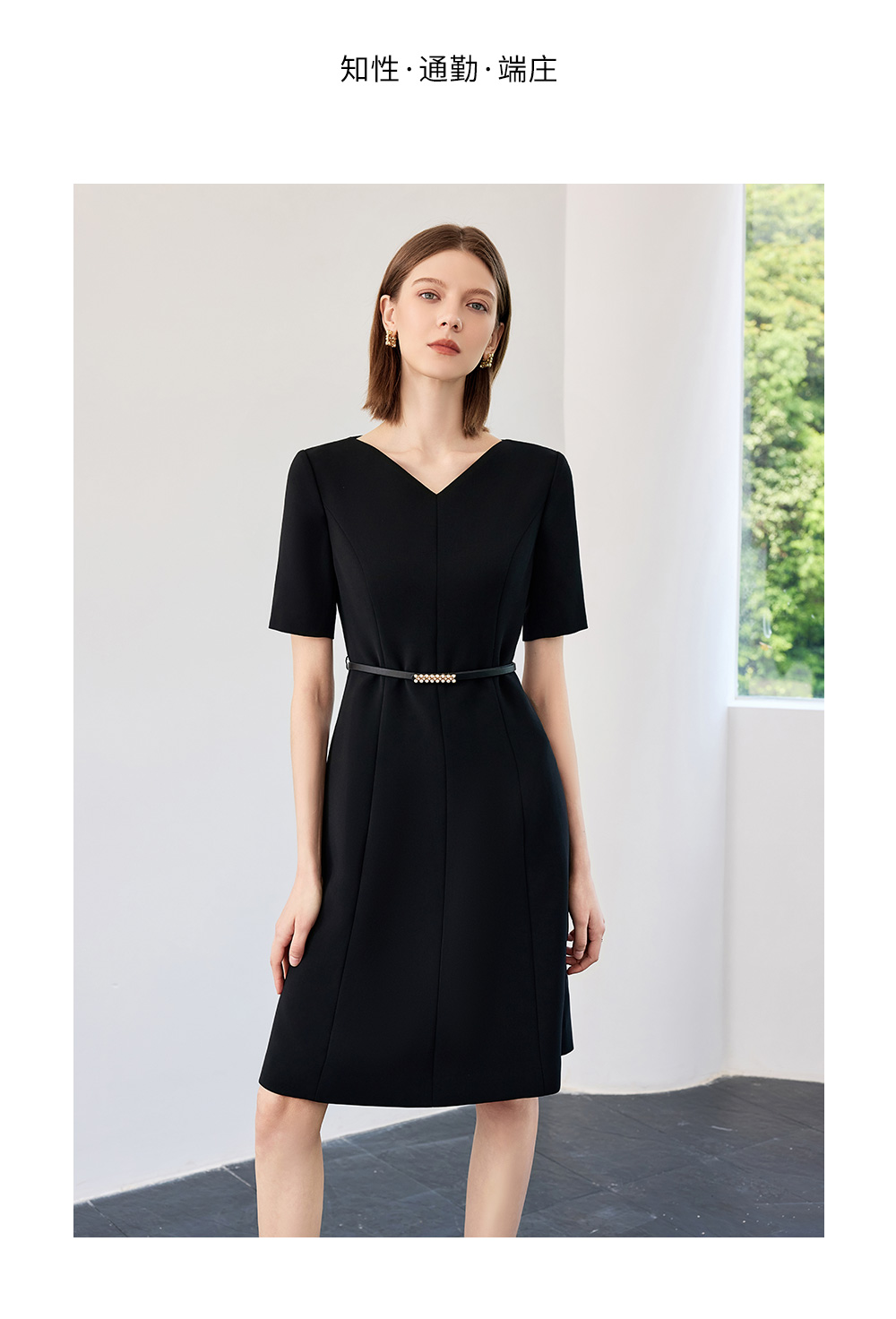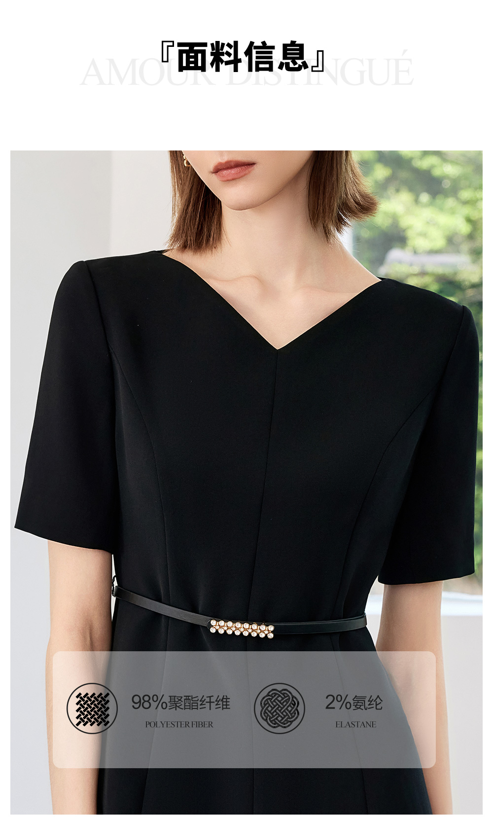 AD高端轻奢黑色连衣裙女2025新款夏季通勤气质收腰显瘦短袖裙子