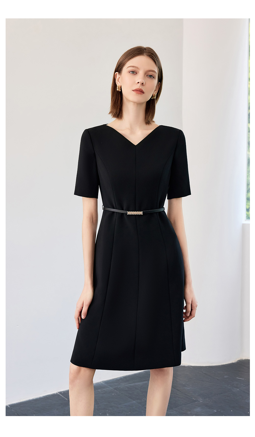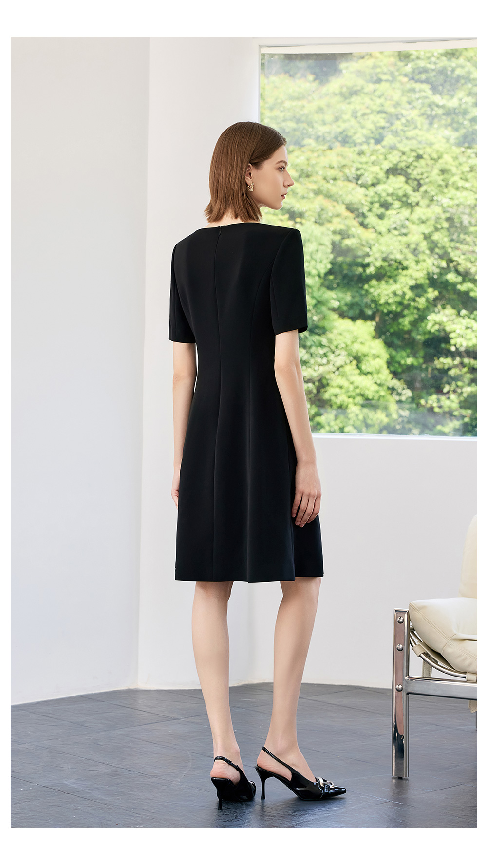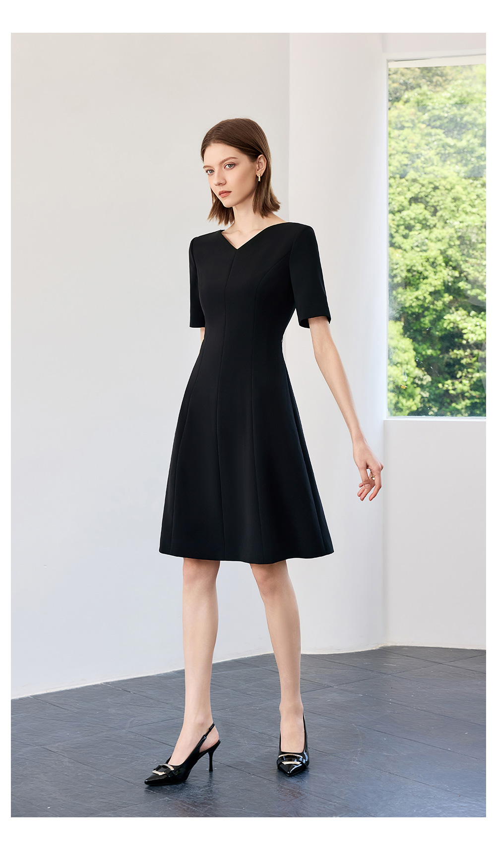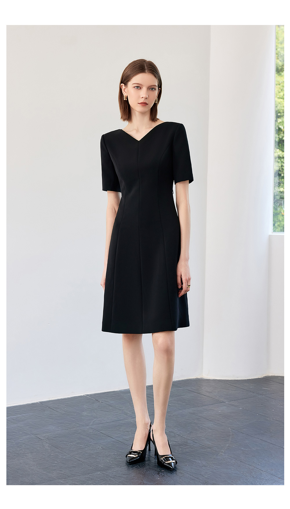 AD高端轻奢黑色连衣裙女2025新款夏季通勤气质收腰显瘦短袖裙子