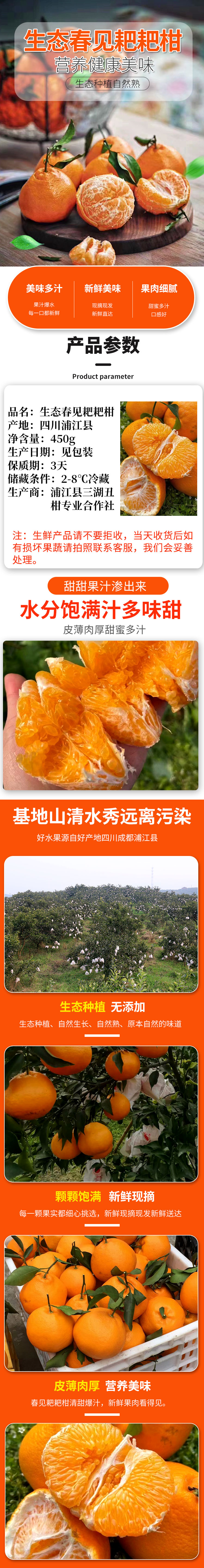 生态春见耙耙柑450g 耙耙柑皮薄肉厚多汁 京津冀满百包邮