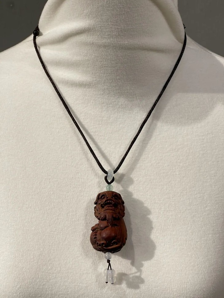 黄花梨木雕绣球瑞狮吊坠