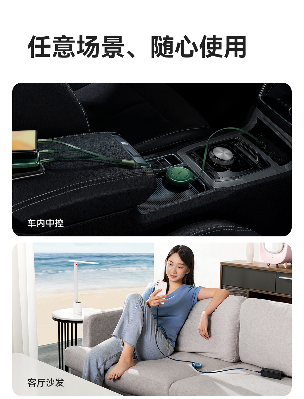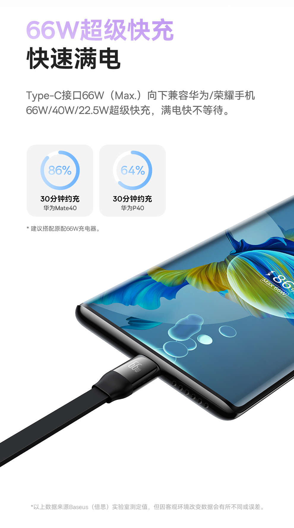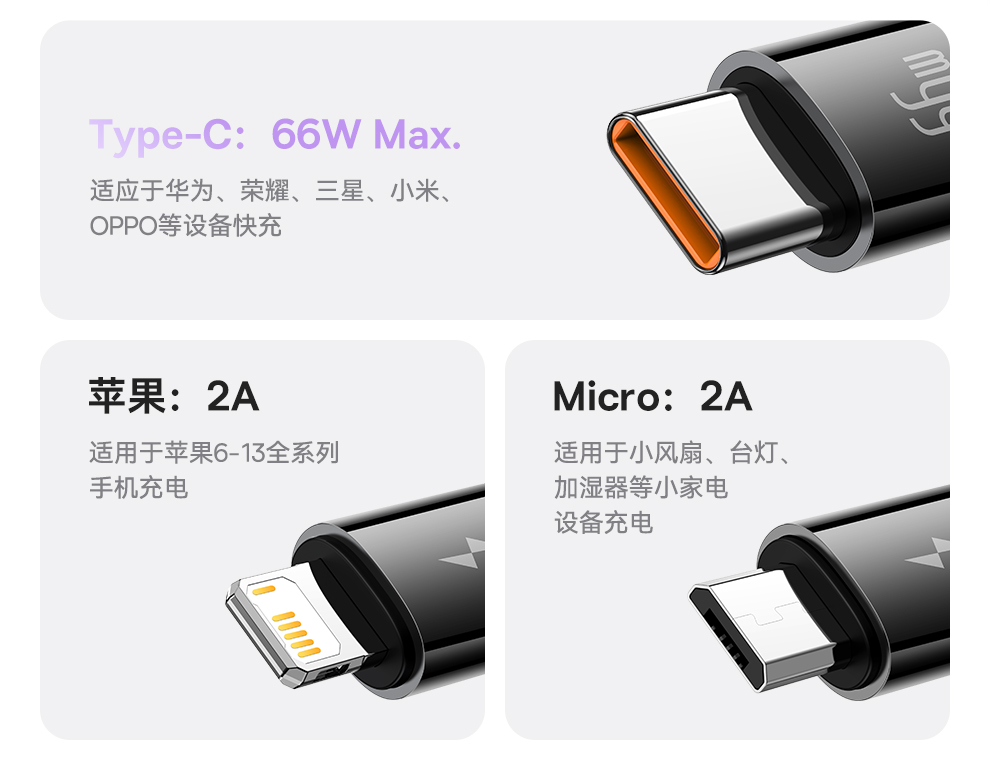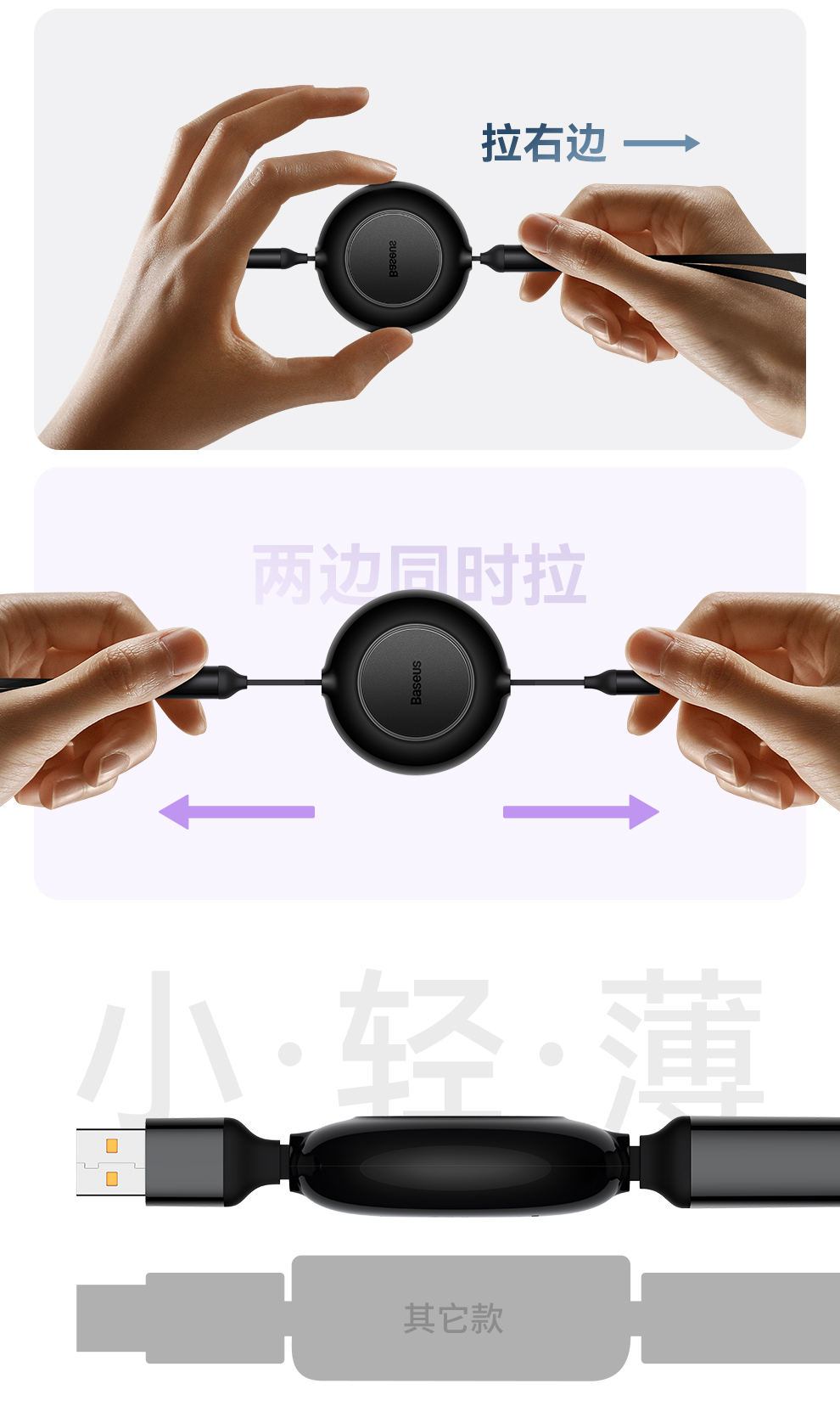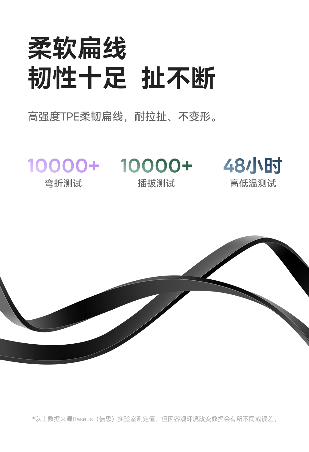 倍思 明镜系列2 随意拉伸一拖三快充数据线USB to M+L+C 66W 1.1m