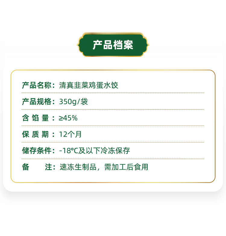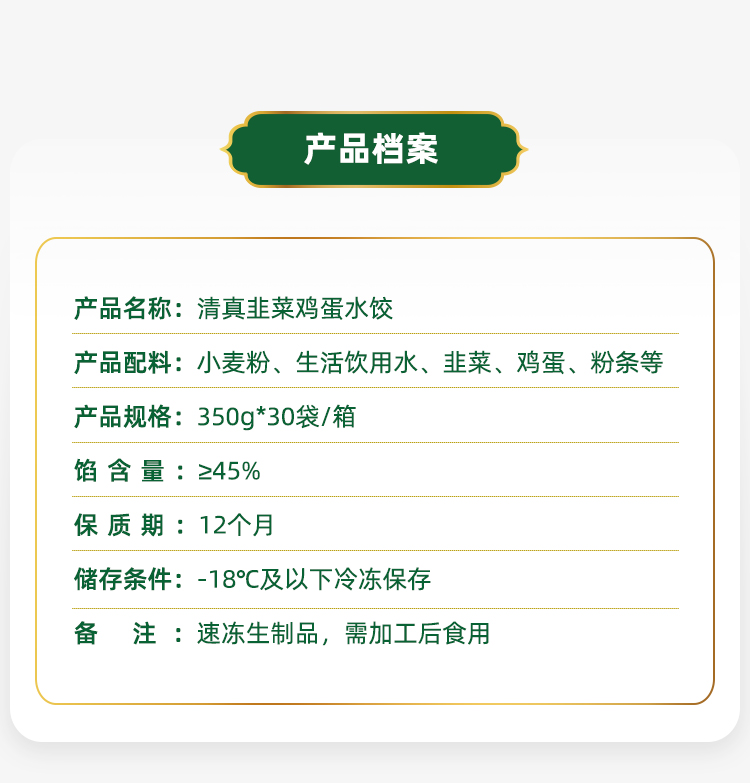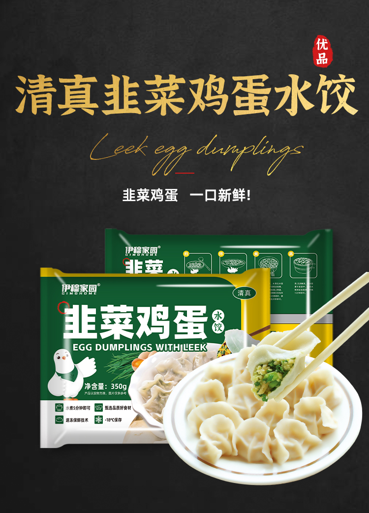 伊穆家园.清真新鲜韭菜鸡蛋水饺 (350g*30袋/箱)
