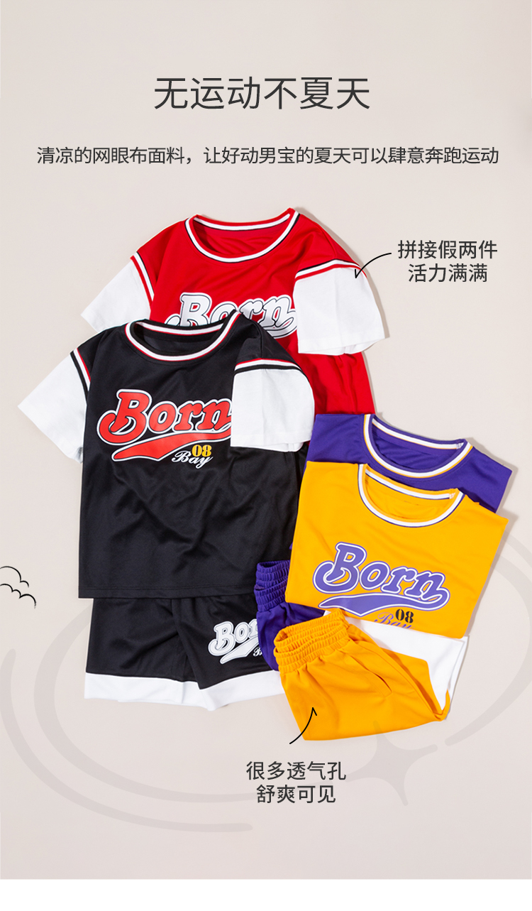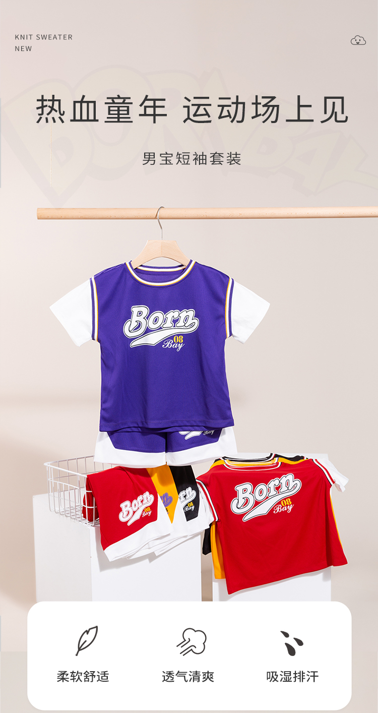 贝贝怡2022新品男童短袖套装时尚运动风儿童分体两件套男宝外出服