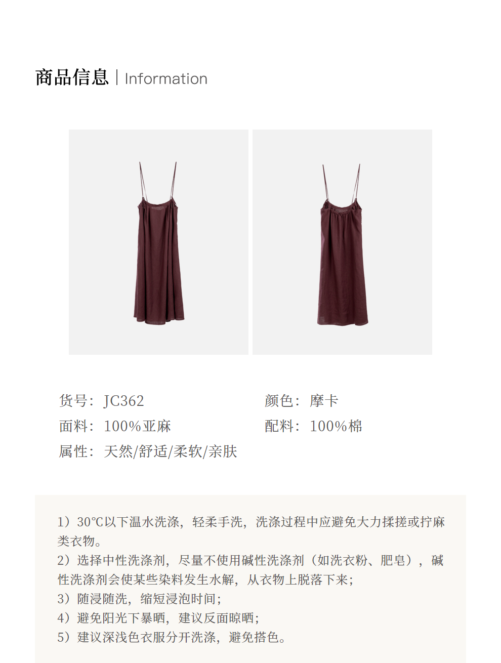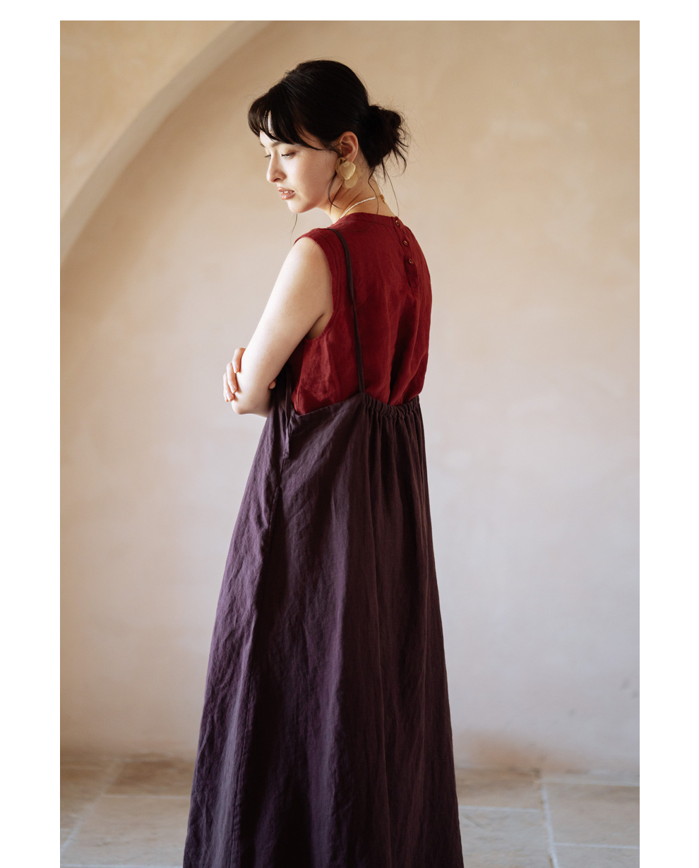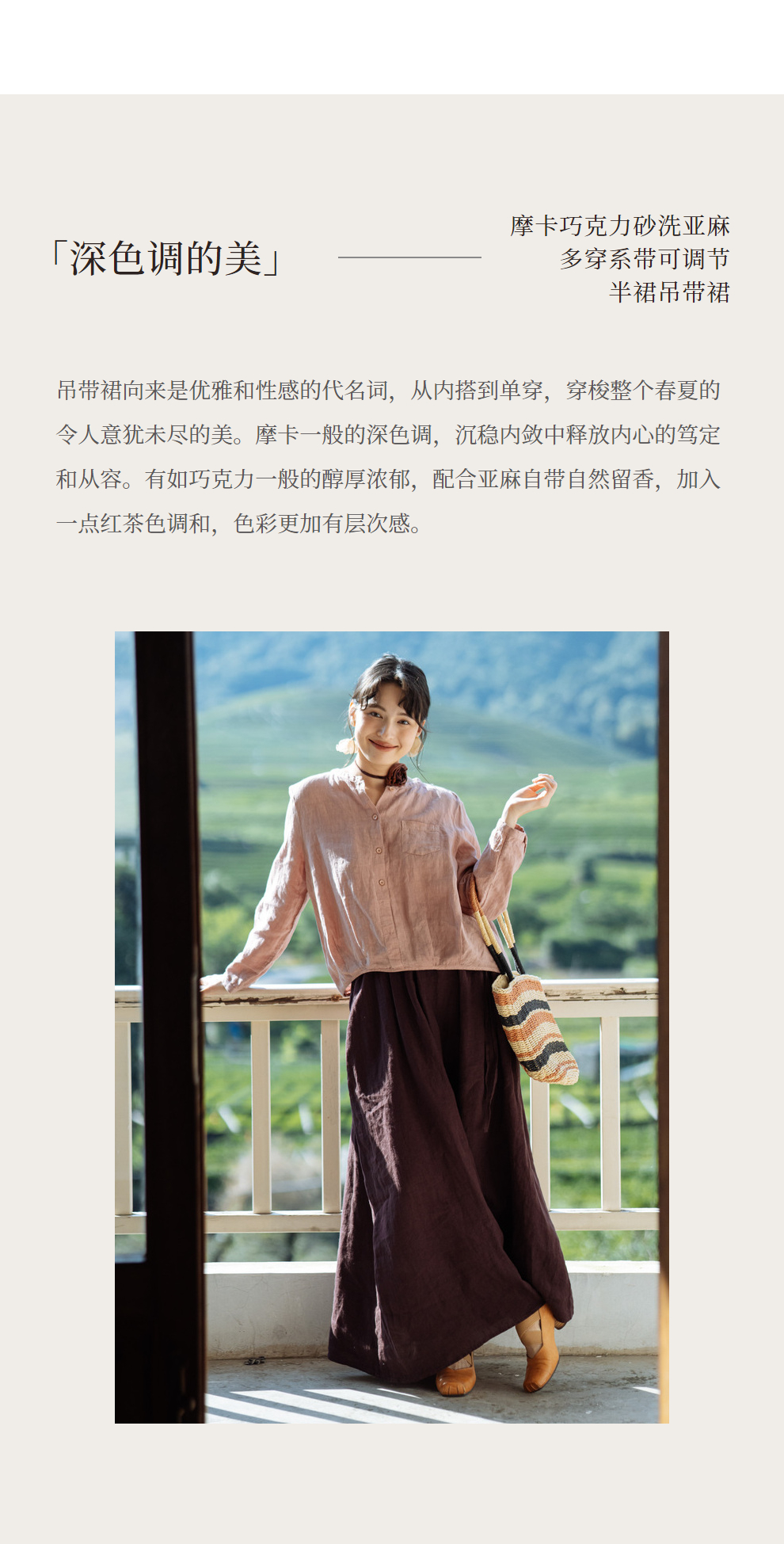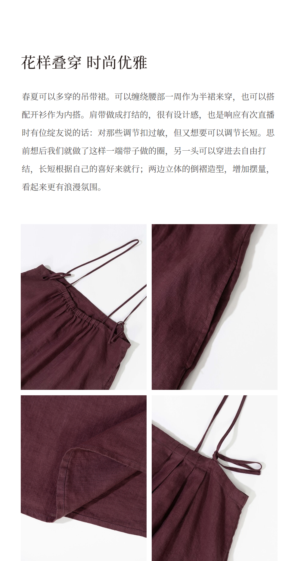 绽放旅行女装362朵/摩卡巧克力砂洗亚麻多穿系带可调节半裙吊带裙